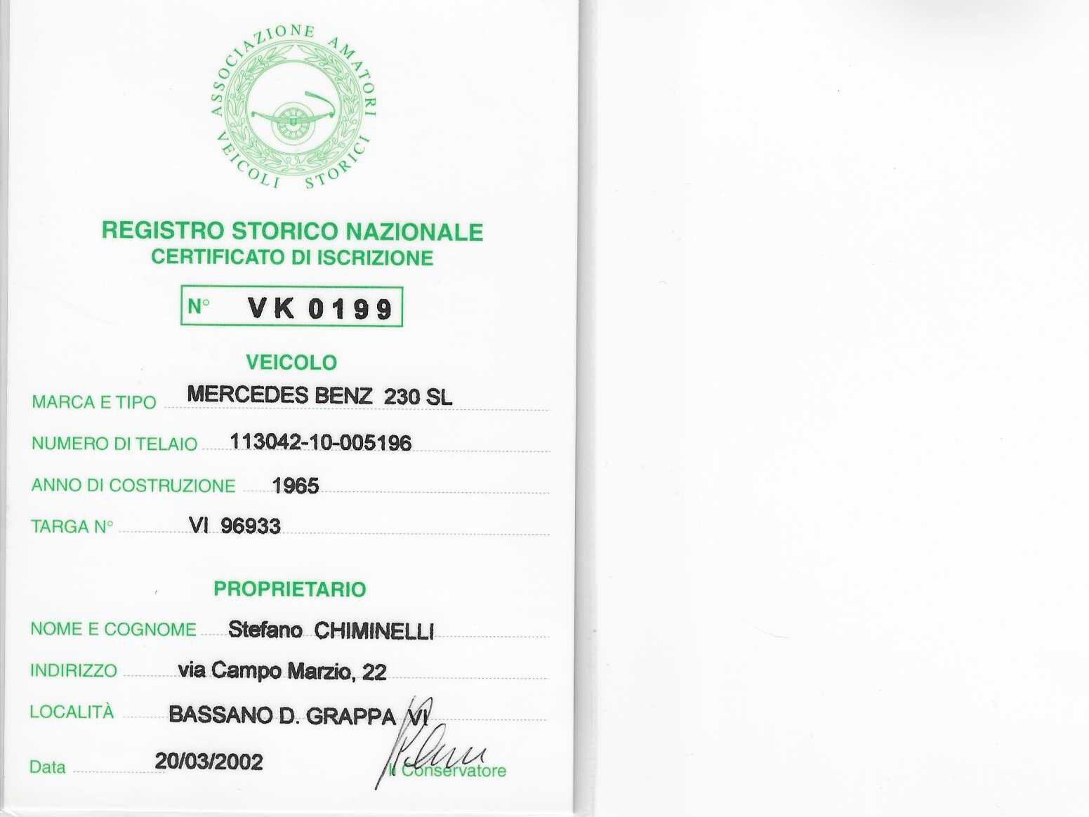 This exceptionally rare 1965 Mercedes-Benz 230 SL “Pagoda” is possibly the only known example worldwide to have spent its entire life in the same city, Bassano del Grappa (Italy), with just four documented owners since new.
