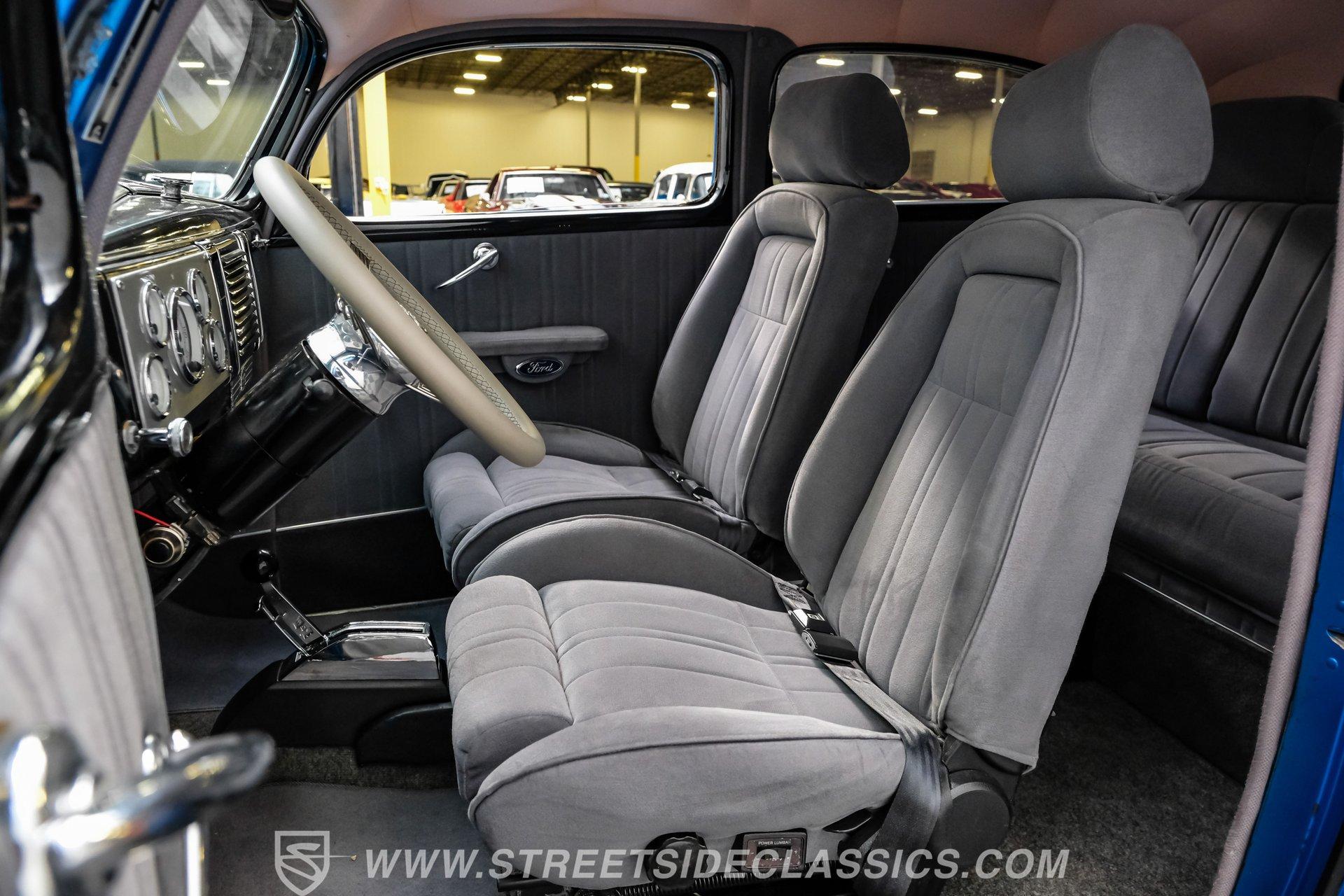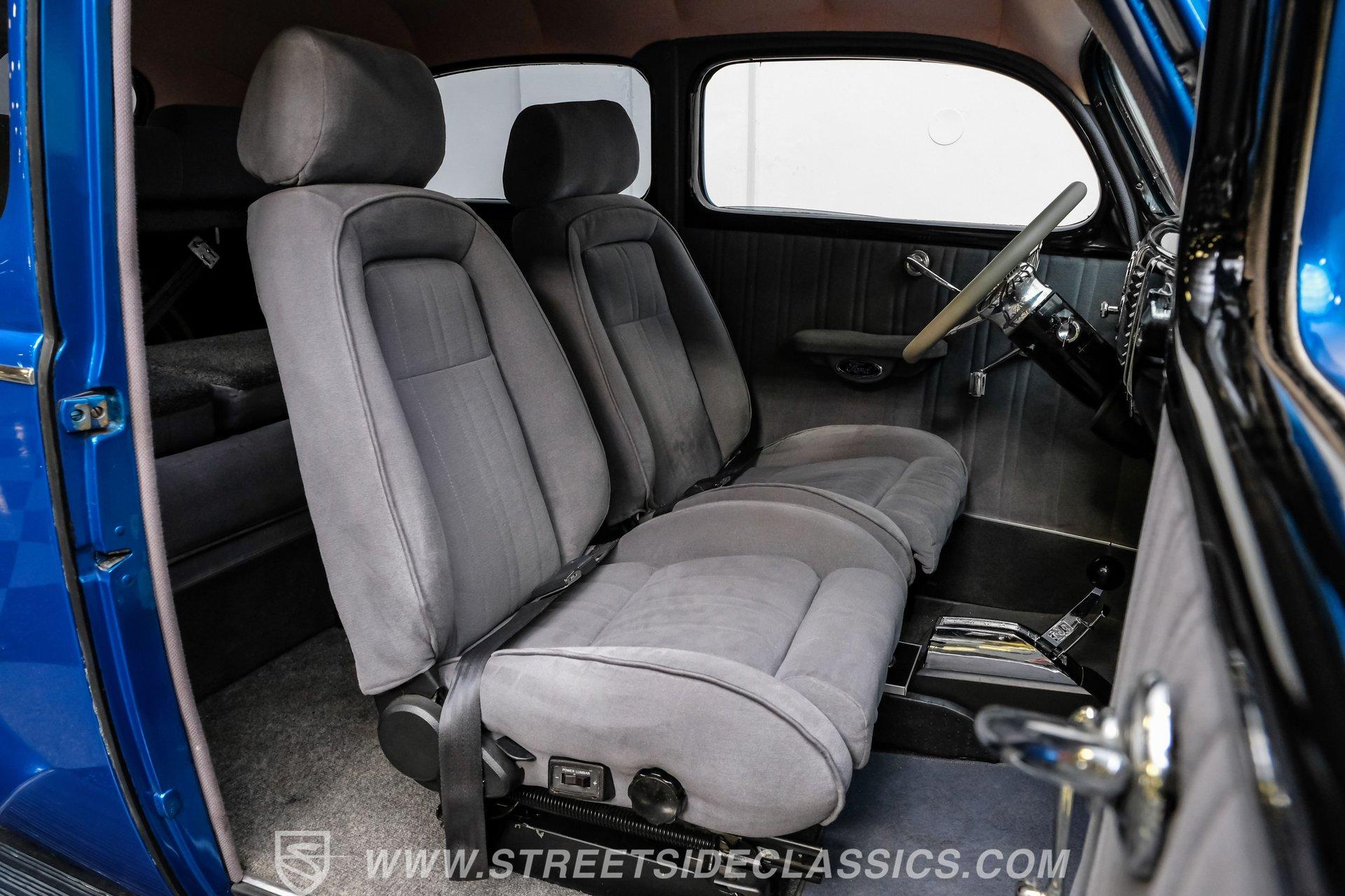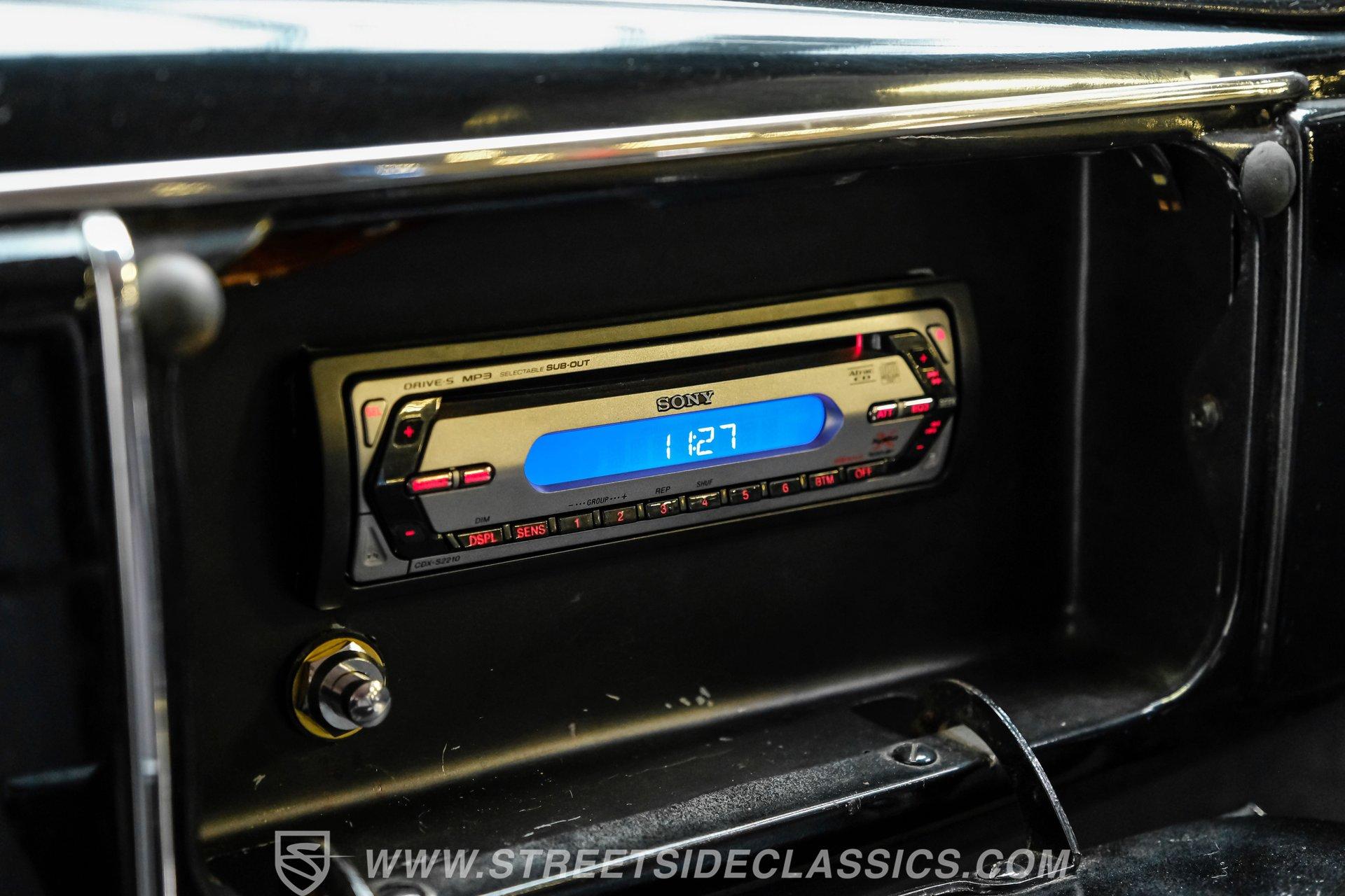 Step inside to discover a fully restored interior that perfectly blends comfort and style. Late-model gray cloth power seats offer supportive comfort for both driver and passengers, while matching rear bench and door panels create a cohesive look. Enjoy the convenience of a B&M floor shifter, VDO white-face gauges, and an underdash tach for a sporty touch. LED accent lighting, a Sony AM/FM/CD radio discreetly hidden in the glove box, and plush gray carpeting complete the inviting cabin, ensuring every ride is as enjoyable as it is memorable.