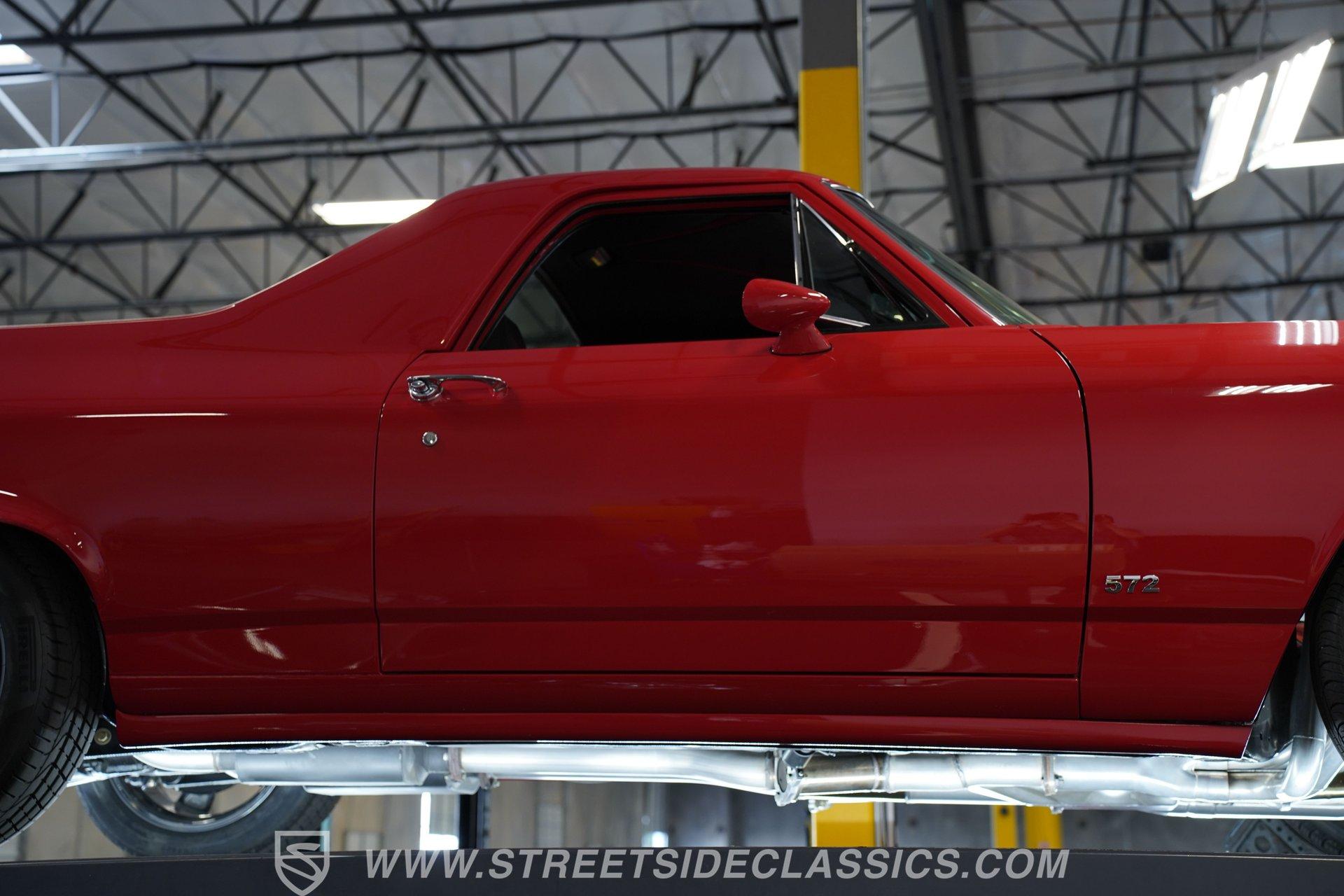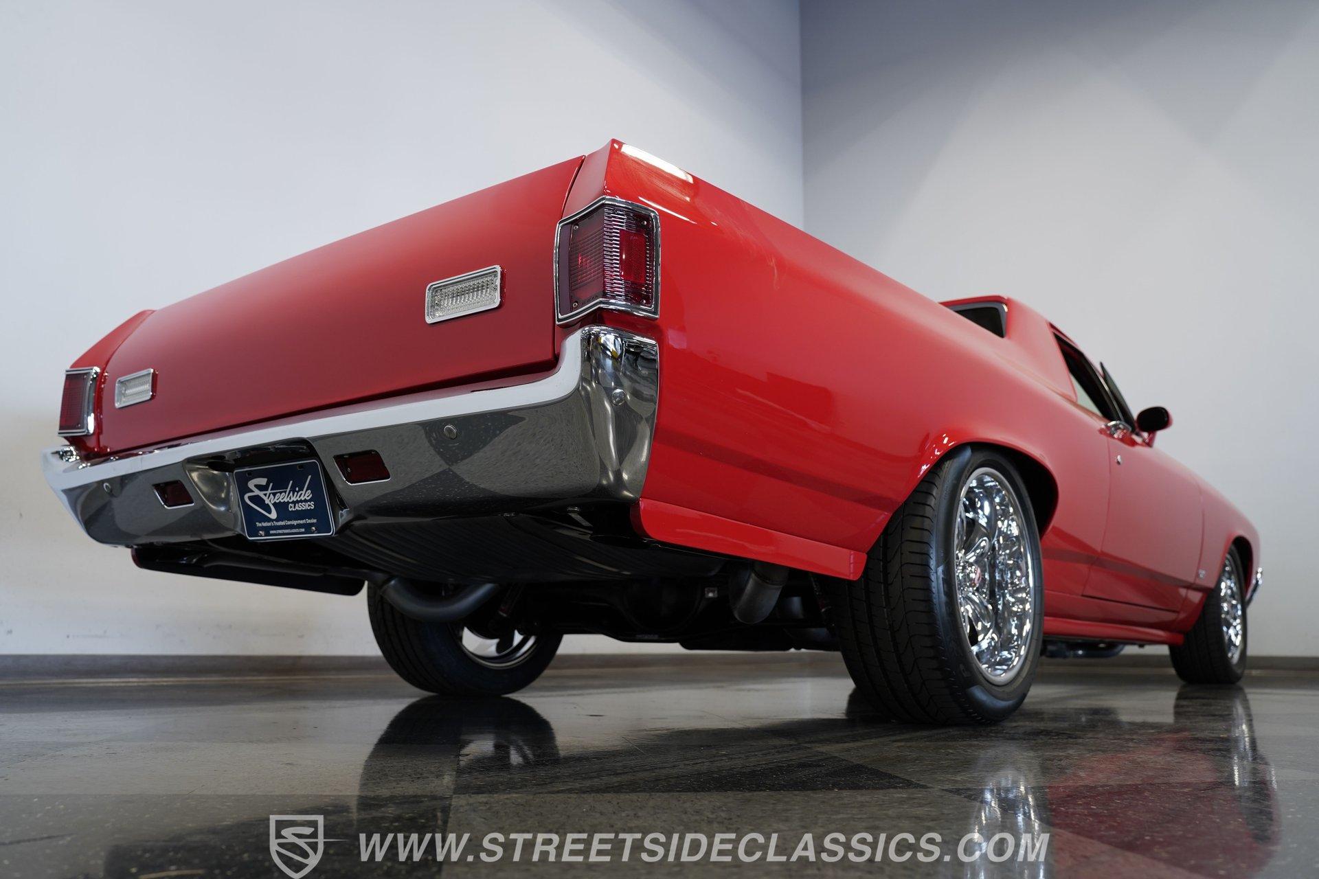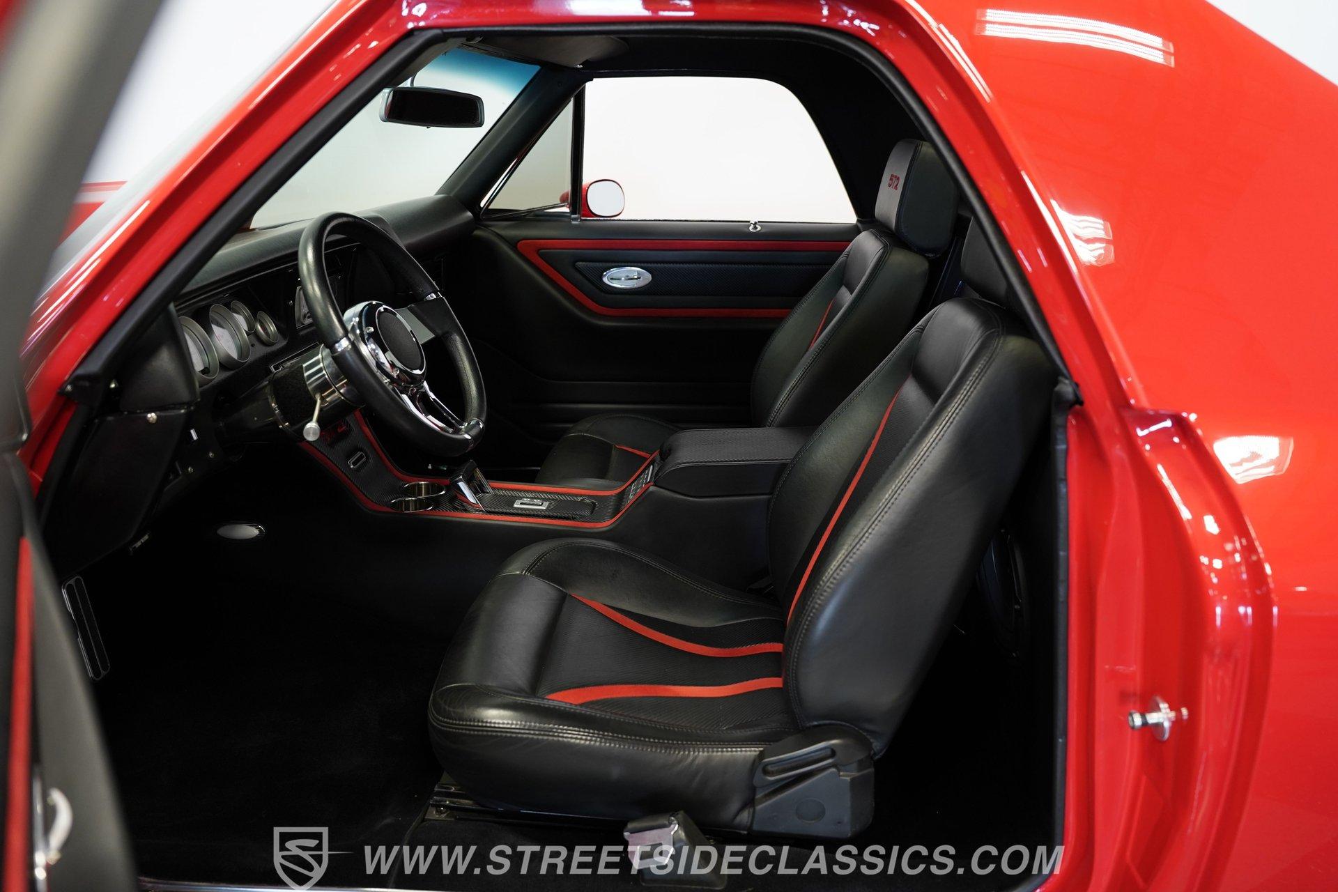 It's half car, half truck and 100% absolute asphalt-scorching, attention-grabbing beast! Dressed in pristine red paint and outfitted with an aggressive cowl induction hood scoop that serves notice of the otherworldly power lurking below, this 1970 Chevrolet El Camino 572 Restomod is an outstanding result of inherent curb appeal, blended with skilled workmanship and a thorough assembly of high-quality, performance-centric components. The fit and finish on it is appropriately exact, and it absolutely radiates excellence, cruising on a set of 18'' five-spoke Coy wheels that add the perfect punctuation point to this elite classic.