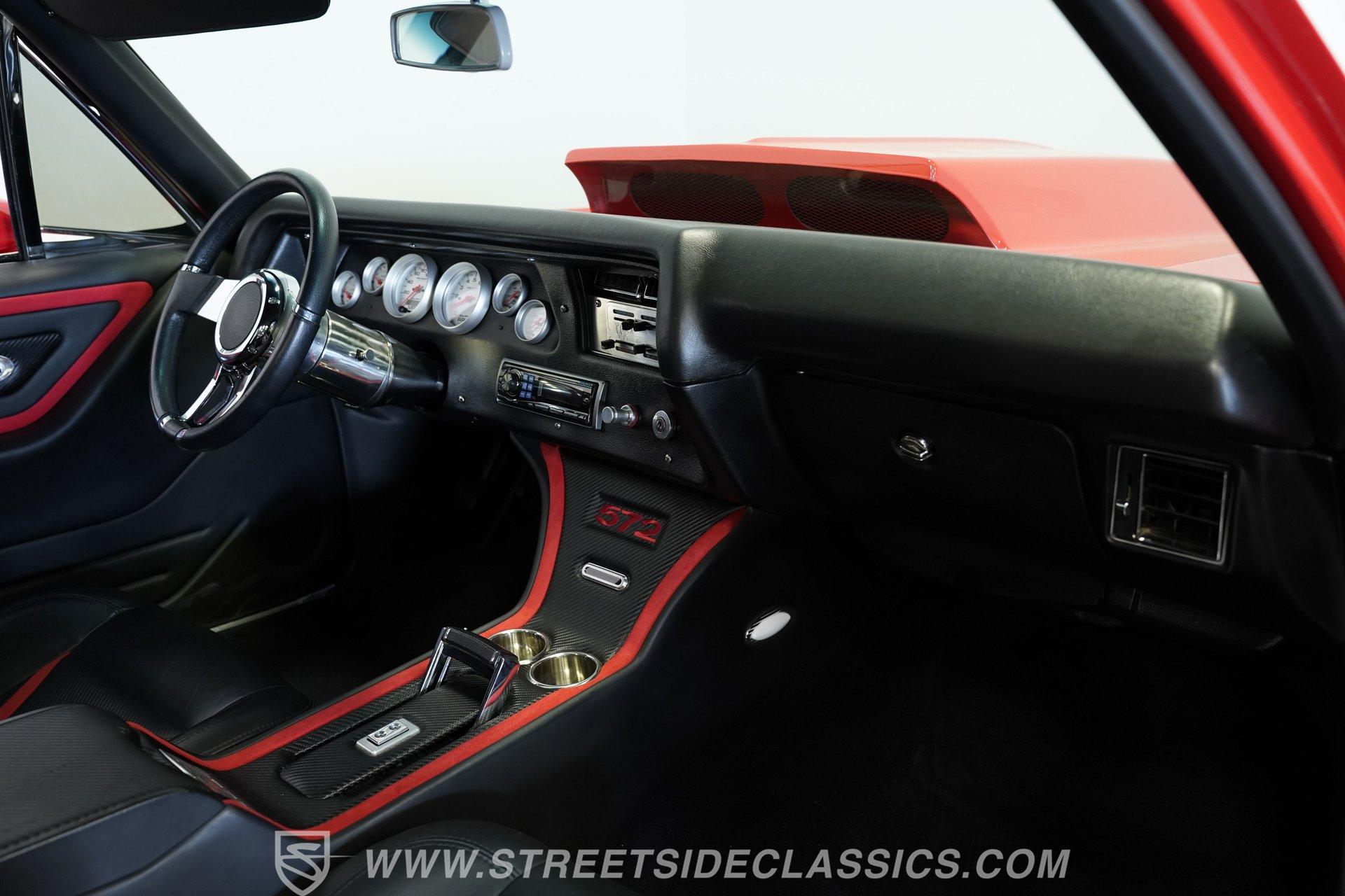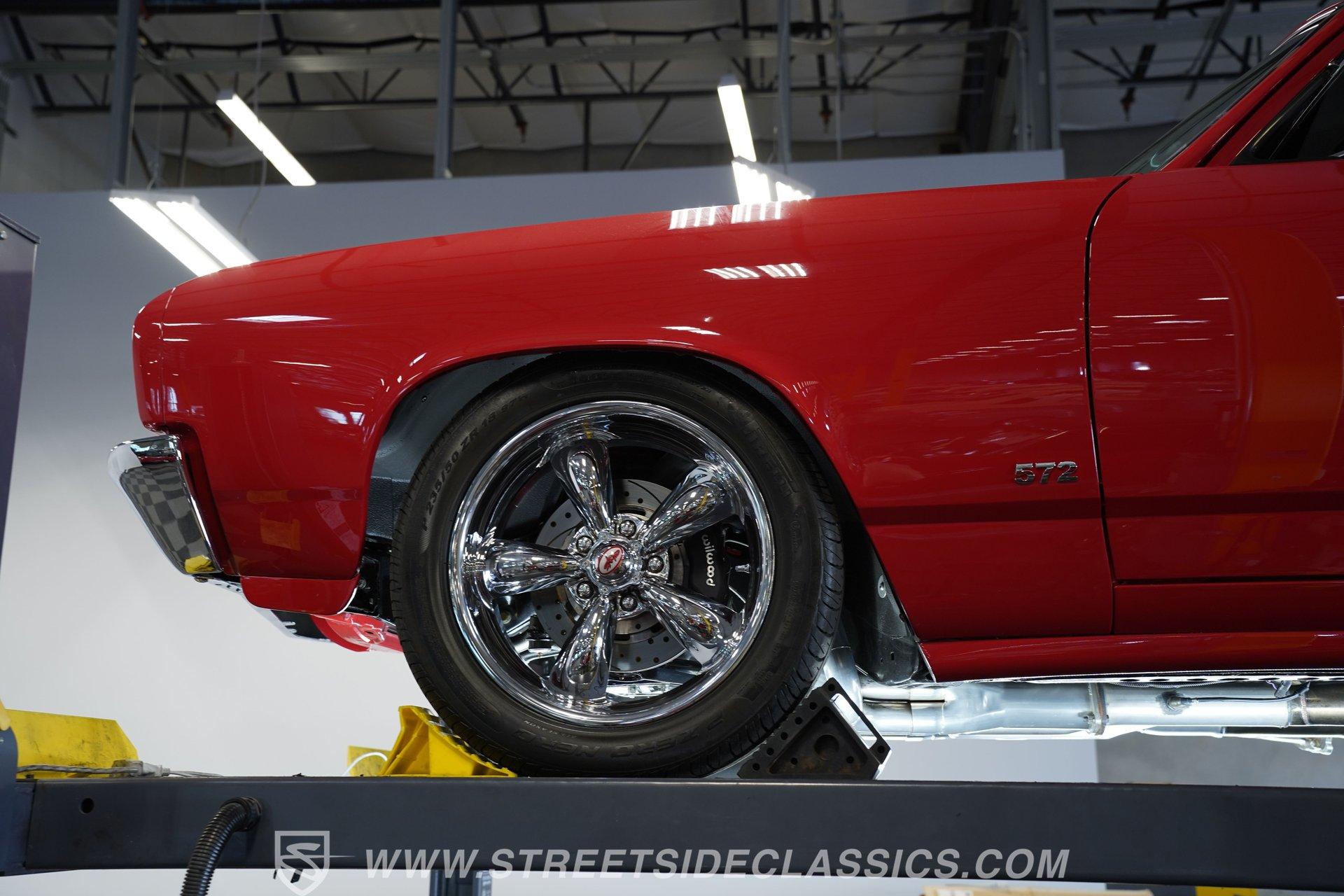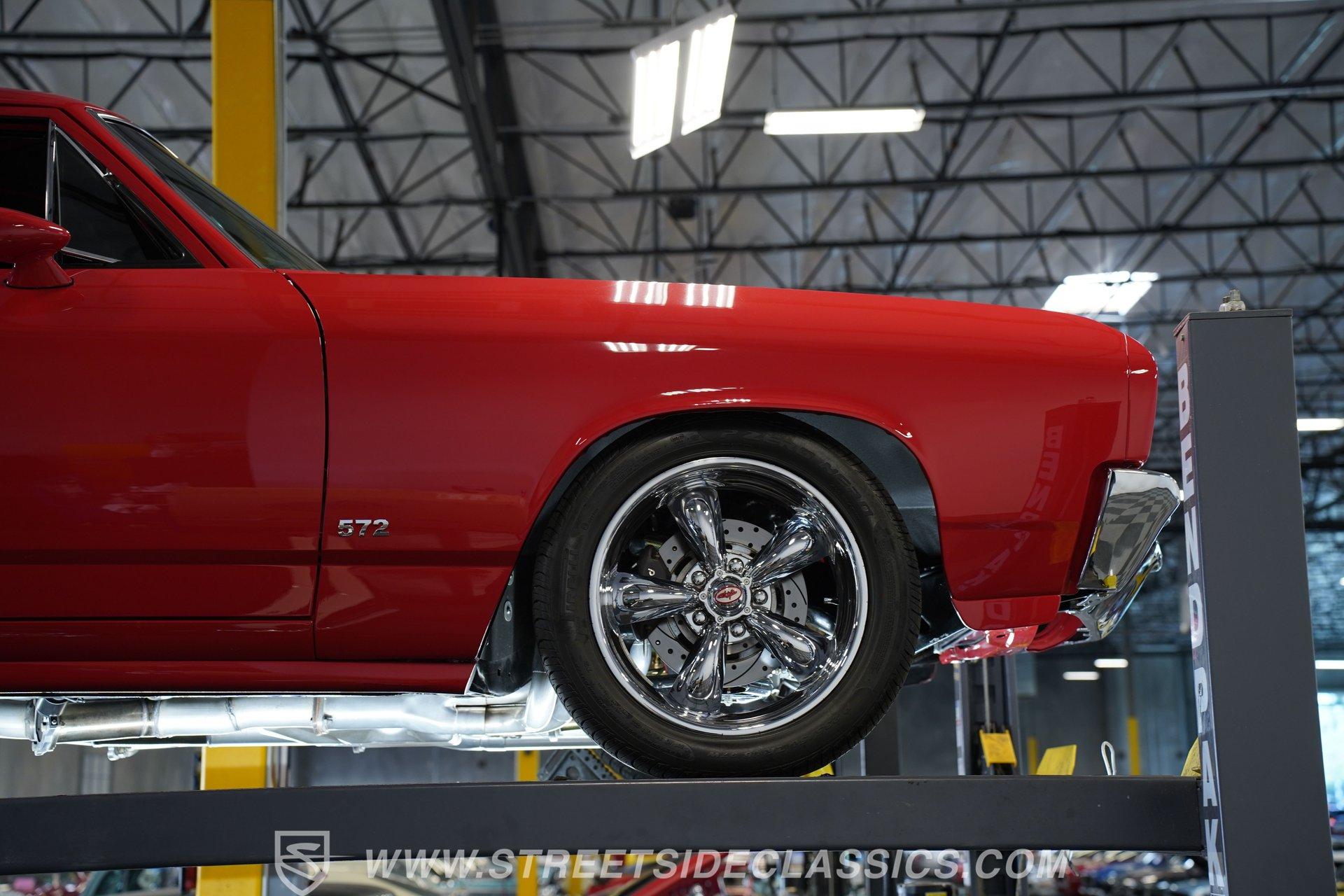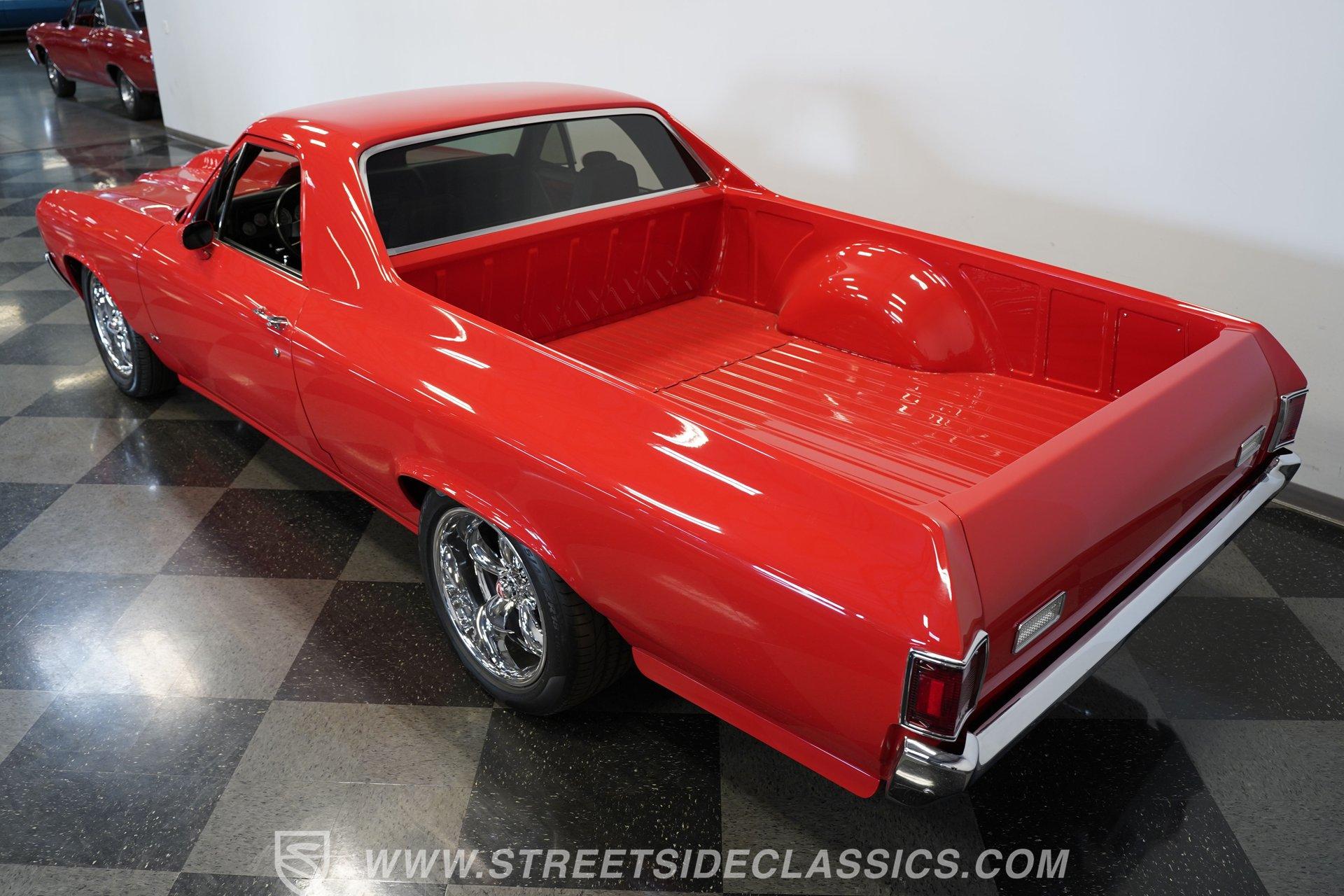 It's half car, half truck and 100% absolute asphalt-scorching, attention-grabbing beast! Dressed in pristine red paint and outfitted with an aggressive cowl induction hood scoop that serves notice of the otherworldly power lurking below, this 1970 Chevrolet El Camino 572 Restomod is an outstanding result of inherent curb appeal, blended with skilled workmanship and a thorough assembly of high-quality, performance-centric components. The fit and finish on it is appropriately exact, and it absolutely radiates excellence, cruising on a set of 18'' five-spoke Coy wheels that add the perfect punctuation point to this elite classic.