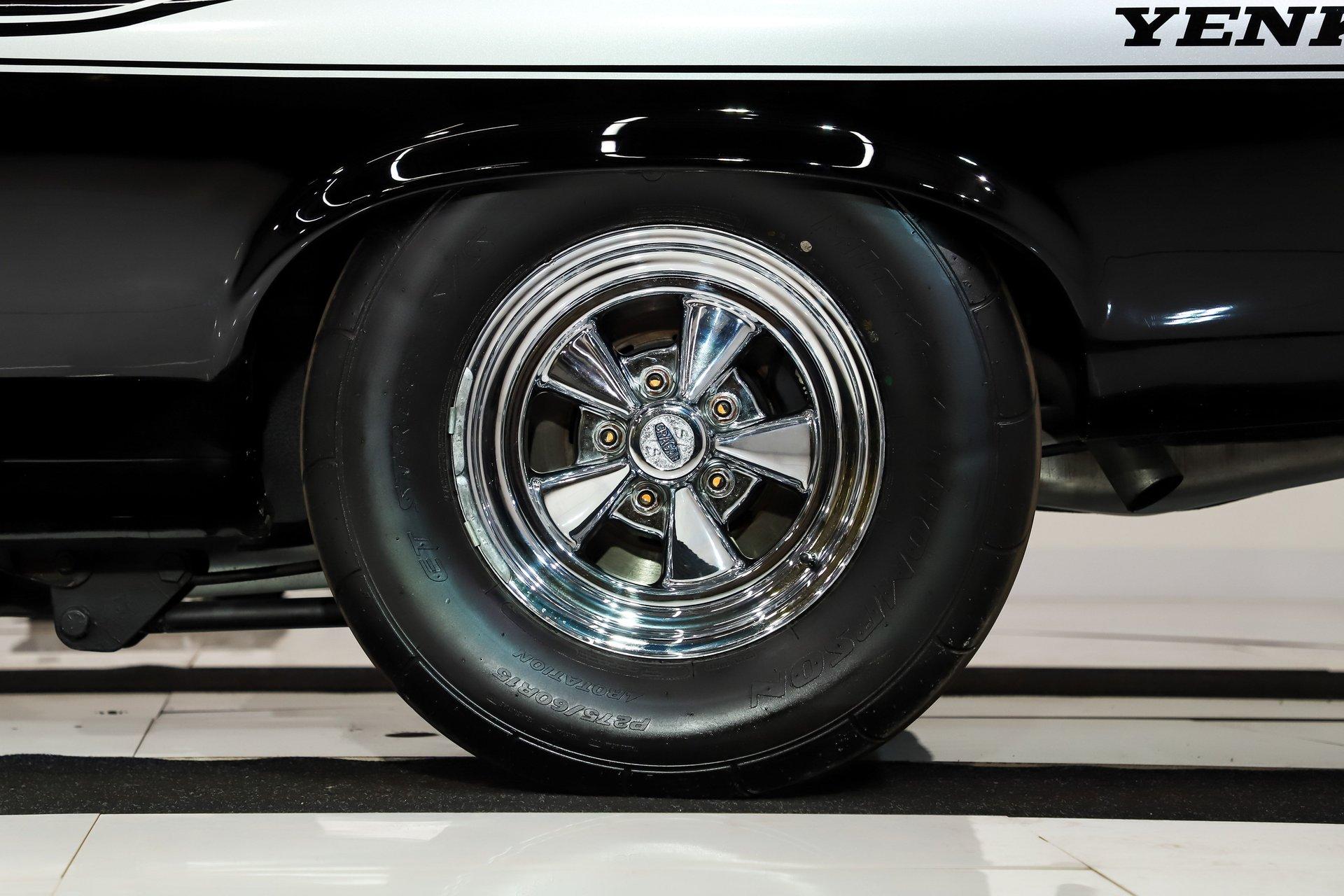 It sits just right on 15-inch SS Cragar wheels. The rears are extra wide and wrapped in Mickey Thompson street slicks, giving it that unmistakable big-and-little muscle car stance.