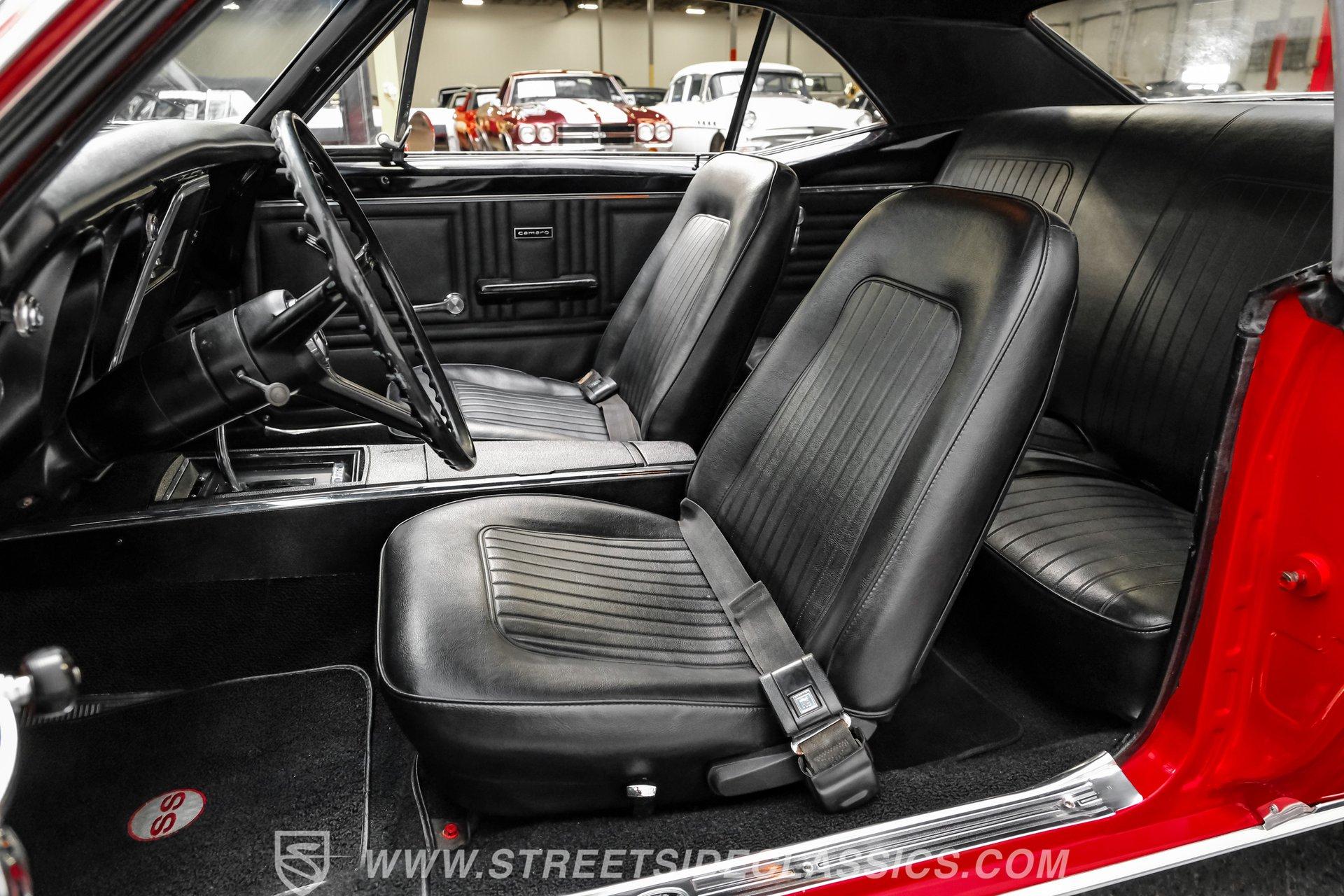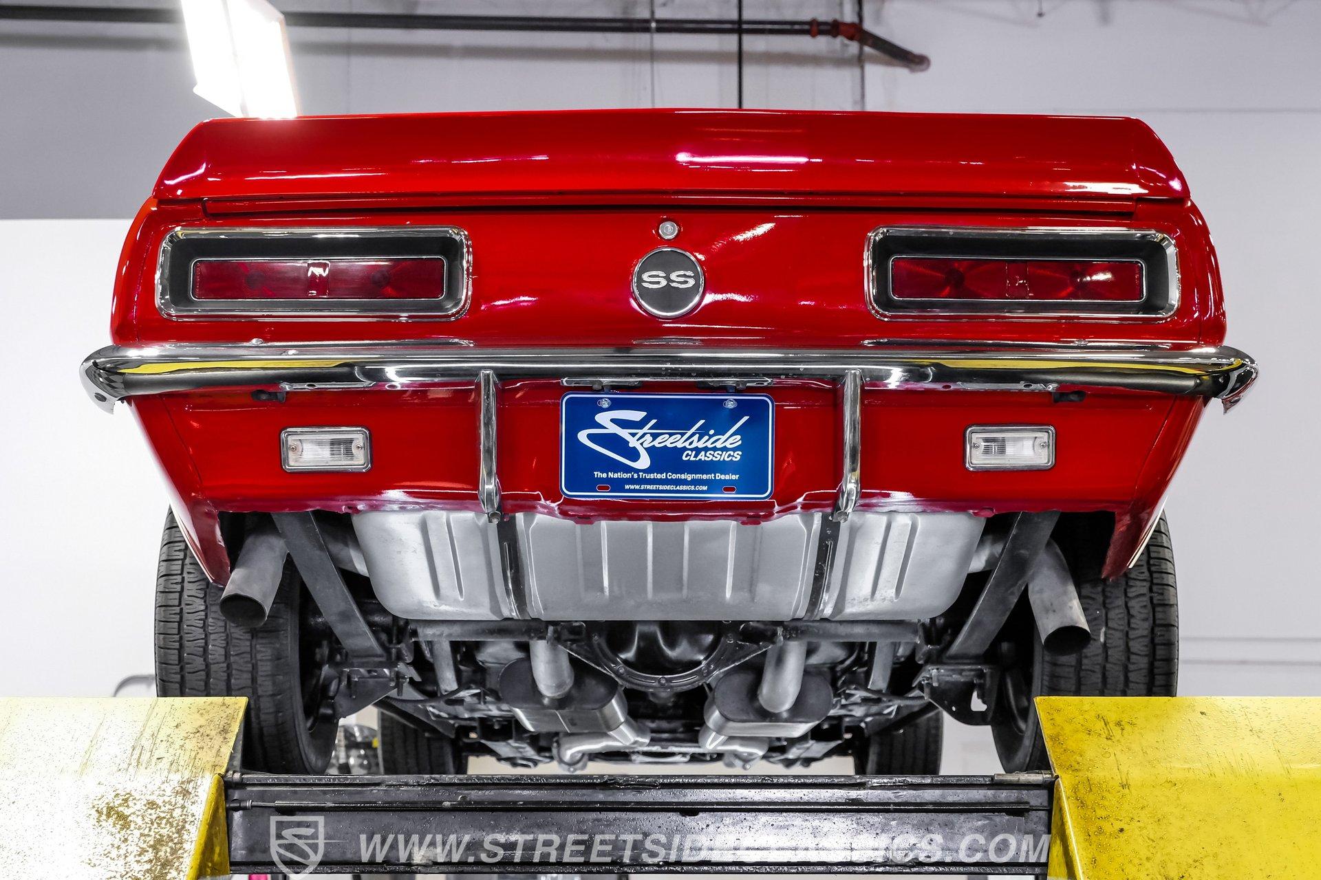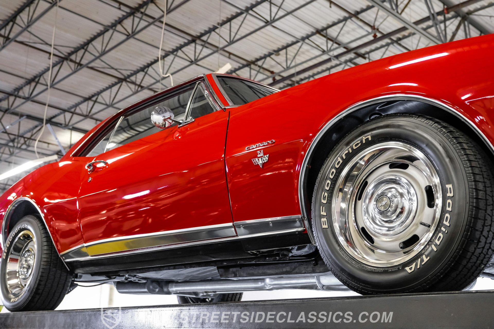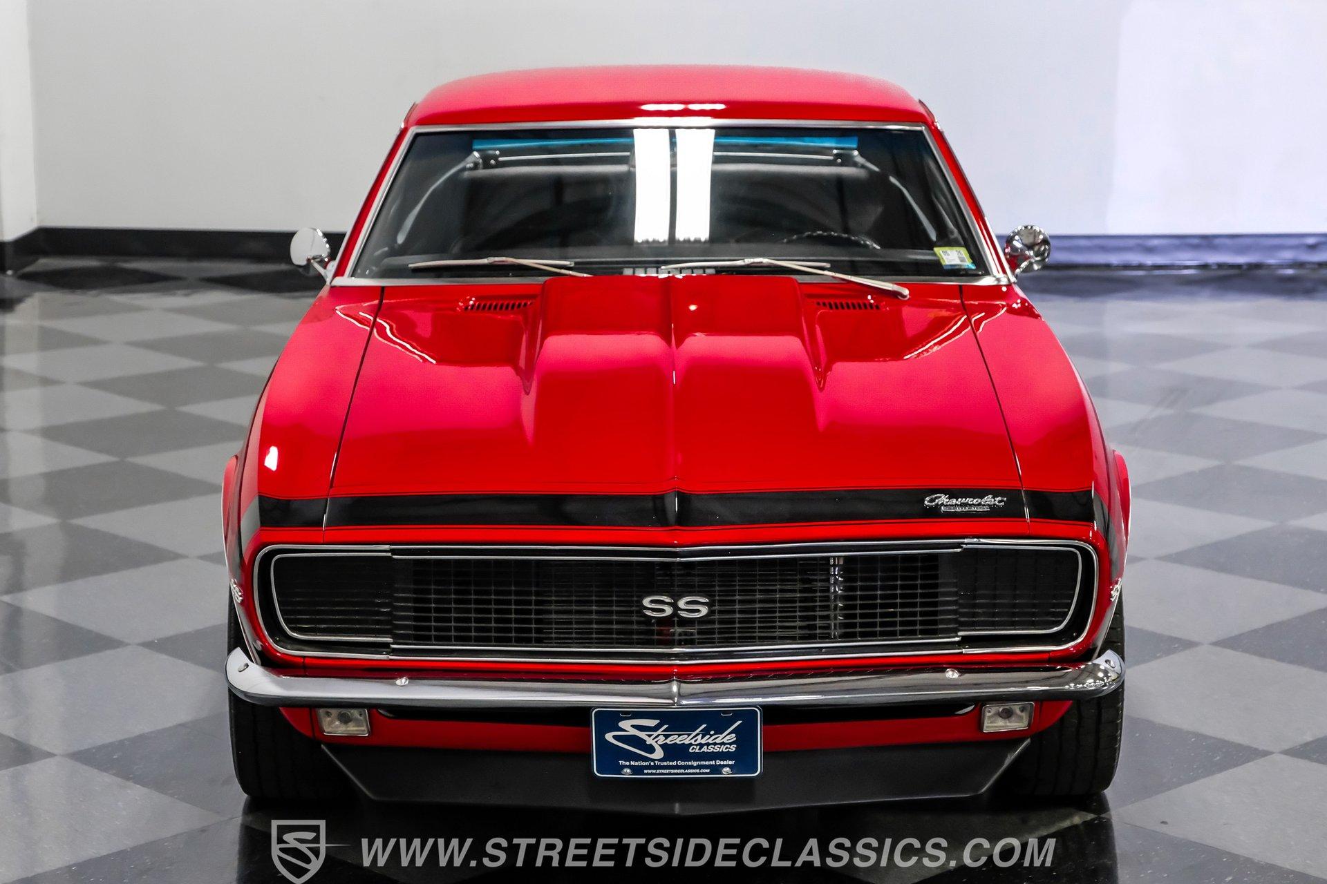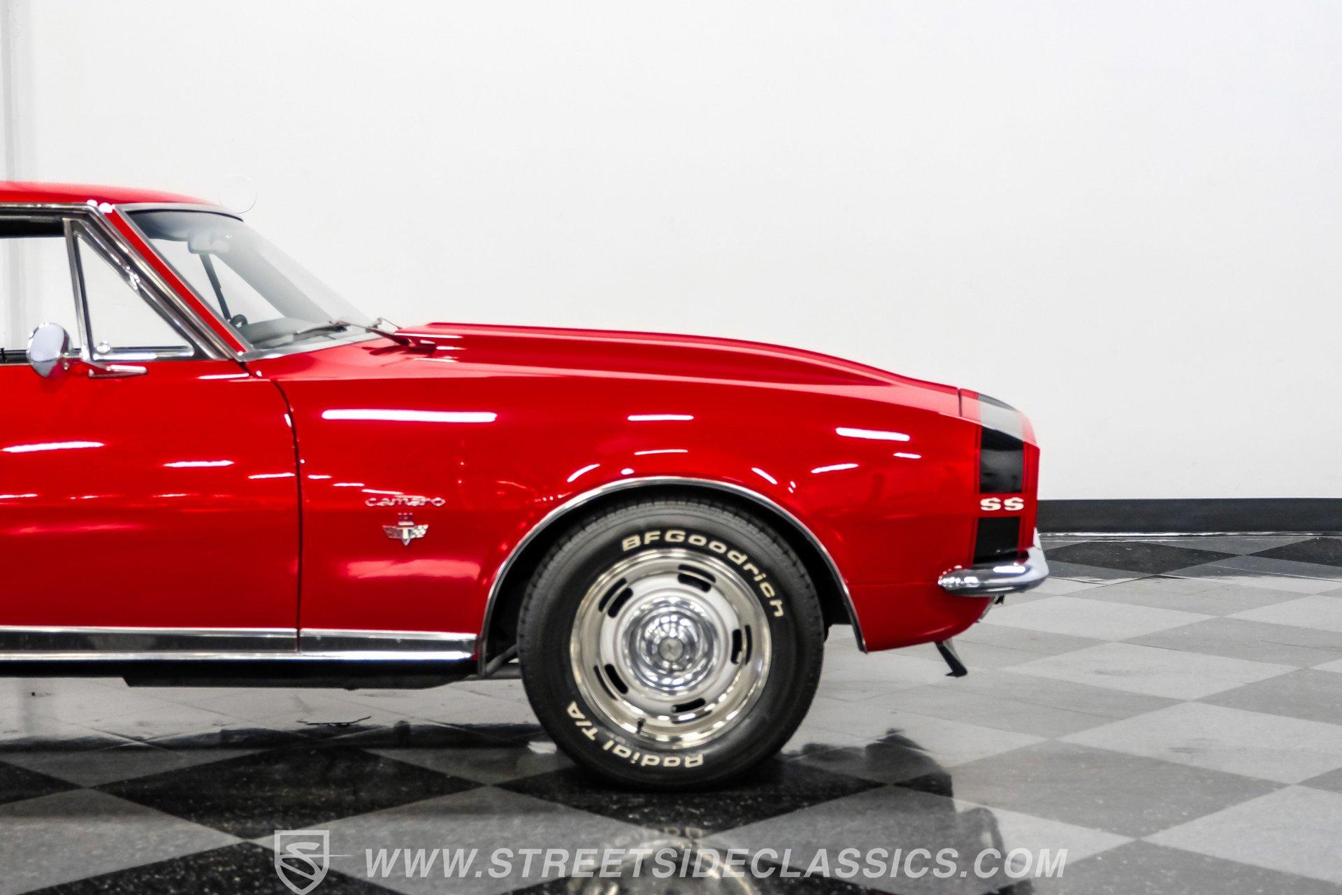 This 1967 Chevrolet Camaro RS/SS Tribute looks the part after a body-off restoration. From its aggressive stance and rally wheels to the bright red paint, black bumblebee nose stripe, and lower front valance, this Camaro has the classic muscle car presence everyone loves. The cowl induction hood, and rear spoiler complete the look. All of the brightwork is in good condition, including the front and rear bumpers. The front grille, taillights, tailpipes, and emblems are correctly placed and present very well. This is one striking Camaro that's hard to take your eyes off of.