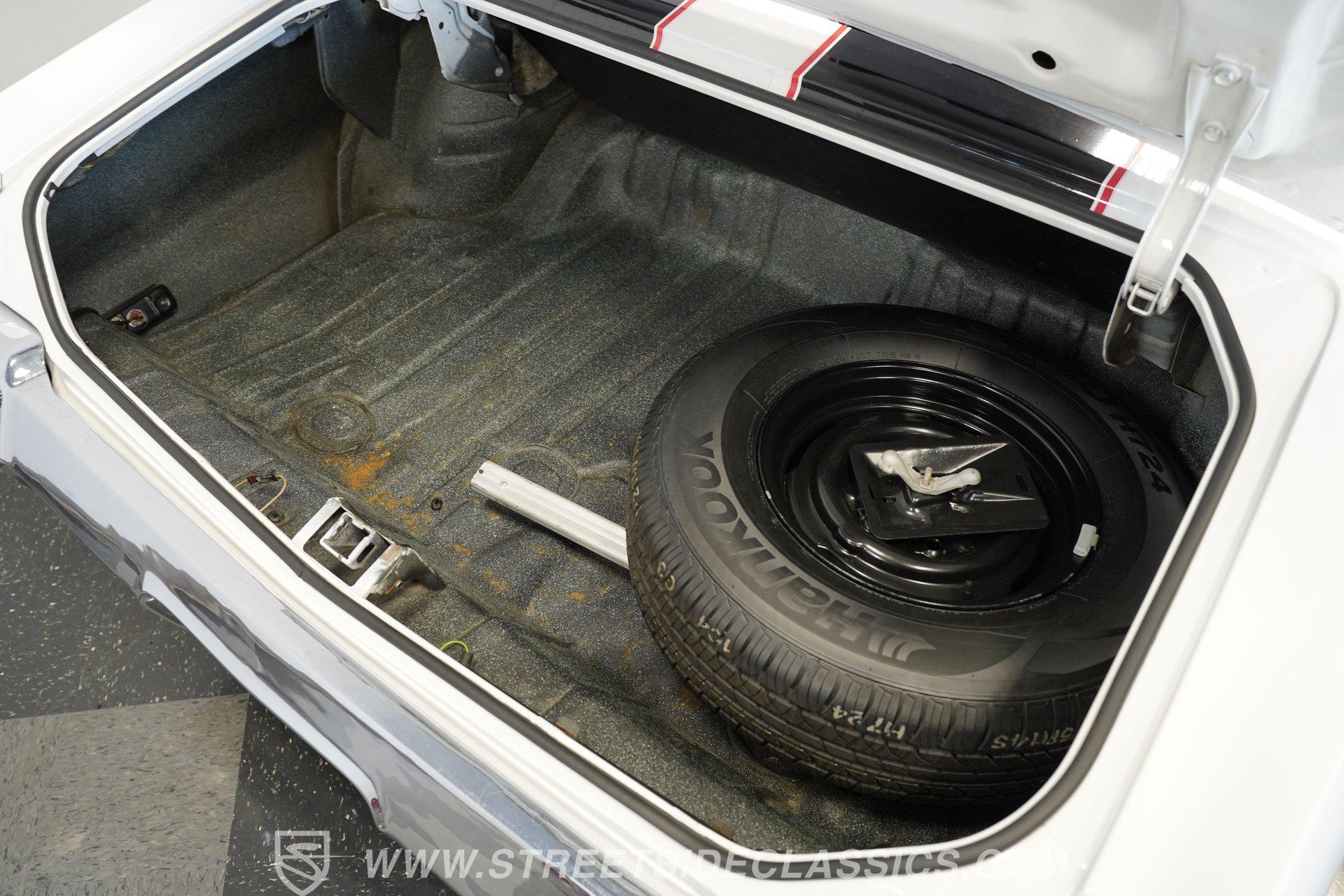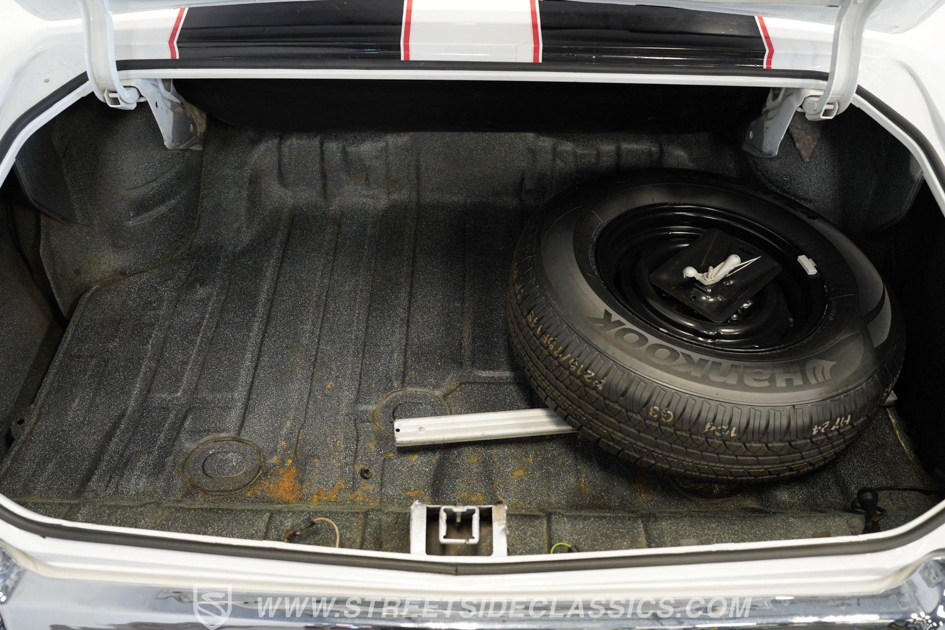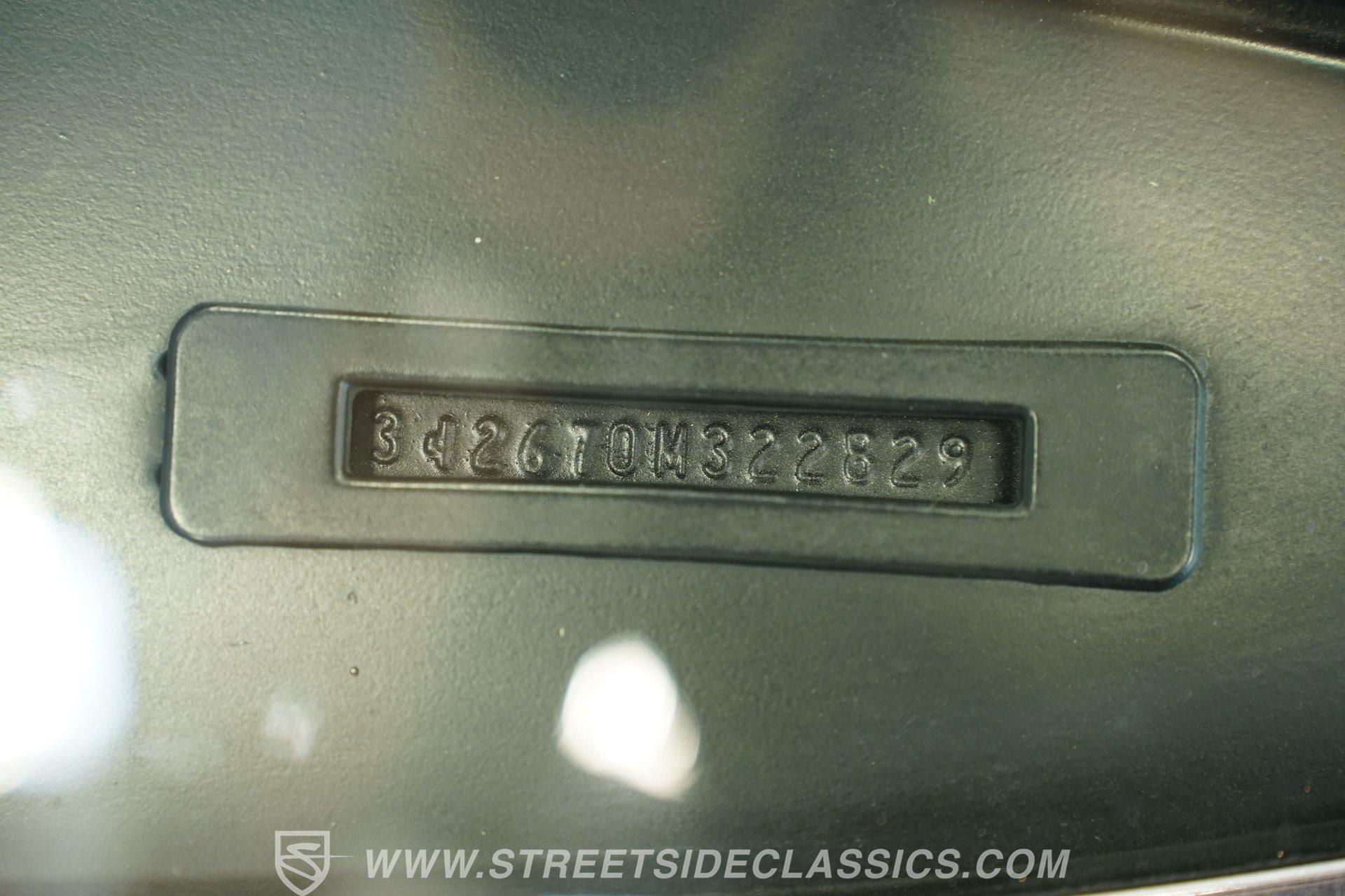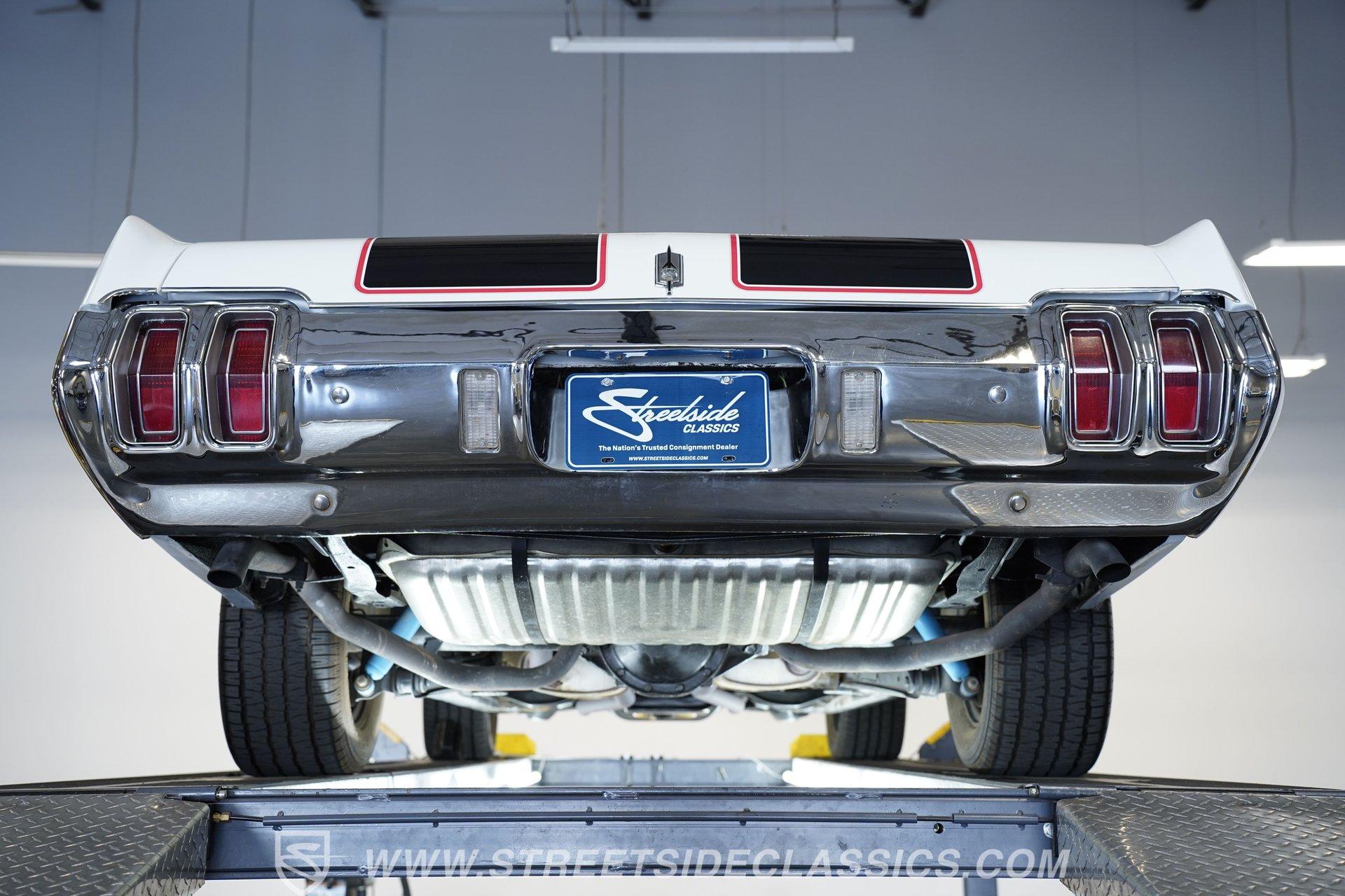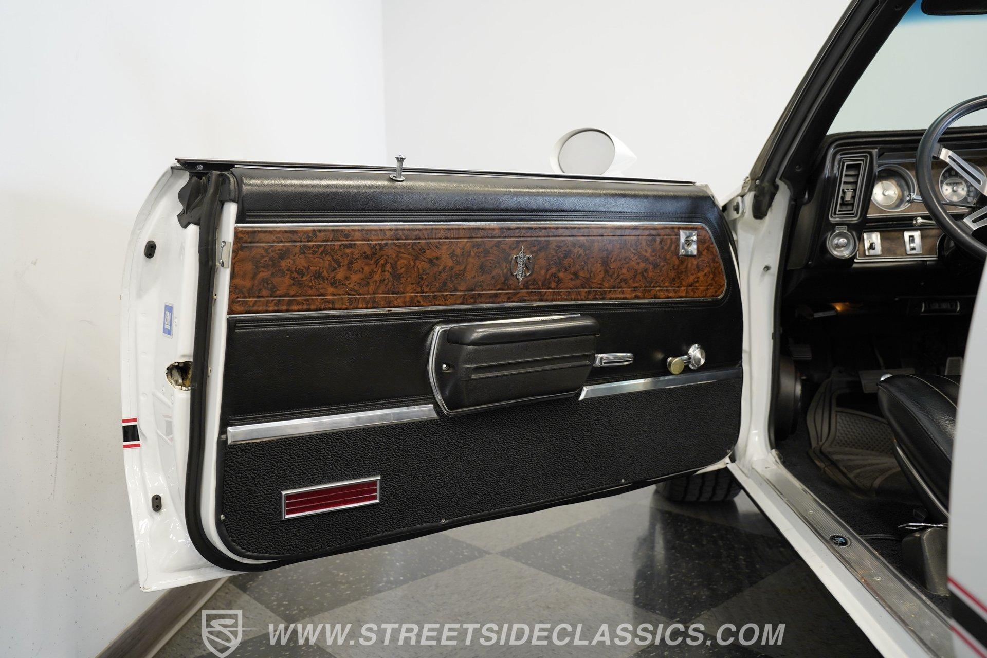 Finished in Porcelain White with a white convertible top, this Pace Car features black racing stripes on the hood and across the deck lid, outlined with red pin stripping. Matching colored side stripes run down the side of the car, and the Oldsmobile Official Pace Car decals are hard to miss. The chrome bumpers present well, and the Ram Air hood, deck lid, fenders, doors, and quarter panels all appear straight and clean. Factory-style white Oldsmobile wheels complete the period-correct look and give the car the proper stance.
