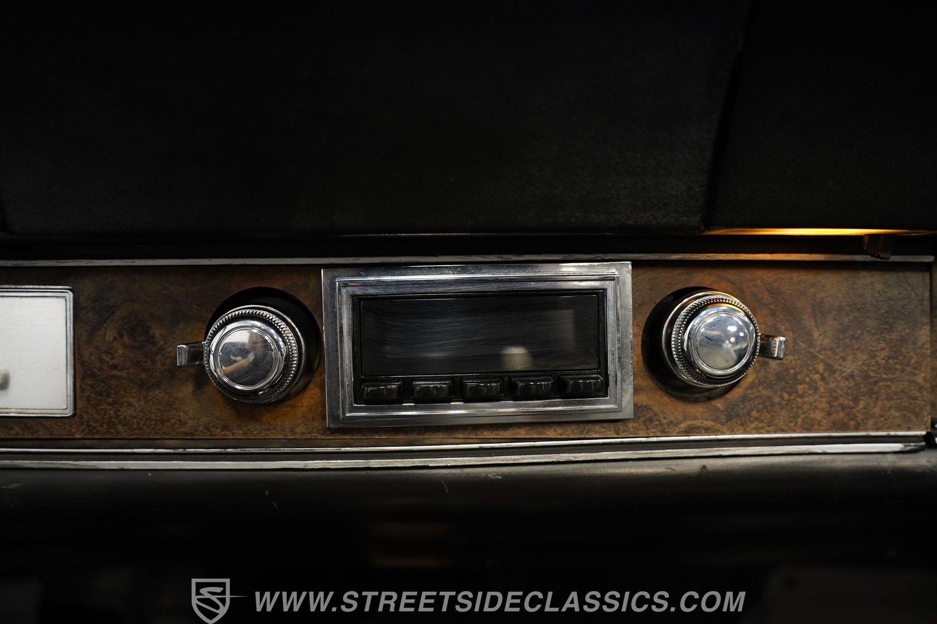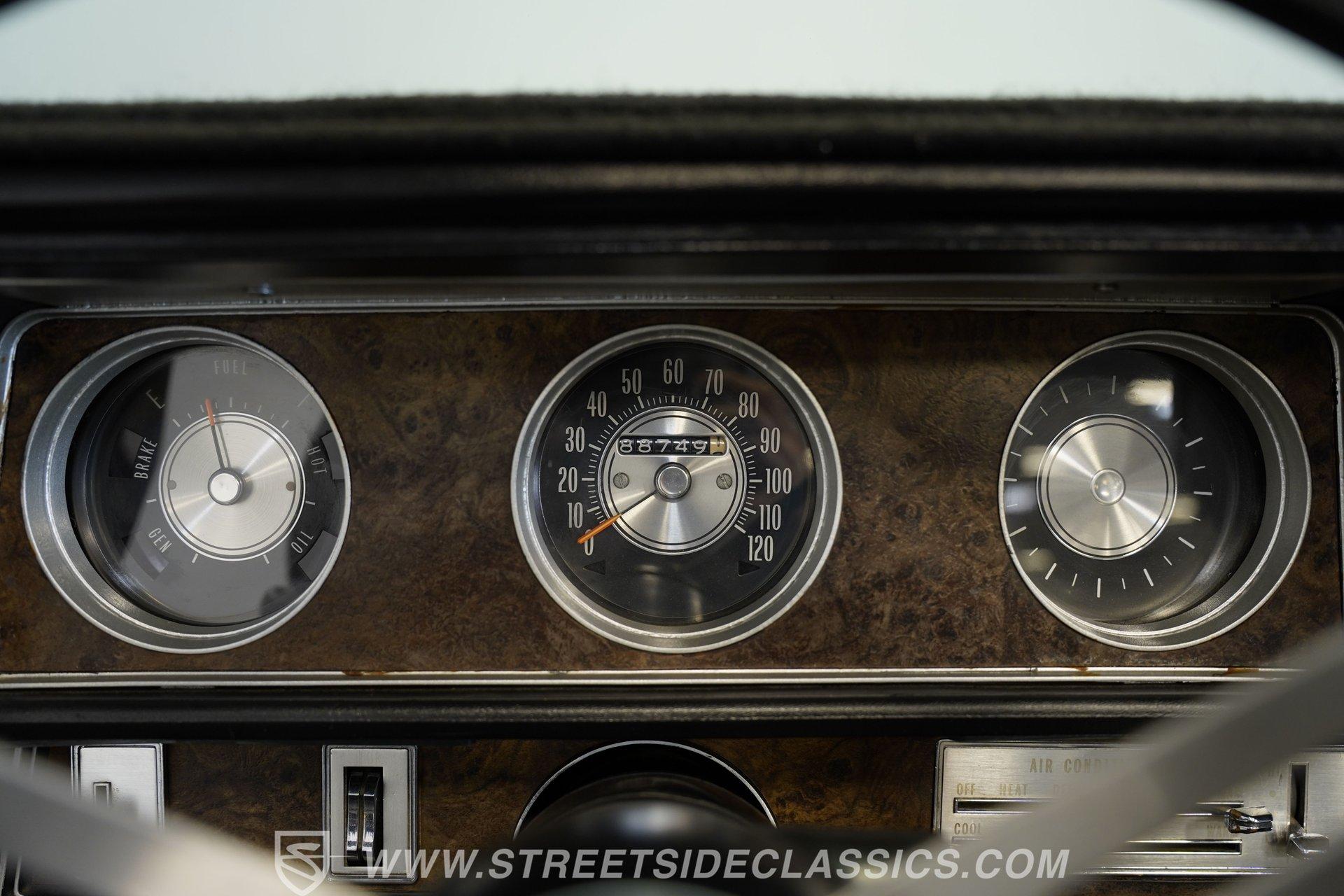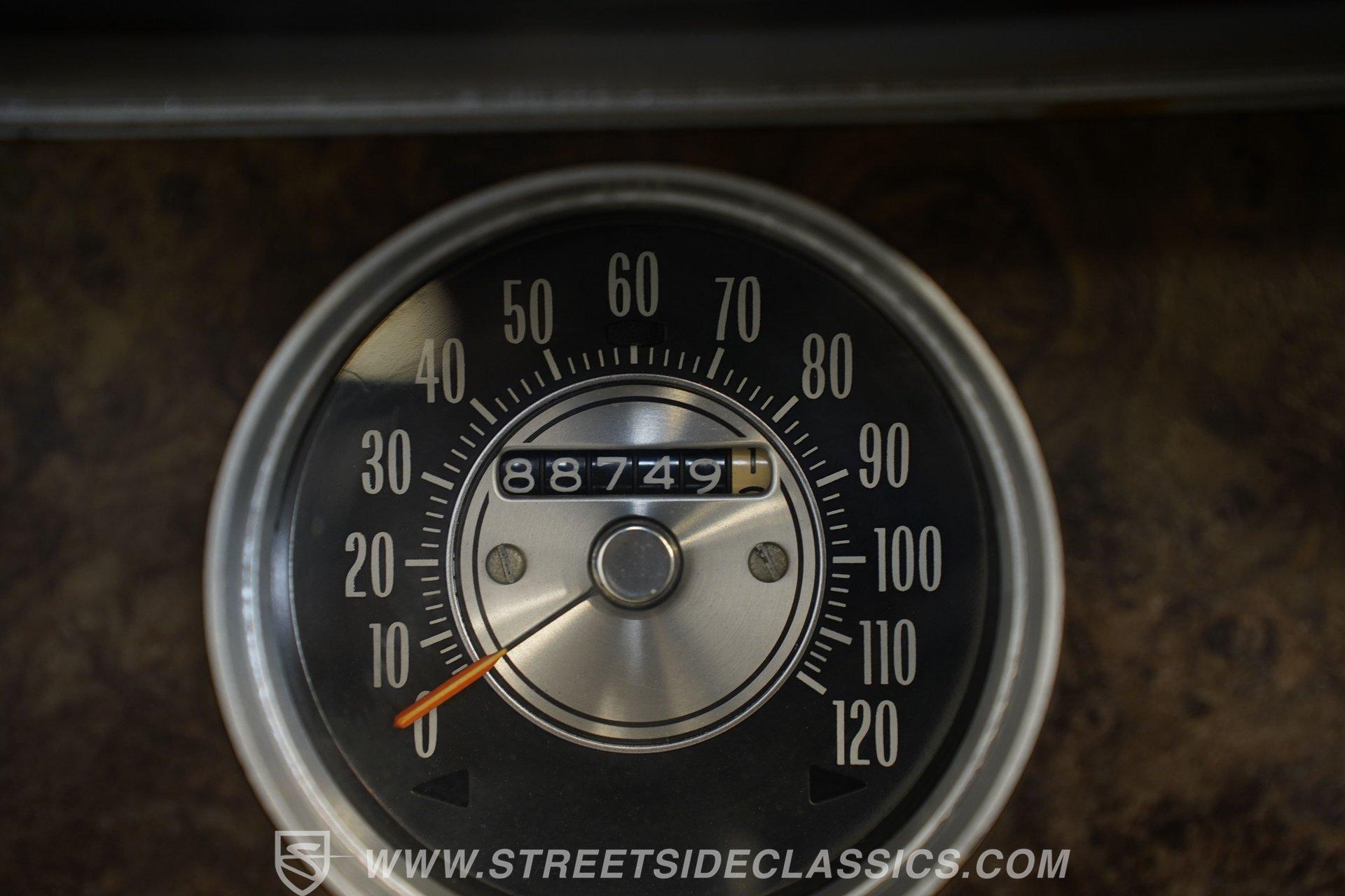 Inside, the mostly black interior remains in very good condition. The vinyl bucket seats and rear bench show very well, and the same goes for the door panels and center console with shifter. Stock-style woodgrain inserts run throughout the interior and remain in good shape. The gauge cluster retains its factory appearance, along with the steering wheel. Carpets are clean and protected by heavy-duty rubber mats. The dash houses a stock-appearing radio that has been upgraded internally for modern use. Overall, the interior is well preserved and complements the exterior nicely.