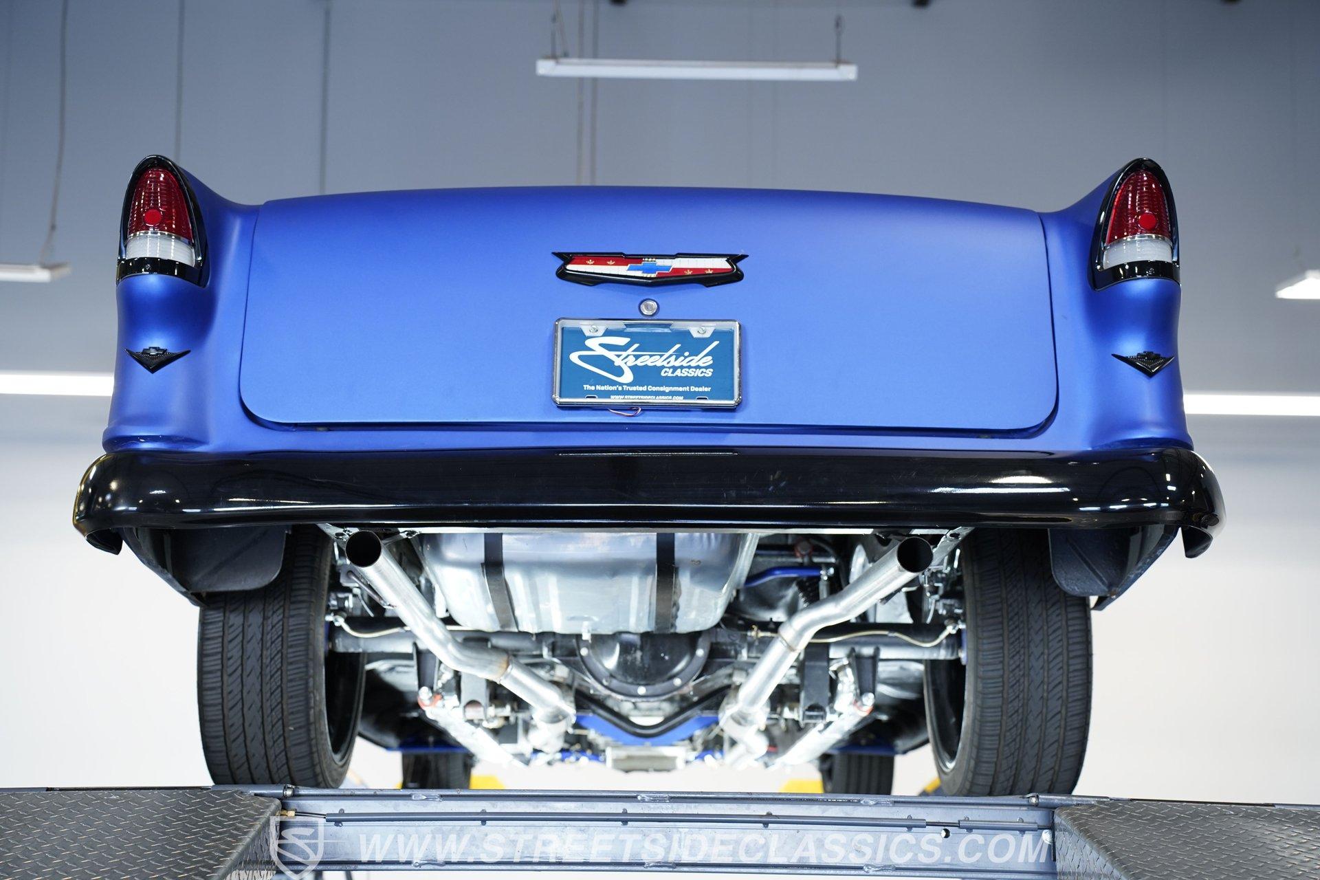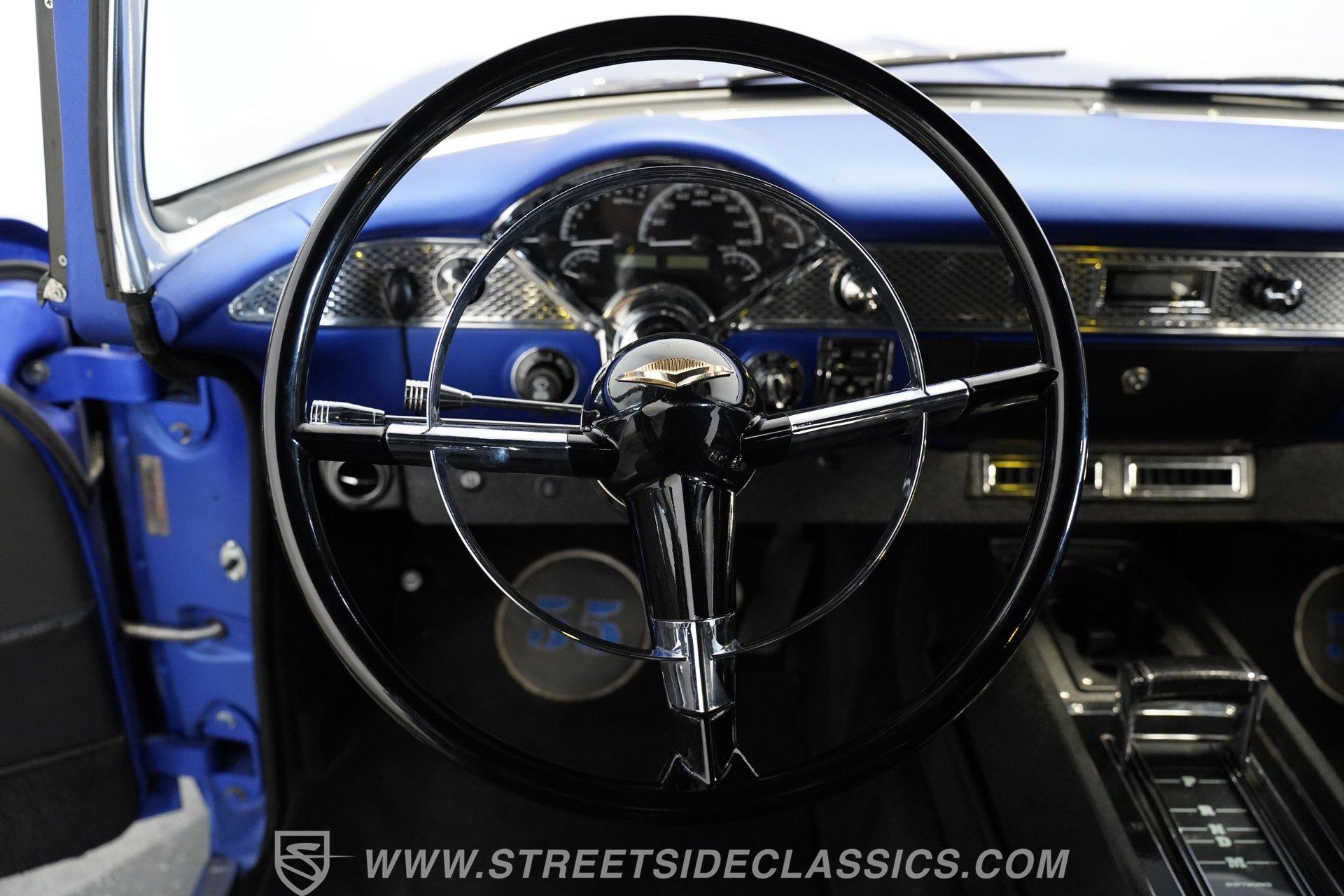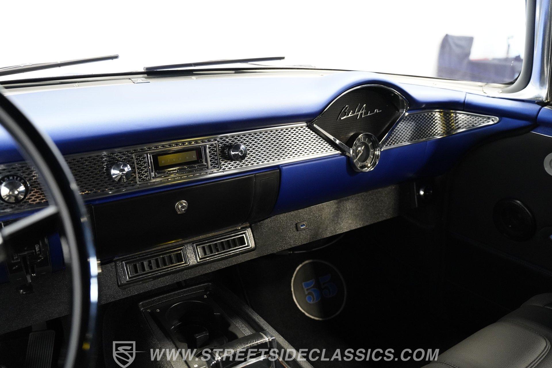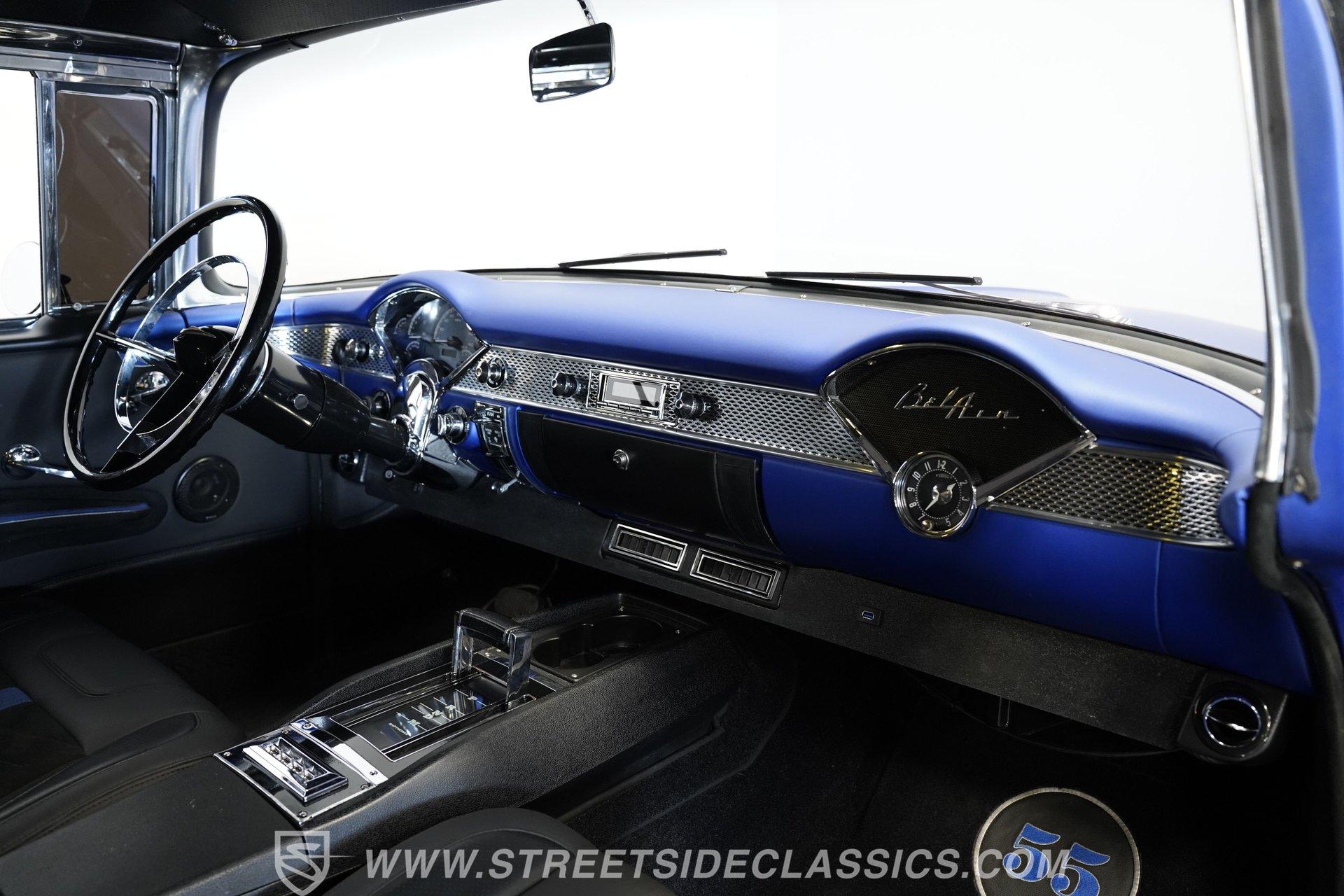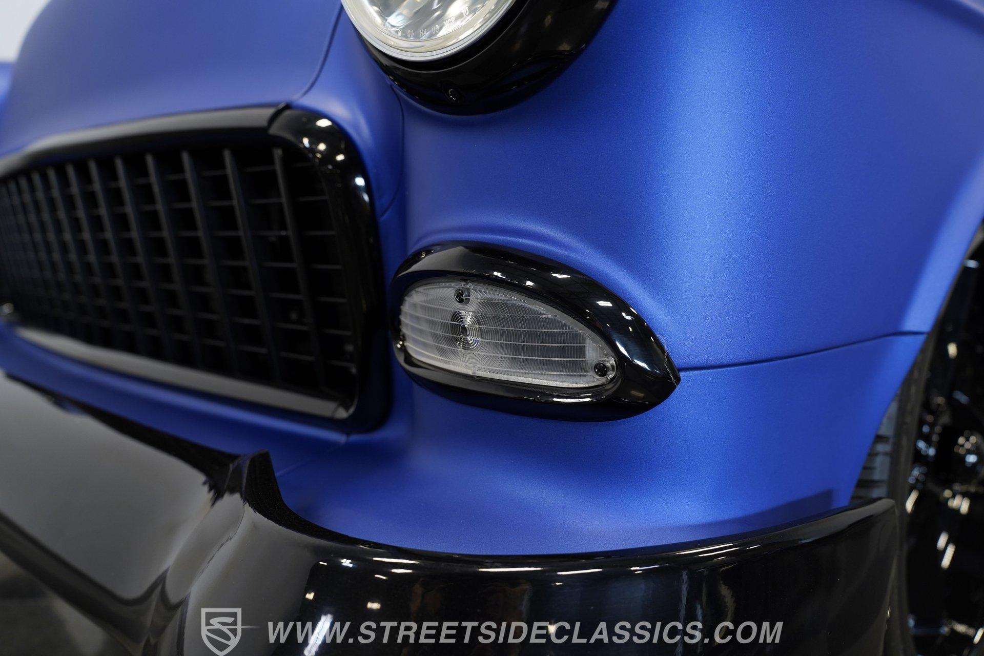 With their timeless looks and storied history, the Bel Airs of the mid-'50s have long been used as the foundation for countless aftermarket projects, but it's likely that very few, if any, have emerged from their restoration with the singular appearance of this 1955 Chevrolet Bel Air Restomod. Clad in Electron Blue Pearl paint that nearly radiates in the sun and is accompanied by blacked out chrome and cruising on an aggressive, lowered stance accentuated by a set of staggered jet-black wheels, this classic is an absolute standout. And along with its attention-grabbing curb appeal, this Chevy is equipped with a modern drivetrain, as well as several key mechanical upgrades, so it offers an outstanding experience behind the wheel.