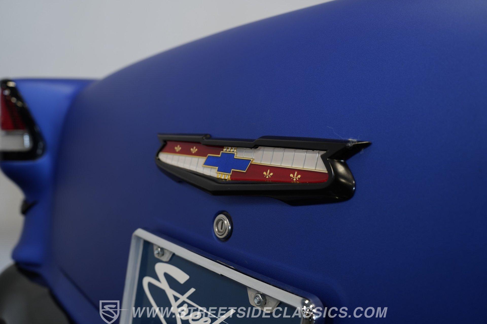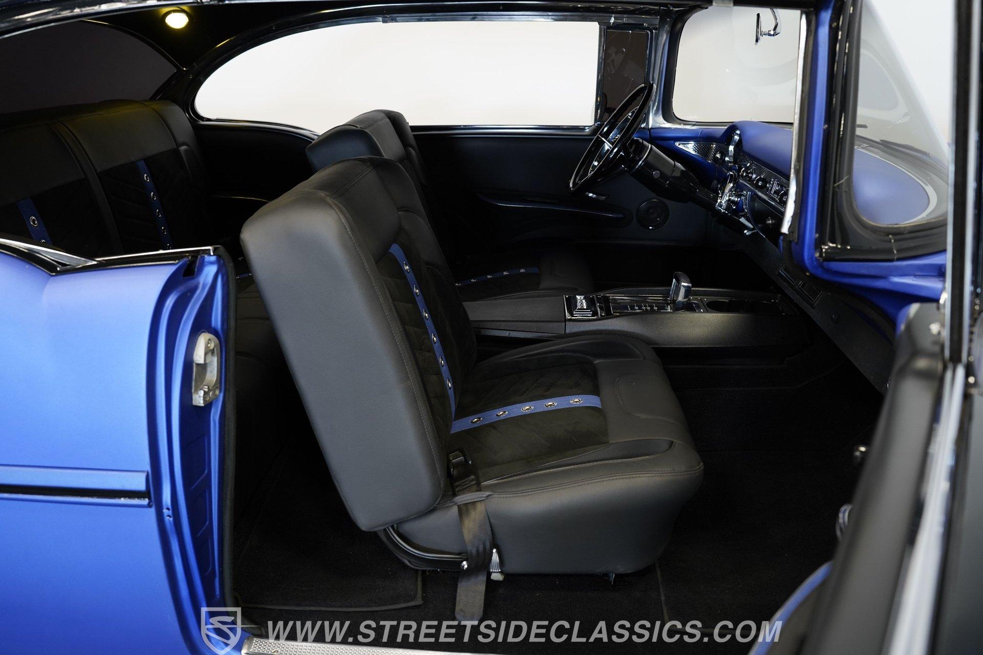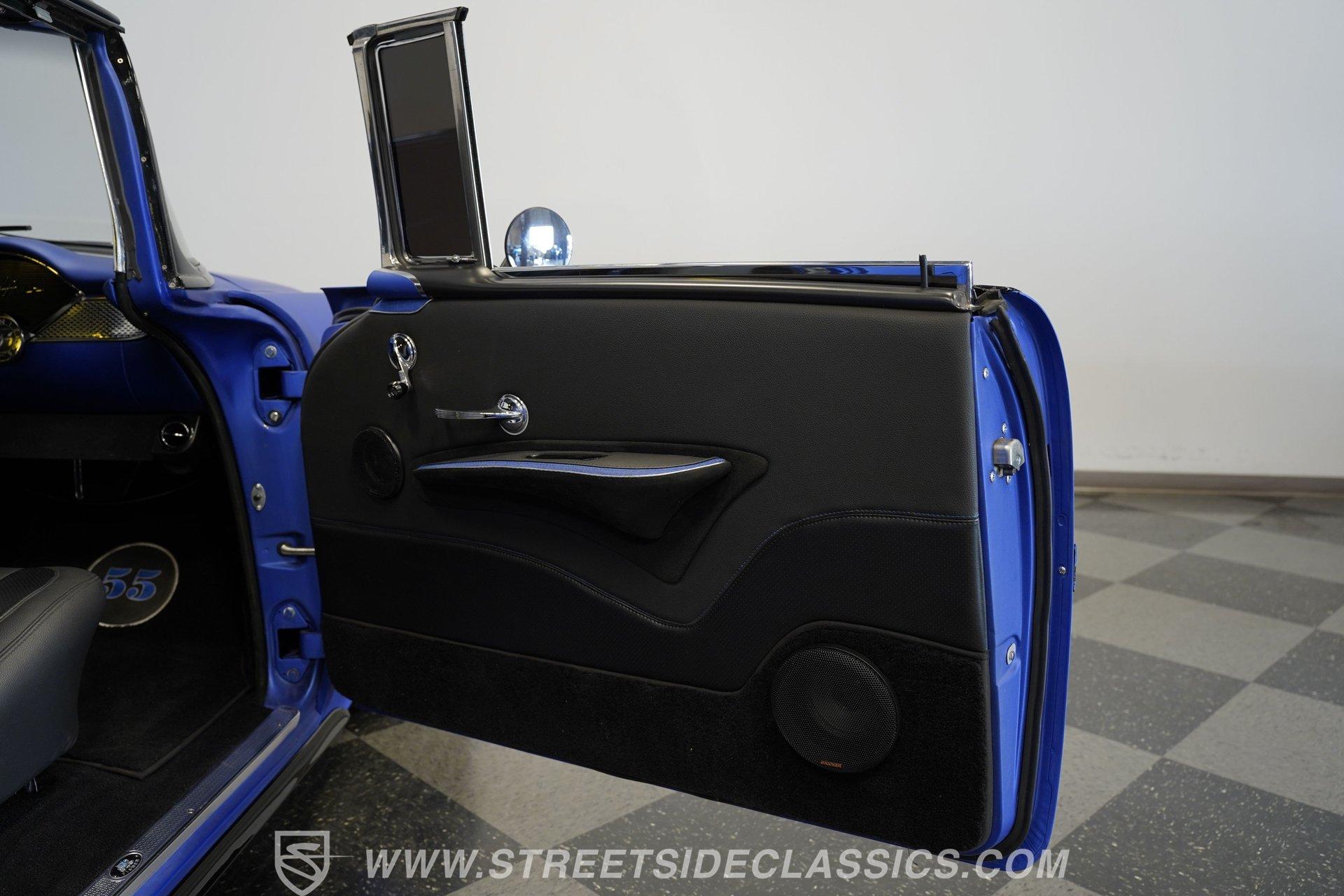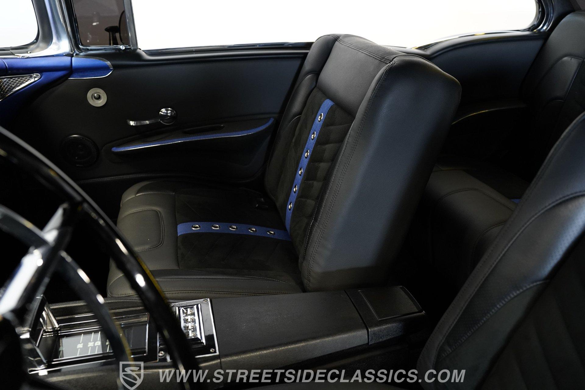 With their timeless looks and storied history, the Bel Airs of the mid-'50s have long been used as the foundation for countless aftermarket projects, but it's likely that very few, if any, have emerged from their restoration with the singular appearance of this 1955 Chevrolet Bel Air Restomod. Clad in Electron Blue Pearl paint that nearly radiates in the sun and is accompanied by blacked out chrome and cruising on an aggressive, lowered stance accentuated by a set of staggered jet-black wheels, this classic is an absolute standout. And along with its attention-grabbing curb appeal, this Chevy is equipped with a modern drivetrain, as well as several key mechanical upgrades, so it offers an outstanding experience behind the wheel.