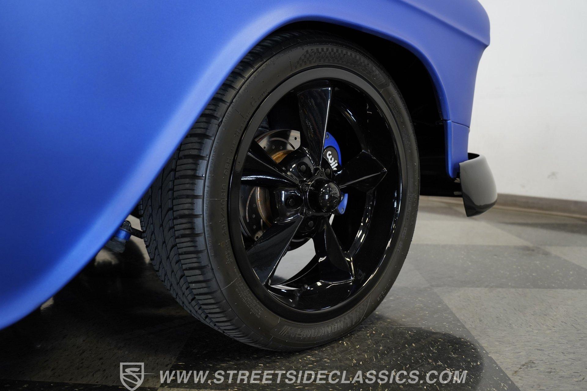 This vintage Chevy is a lot of fun to drive, which should come as no surprise, as it's powered by a modern, electronically fuel-injected 5.3-liter V8 that pairs with an automatic, six-speed 6L80E specifically designed to optimize the engine's capabilities. This modern drivetrain is in top form, making for prompt starts, smooth idling and strong acceleration. Everything beneath the hood is well-sorted and clean. The engine is dressed in paint-matched valve covers, while up front an aluminum radiator teams with an electric fan to keep operating temperatures in check. This Chevy rides on a suspension that includes tubular upper and lower control arms with coilovers in front and a four-link suspension in back, so its agility in real world driving situations is sure to bring a smile to your face. And, with both power steering and four-wheel power disc brakes also on board, the navigation comes easy and the stops come quickly.