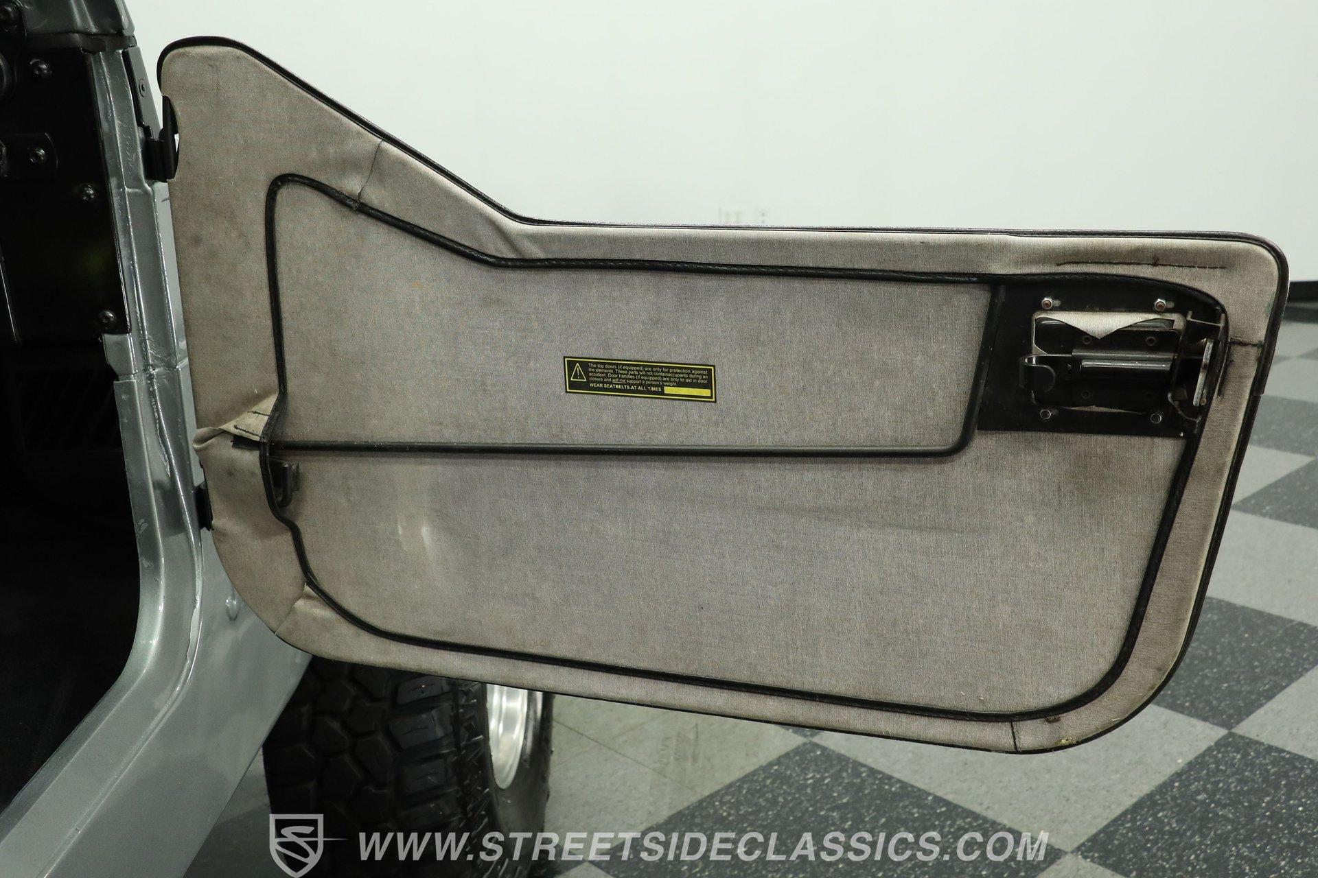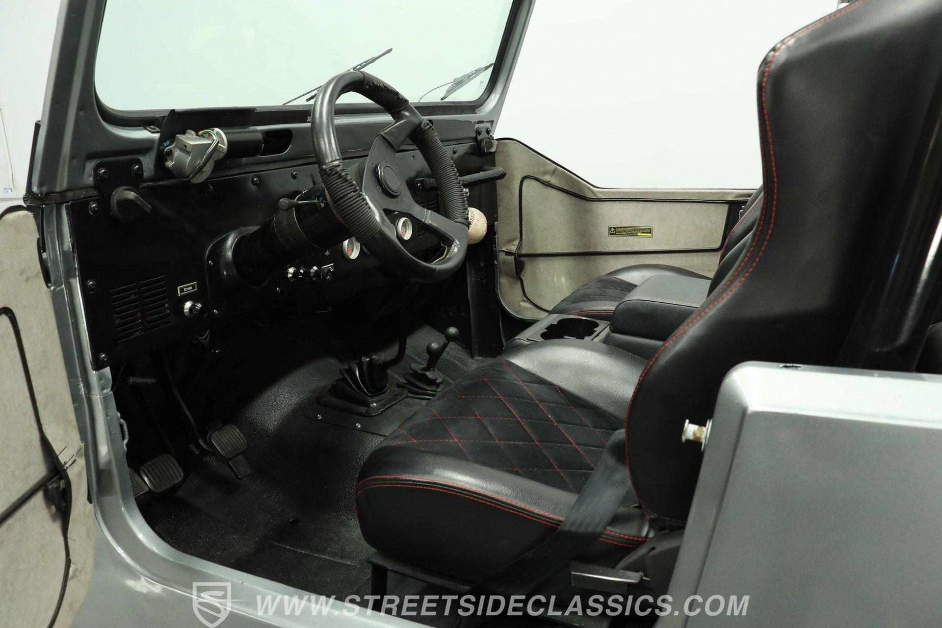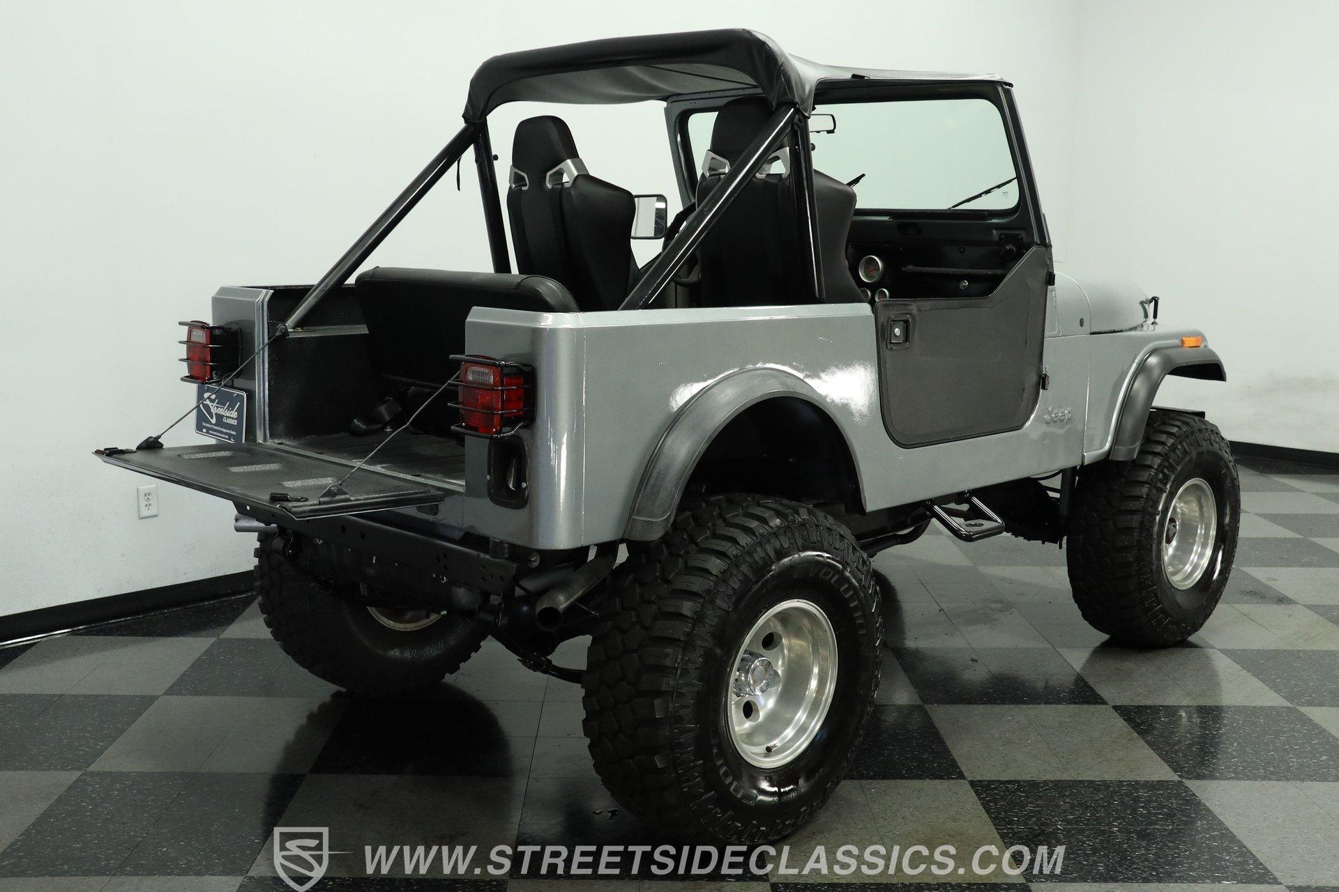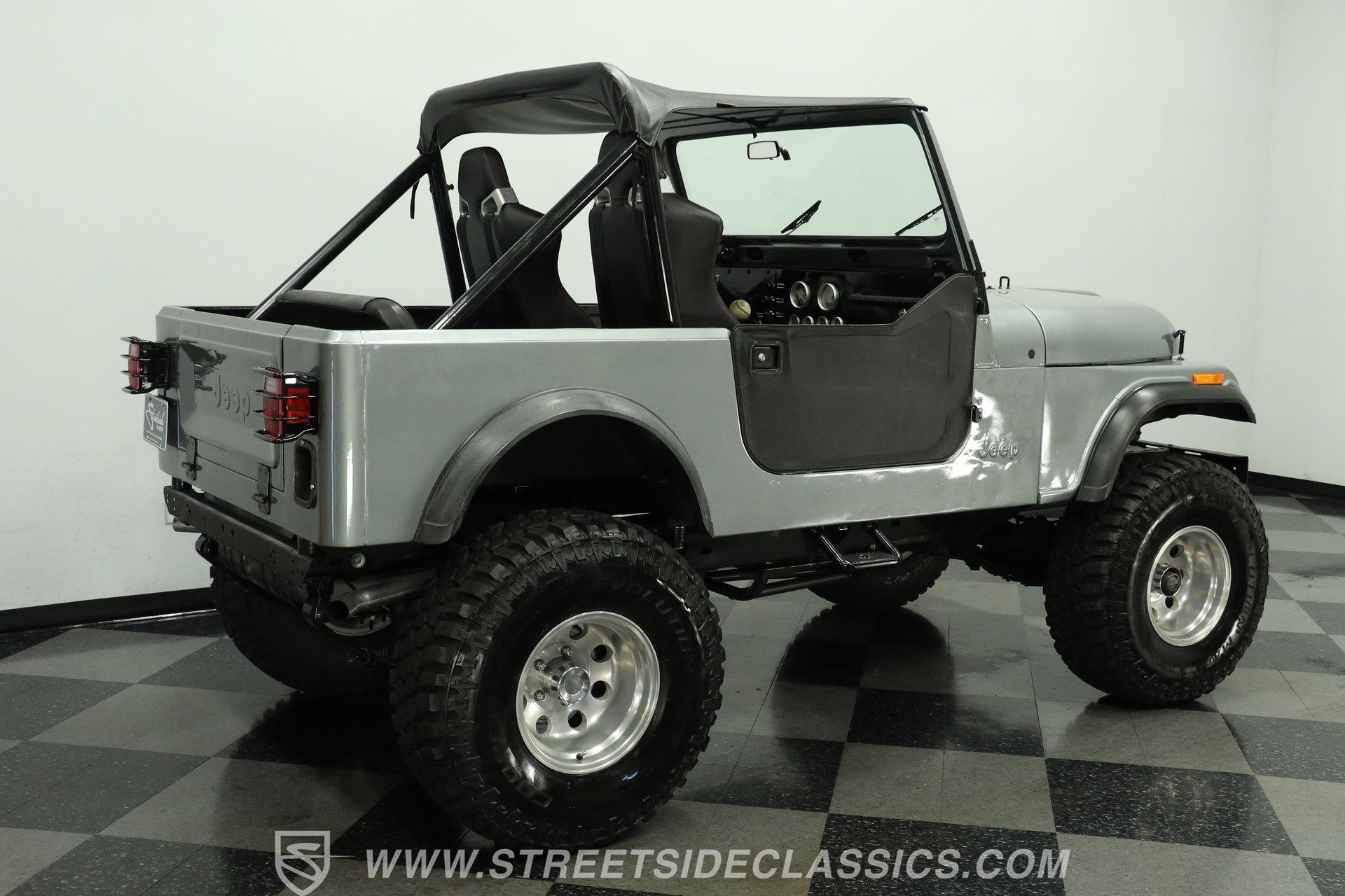 Silver, black, and ready for fun, this 1983 Jeep CJ7 V8 is built for whatever the road or trail throws its way. With a proper 4x4 setup and plenty of ground clearance, this CJ7 is ready to crawl over just about anything. Pair that capability with a high-performance V8, and you've got the recipe for adventure... or a little trouble... or maybe both. The exterior has the rugged look a CJ should have. Both the front and rear bumpers are solid, while the headlights, taillights, grille, and tailgate all present well. A soft bikini top and soft removable doors keep the Jeep true to its open-air roots, while an aftermarket Bully side step makes climbing in and out a bit easier.