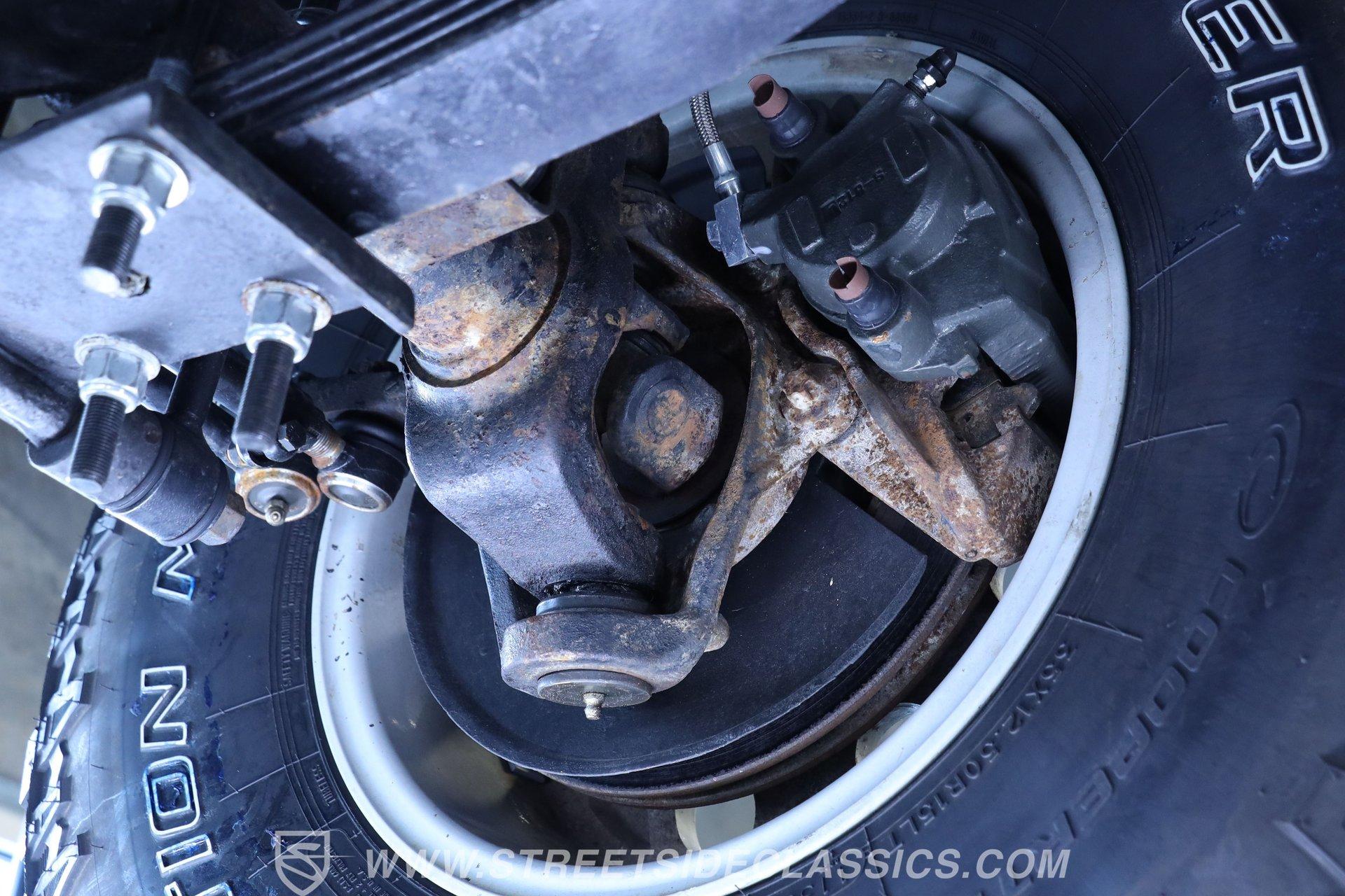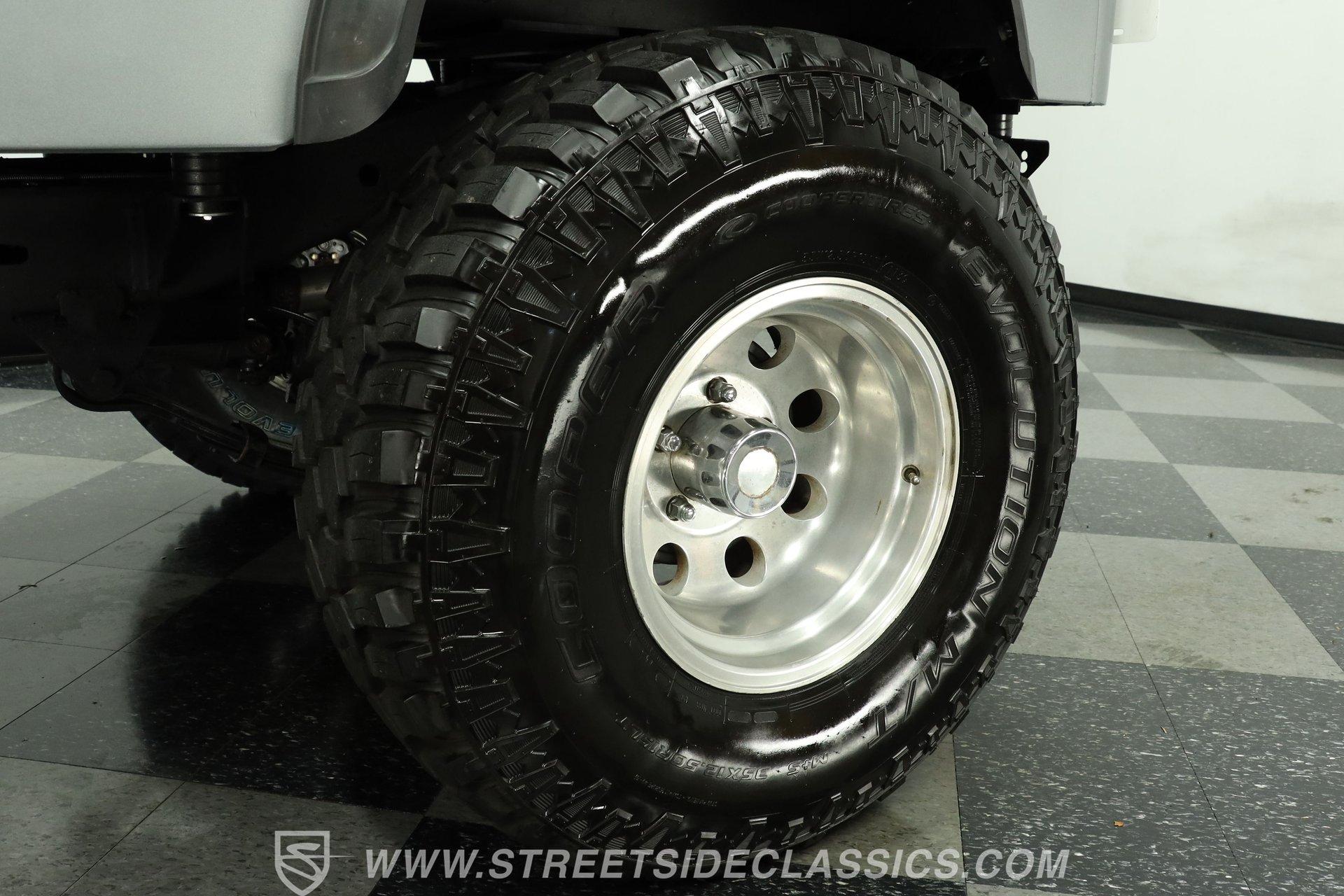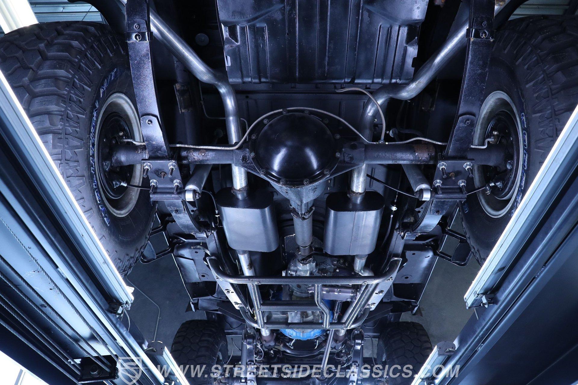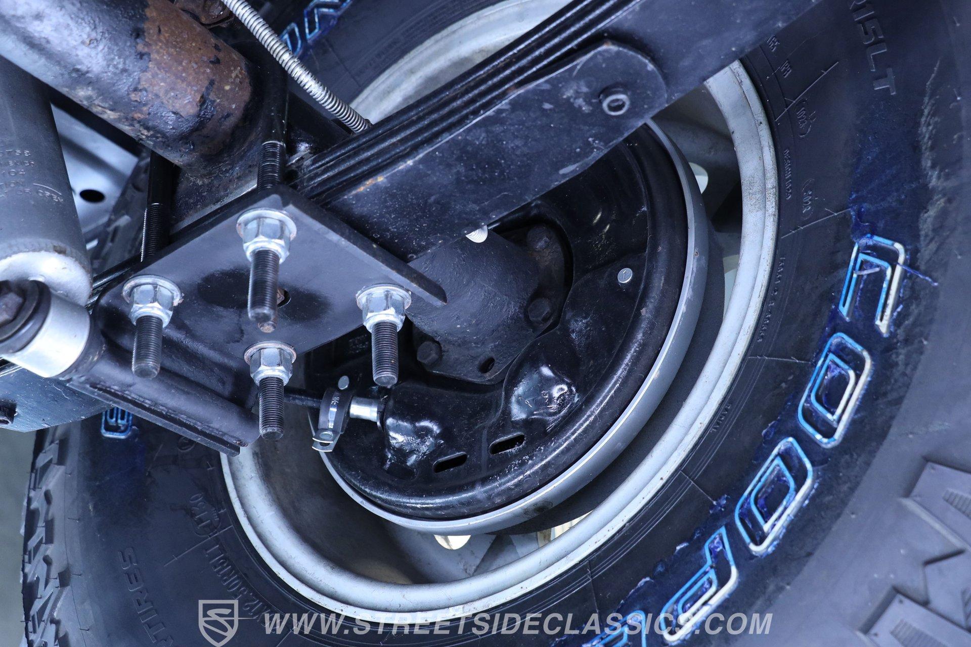 Under the hood is where this CJ7 really comes alive. Power comes from a stout 350 cubic-inch BluePrint V8 crate engine equipped with aluminum cylinder heads, a hydraulic roller camshaft, and a Holley Brawler 4-barrel carburetor. That power is sent through a Borg Warner 4-speed manual transmission to the rear axle-or both axles when 4x4 is engaged. The lifted stock-style suspension with manual locking hubs gives this Jeep both the stance and capability it deserves. Rolling on 15-inch wheels wrapped in aggressive 35x12.50R15LT tires, it has the look and traction to match the power. Stopping duties come from front power disc brakes and rear power drum brakes, while wrapped long-tube headers, dual exhaust, and Flowmaster mufflers provide the unmistakable Jeep V8 soundtrack.