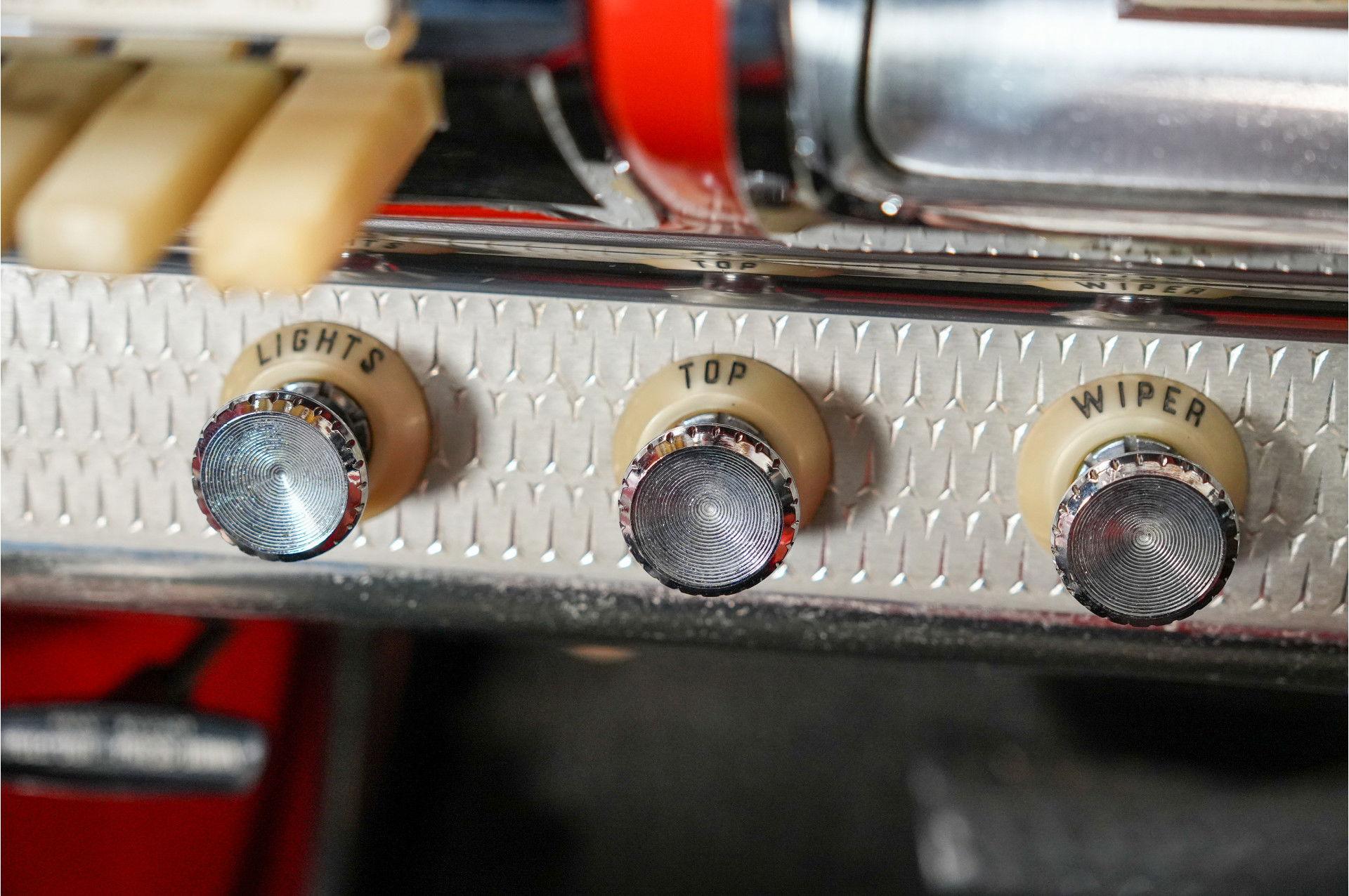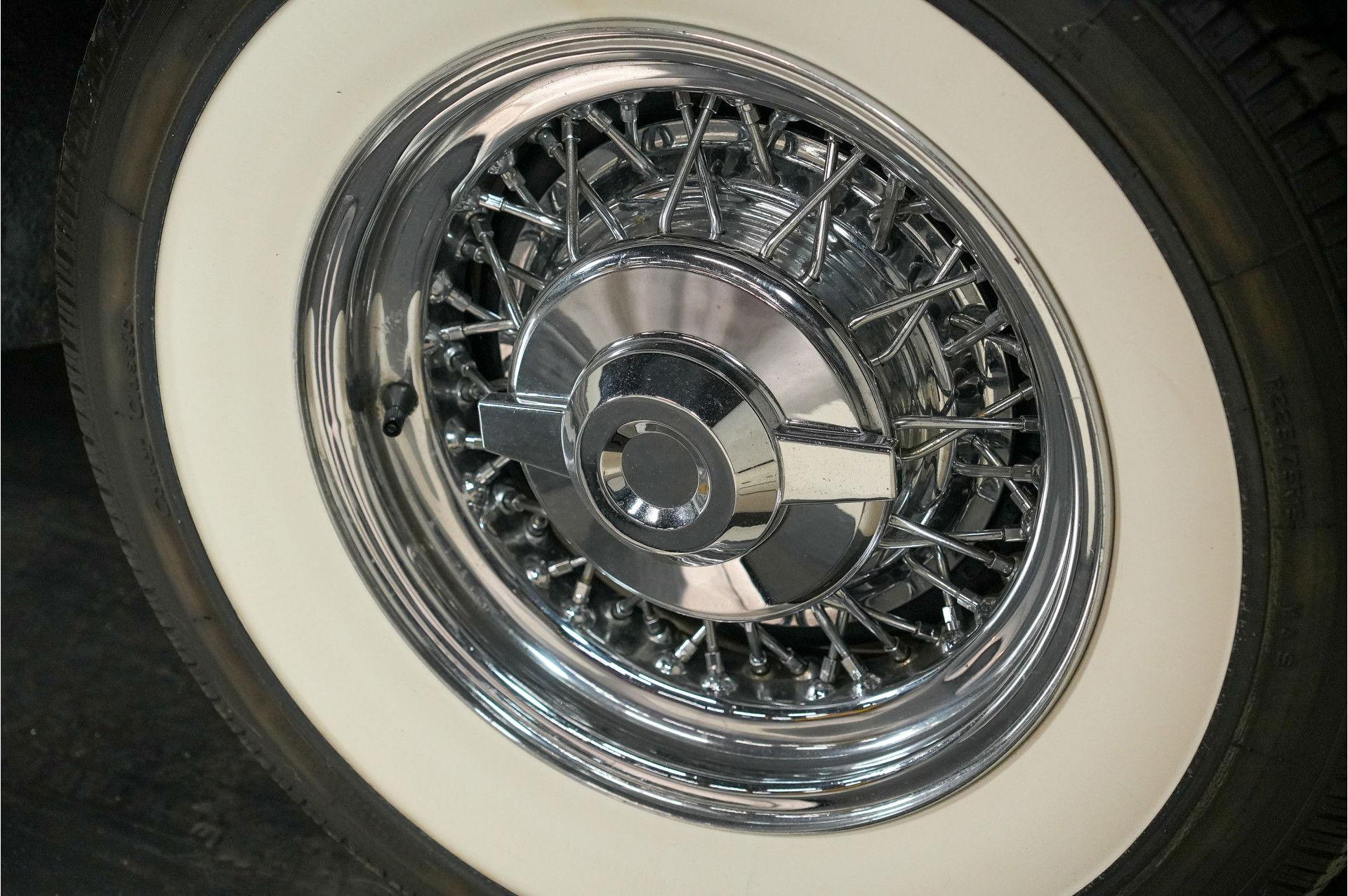 The car was found by its owner in the late 80s, but only needed to be made roadworthy because it was still in perfect condition. The many details immediately caught the eye, such as the wing mirrors, the freestanding gauges on the dashboard, and the hood handle integrated into the chrome trim. The gearshift knobs for the Torque-Flite automatic transmission are also distinctive. Furthermore, there's a flood of striking color combinations. The hood is, of course, electrically operated, and not to forget the Square Wheel, the transparent oval steering wheel that was an option at the time and cost around $1.000.