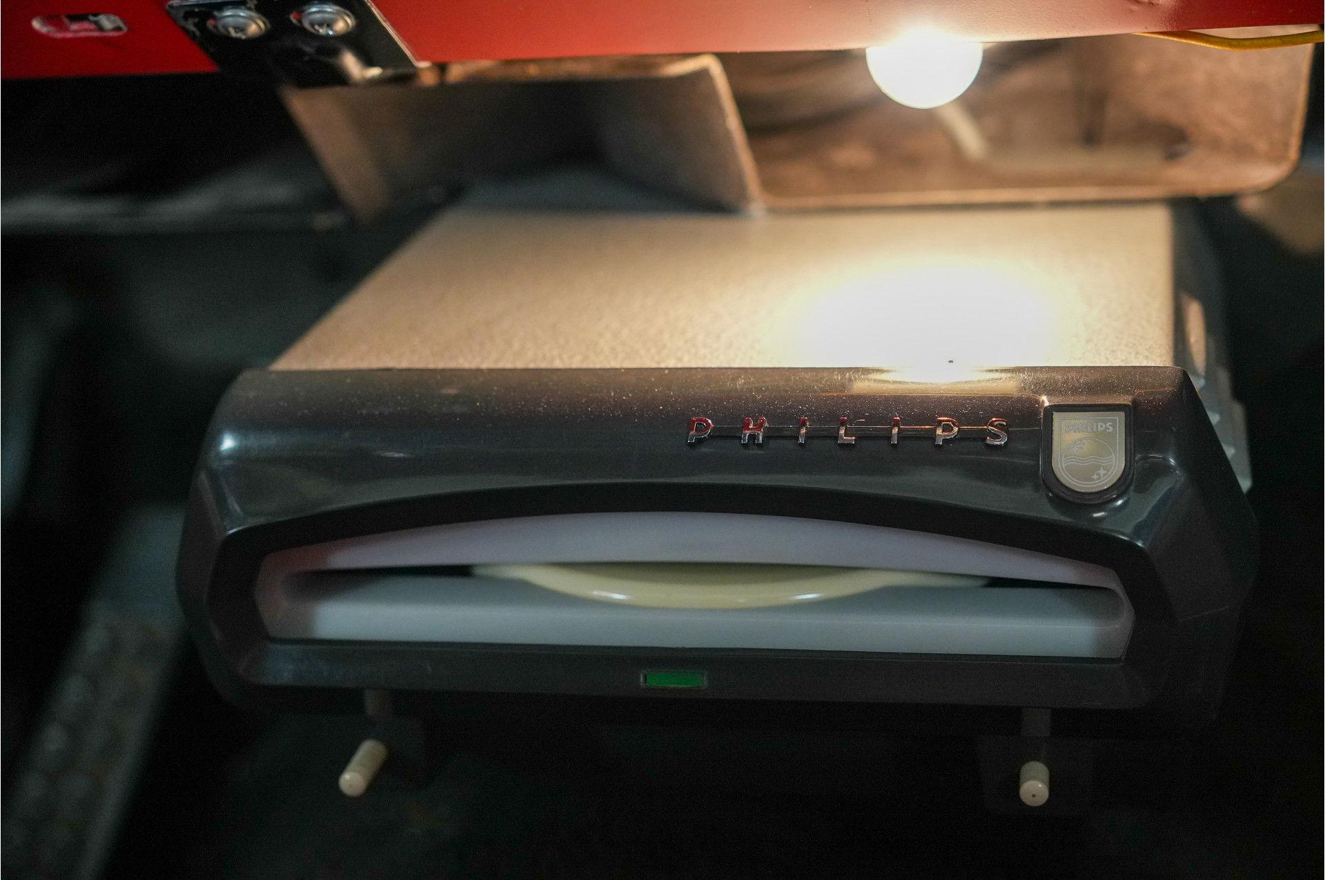The car's beautiful front end features dual headlights with slanted eyebrows, encased in anodized aluminum. At the rear, the iconic Microphone Taillights stand out. The list of unique features goes on and on. The Philips record player, along with a tray of Elvis records, is also quite special. Only 6.948 Furys were produced, and this one, supplied by the Dutch firm Zoet, was one of the few shipped directly to the Netherlands.