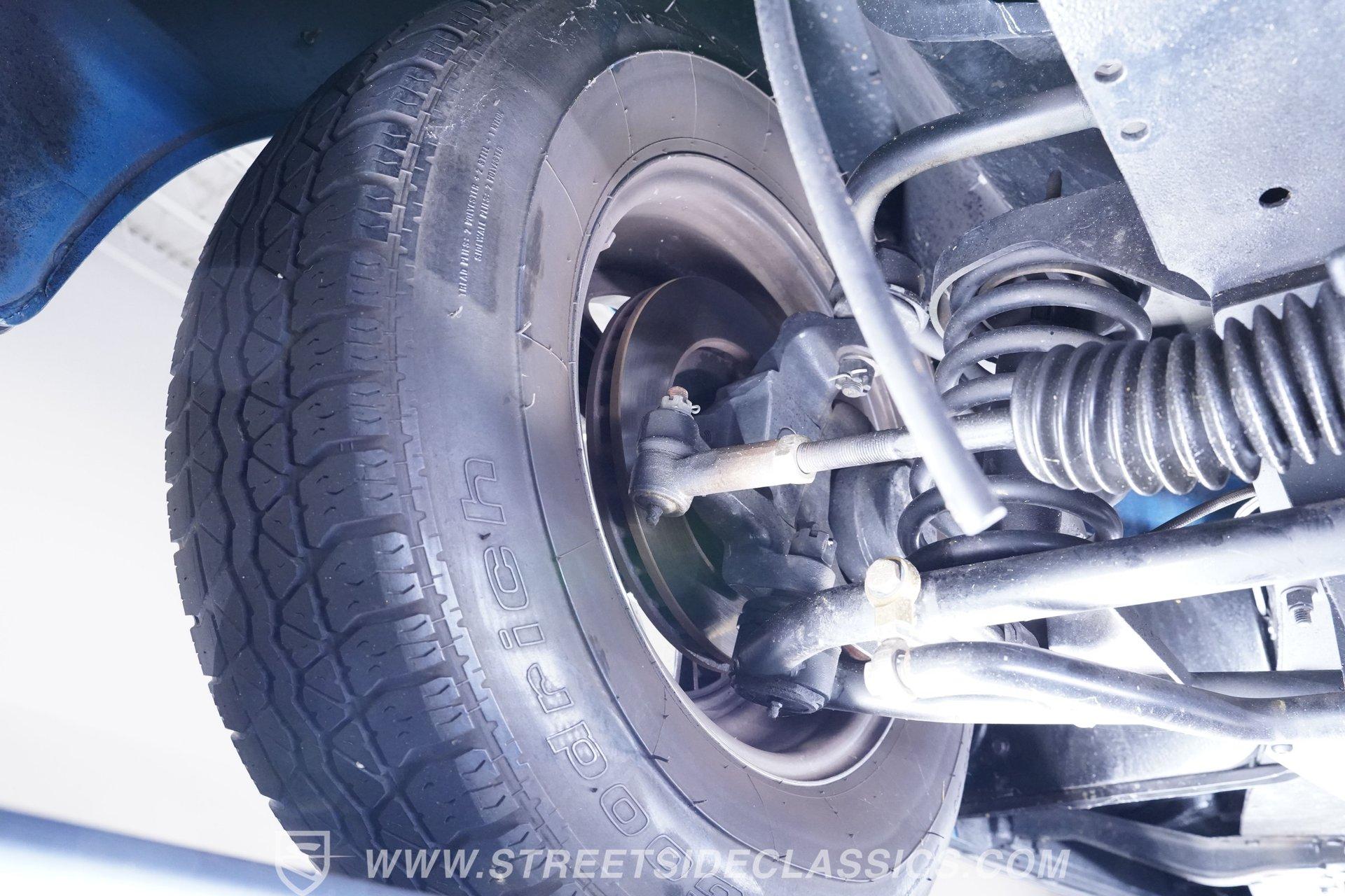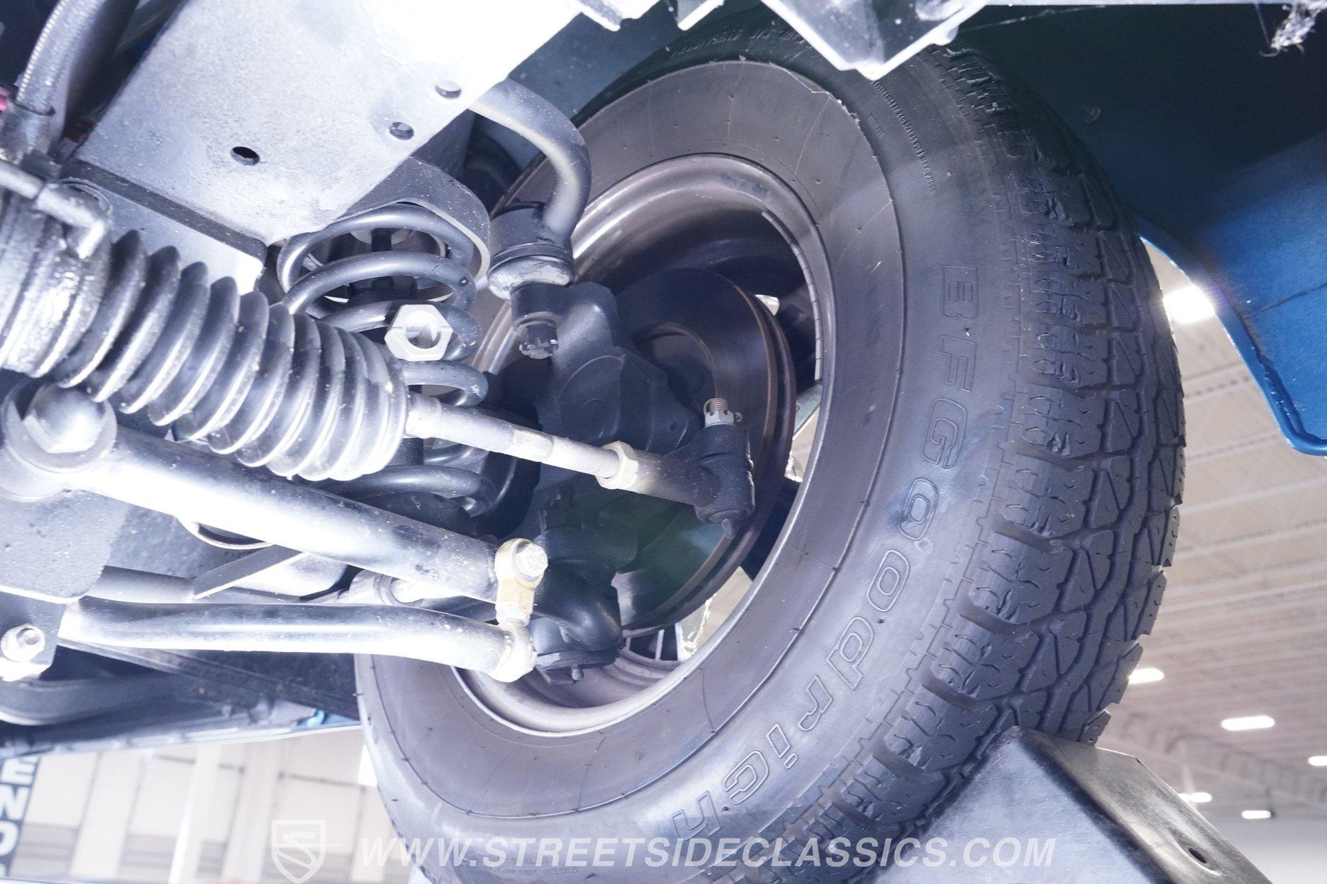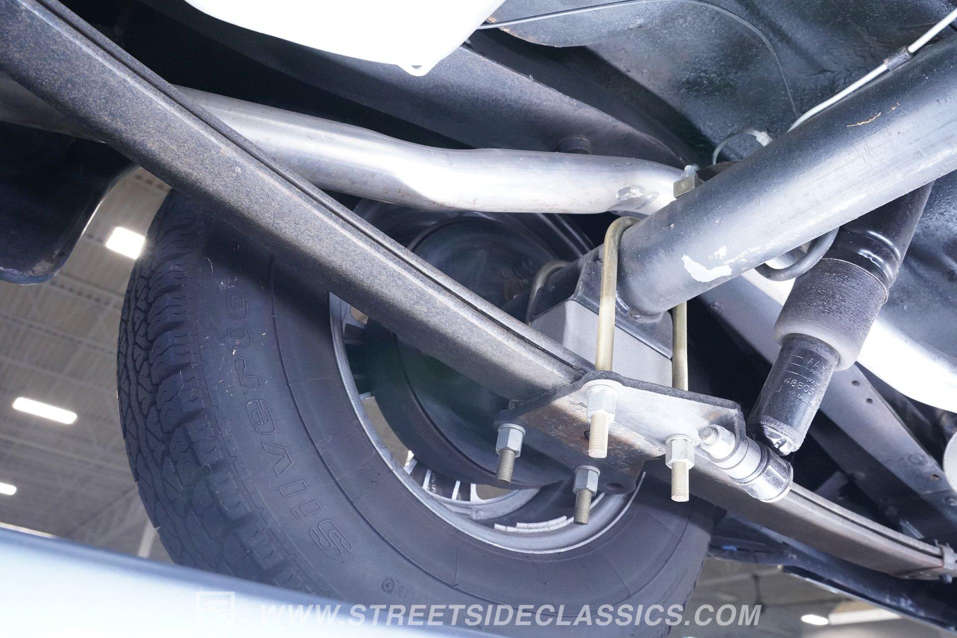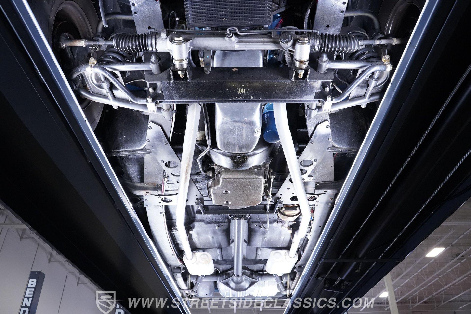 The suspension has also been upgraded for improved drivability. Up front is a Mustang II-style suspension featuring tubular A-arms, coil springs, a sway bar, and rack and pinion steering. In the rear, leaf springs, air shocks, and lowering blocks help achieve the right stance. At all four corners are 15-inch chrome Cragar wheels wrapped in 205/75R15 tires. Braking is handled by front power disc brakes. Exhaust duties are managed by shorty headers feeding into dual exhaust with Flowmaster mufflers.
