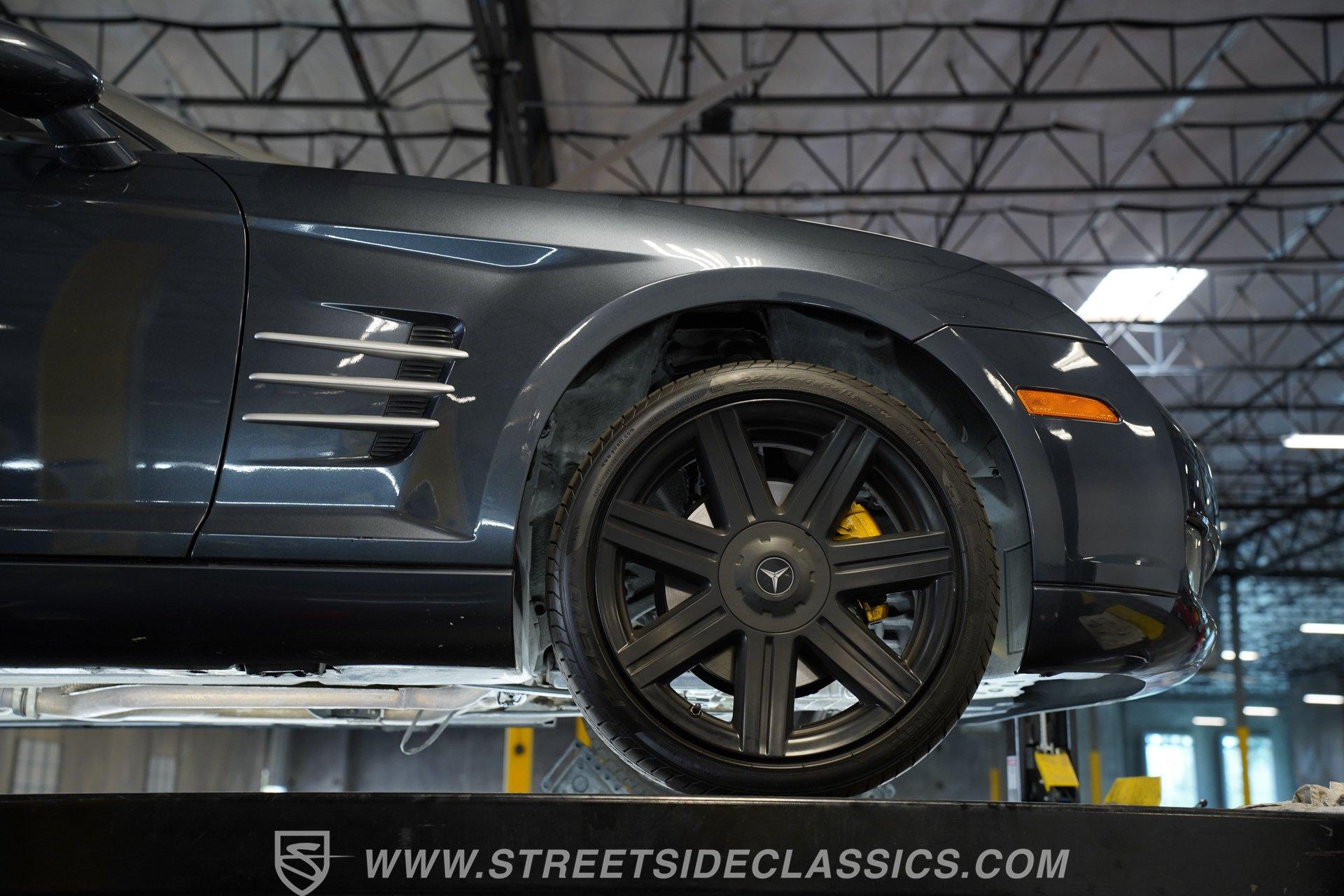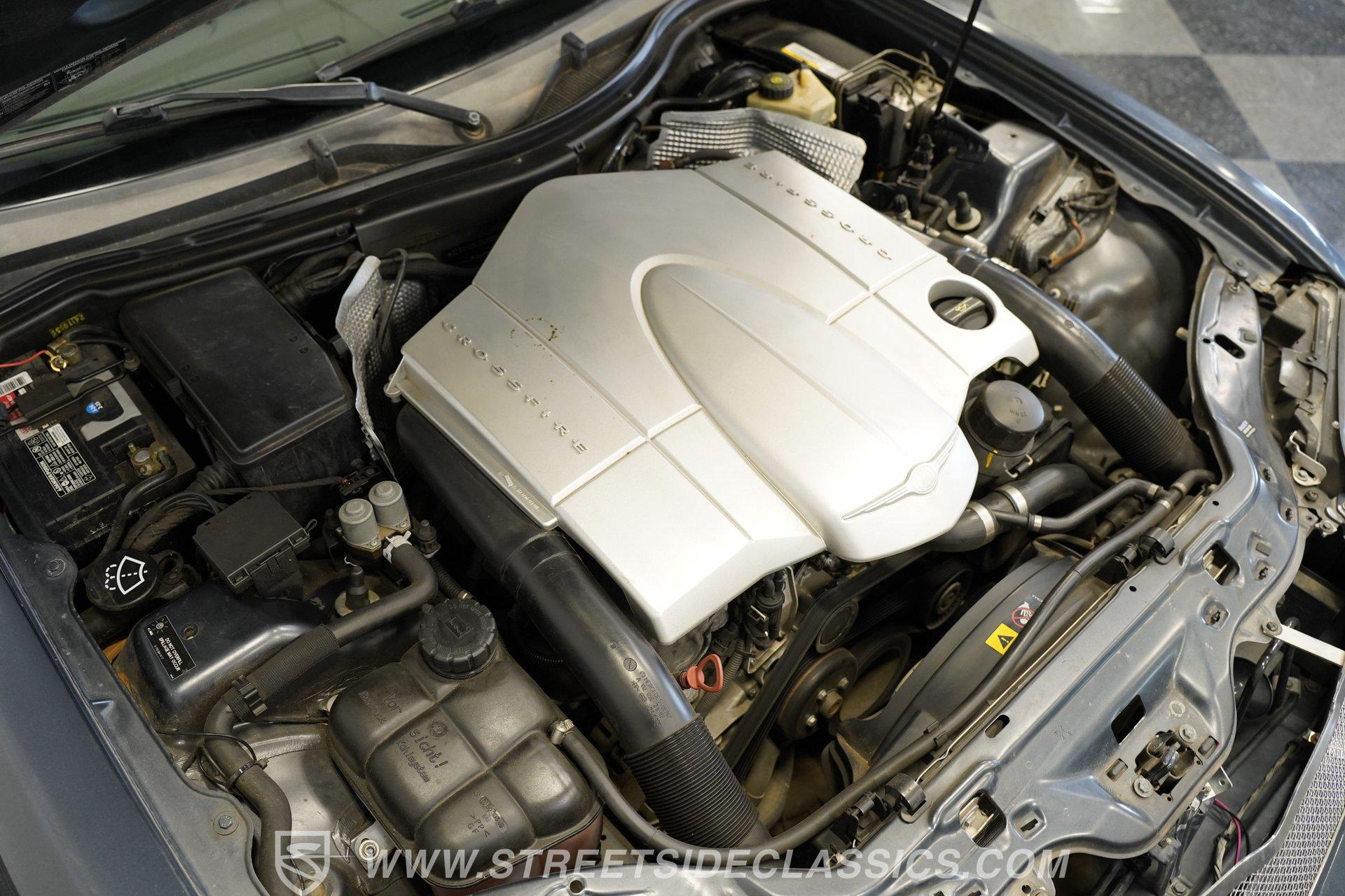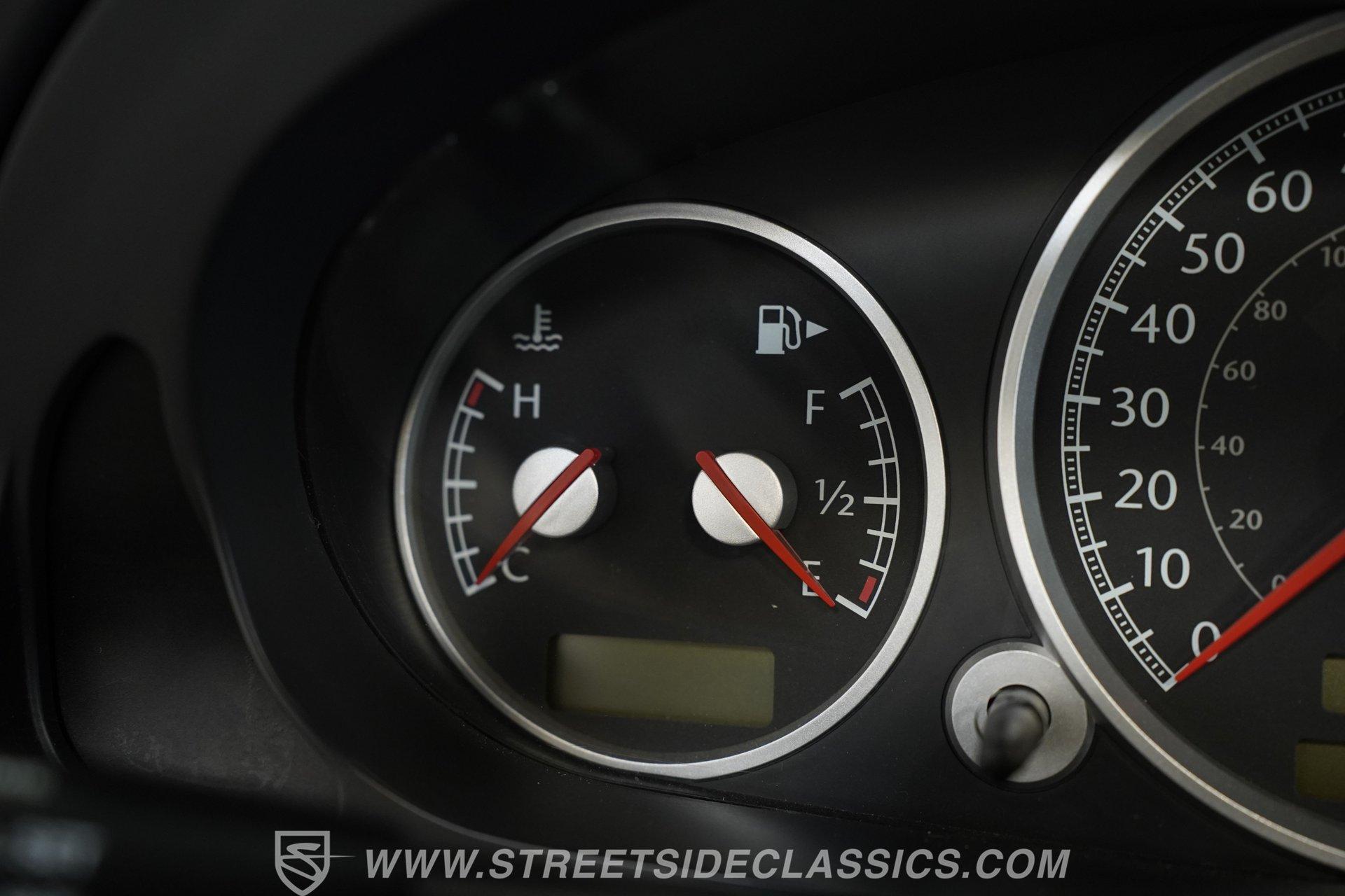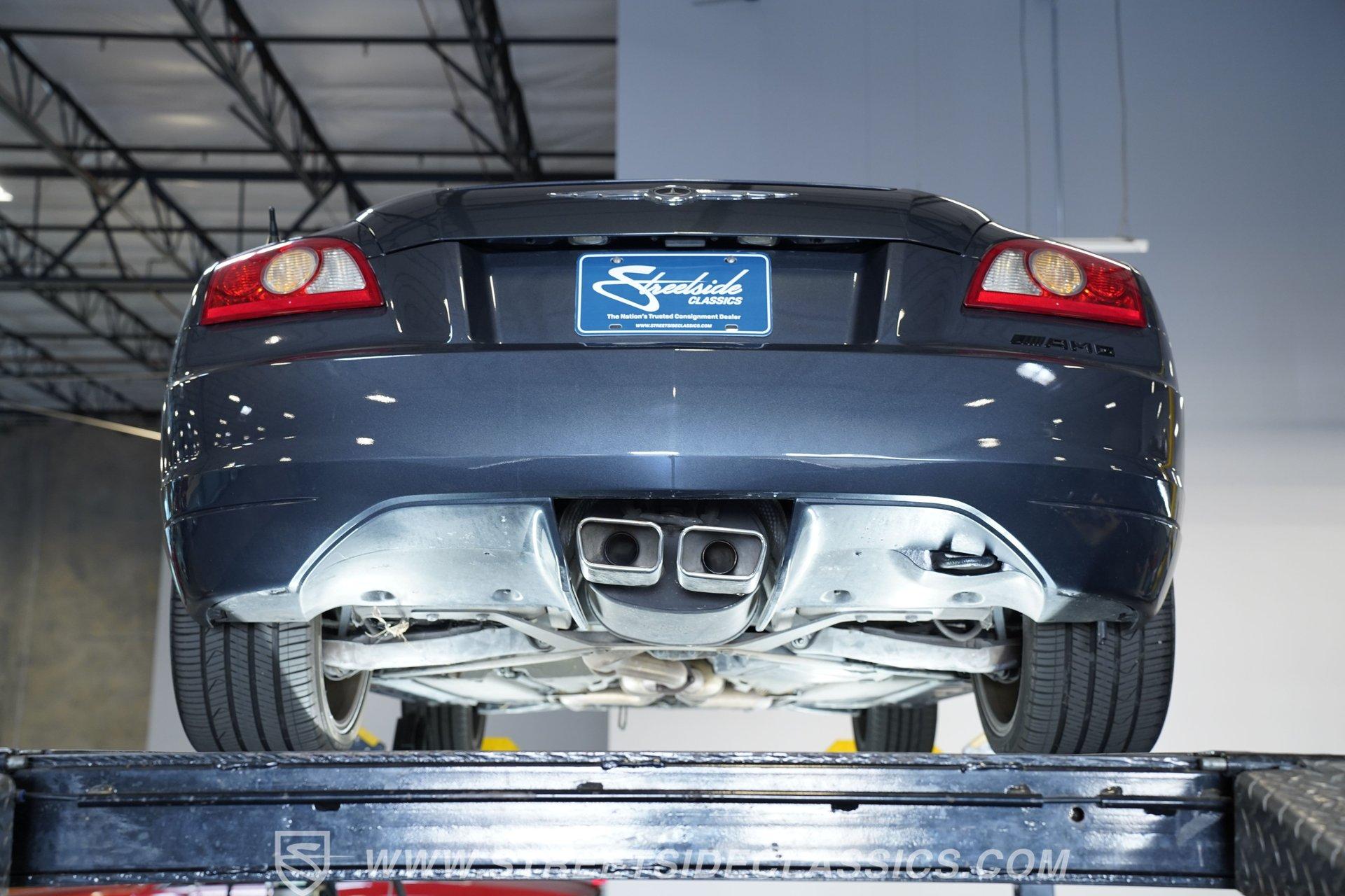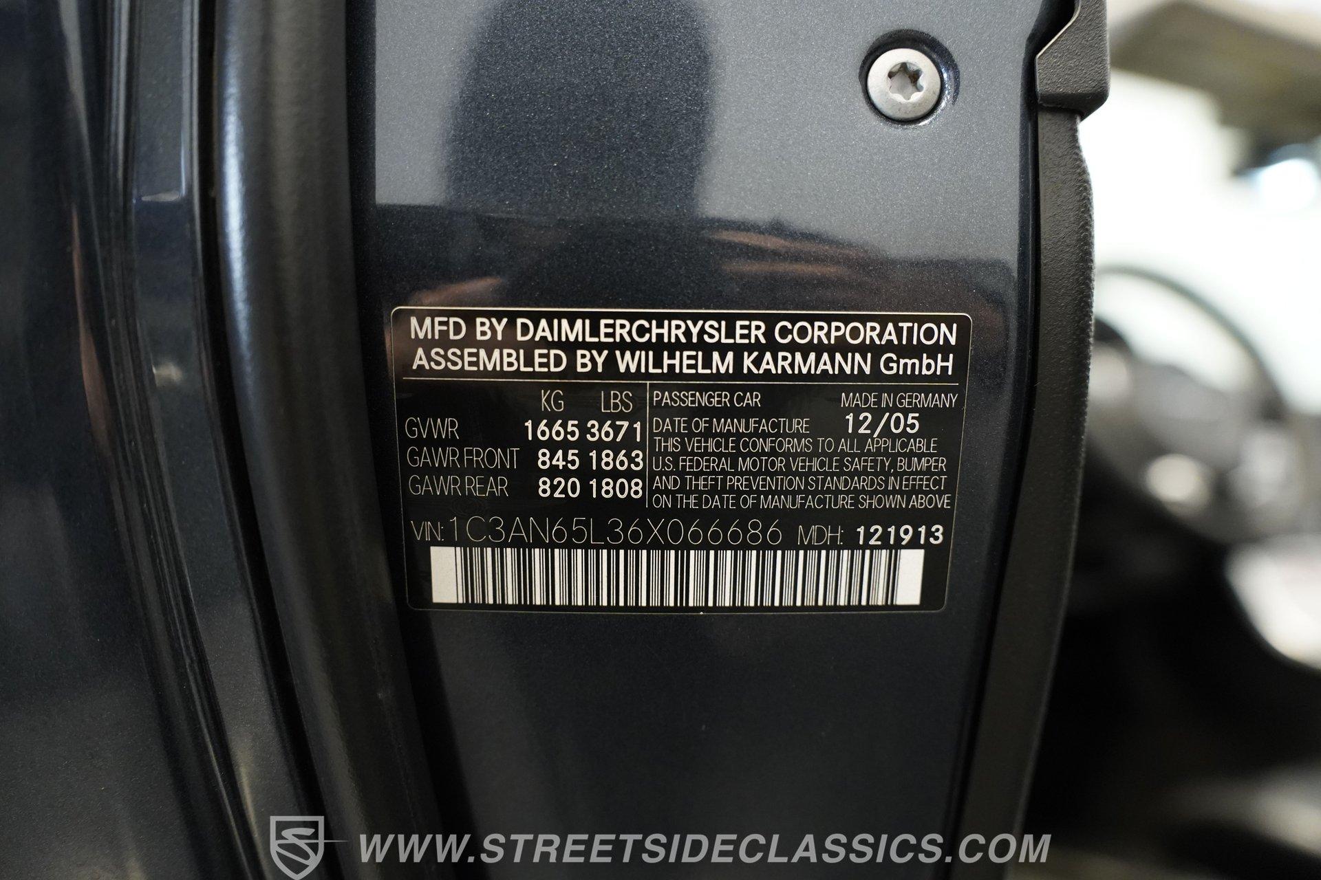 Convertible fun at a great price, this 2006 Chrysler Crossfire Limited Roadster does not disappoint. Finished in gray with a machine-gray clear coat, this sleek roadster is accented by black wheels, yellow brake calipers, and dual exhaust for a sporty look wherever you go. There isn't much brightwork on this car, but what is present shows nicely. The headlights, taillights, and grille are all in good condition, and the window seals and weather stripping appear solid. The doors and hood open and close easily, and the body panels look straight with even gaps throughout.