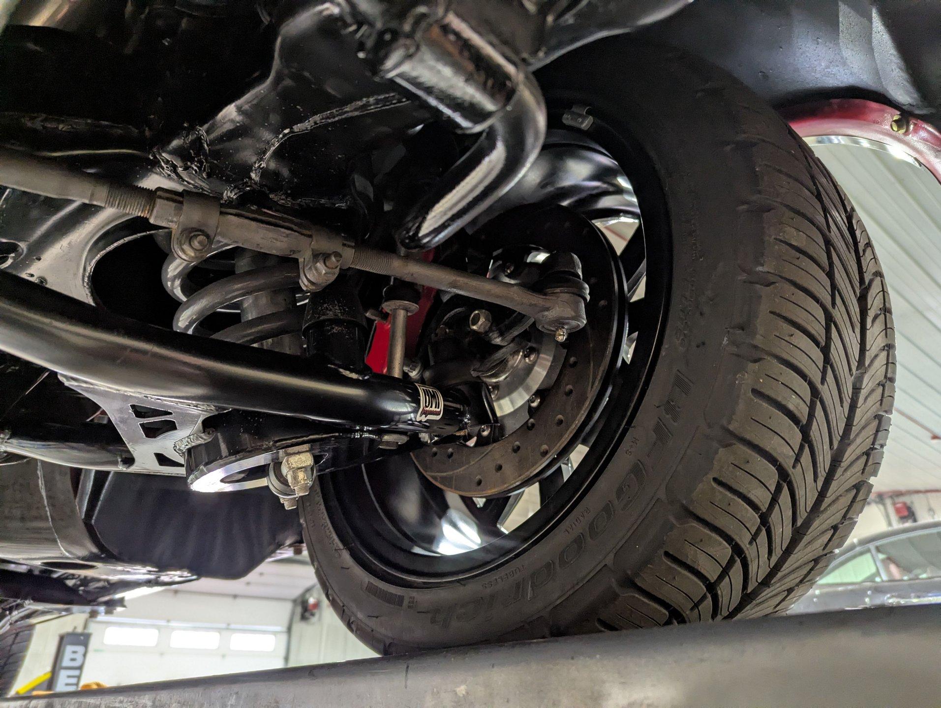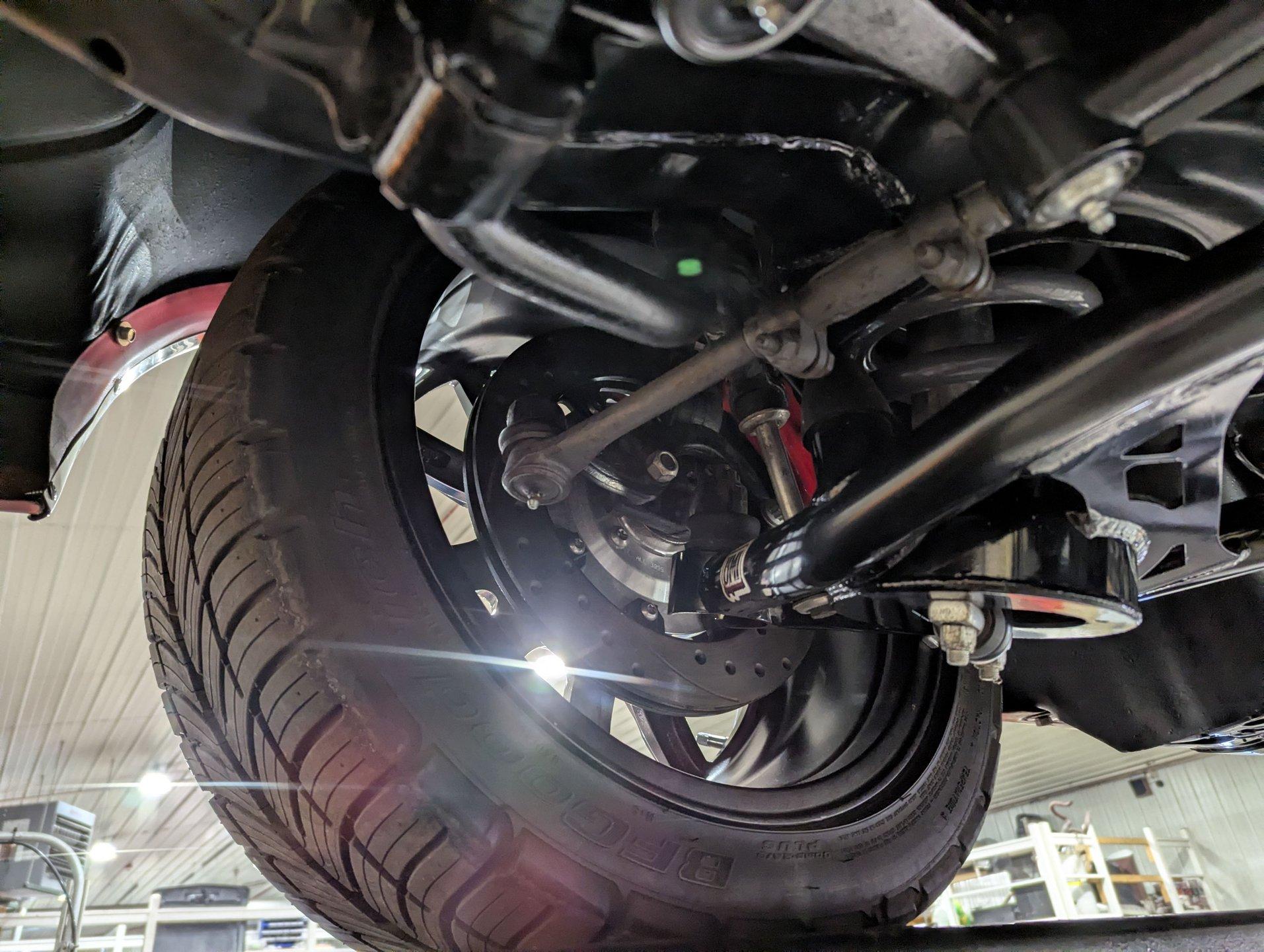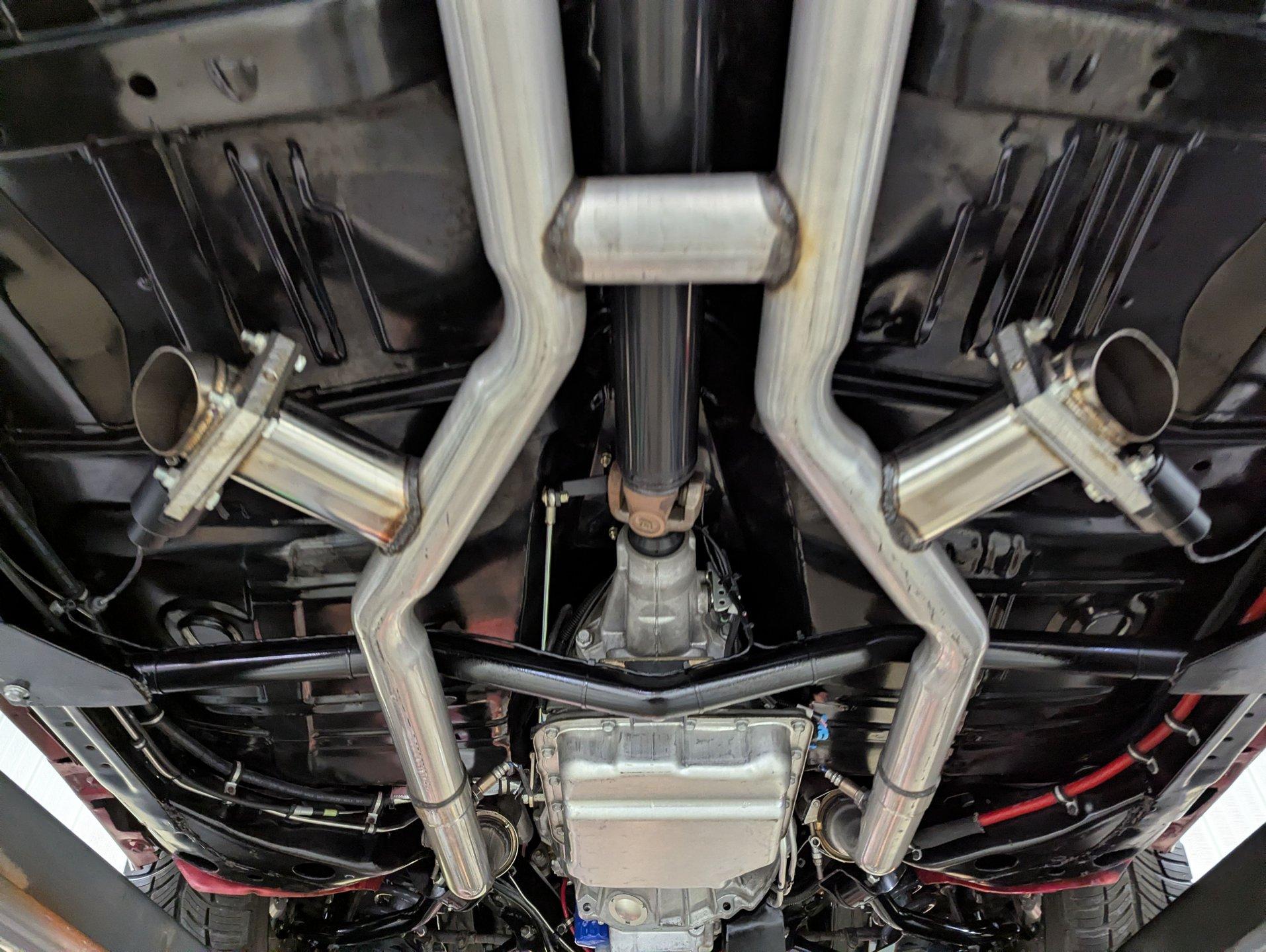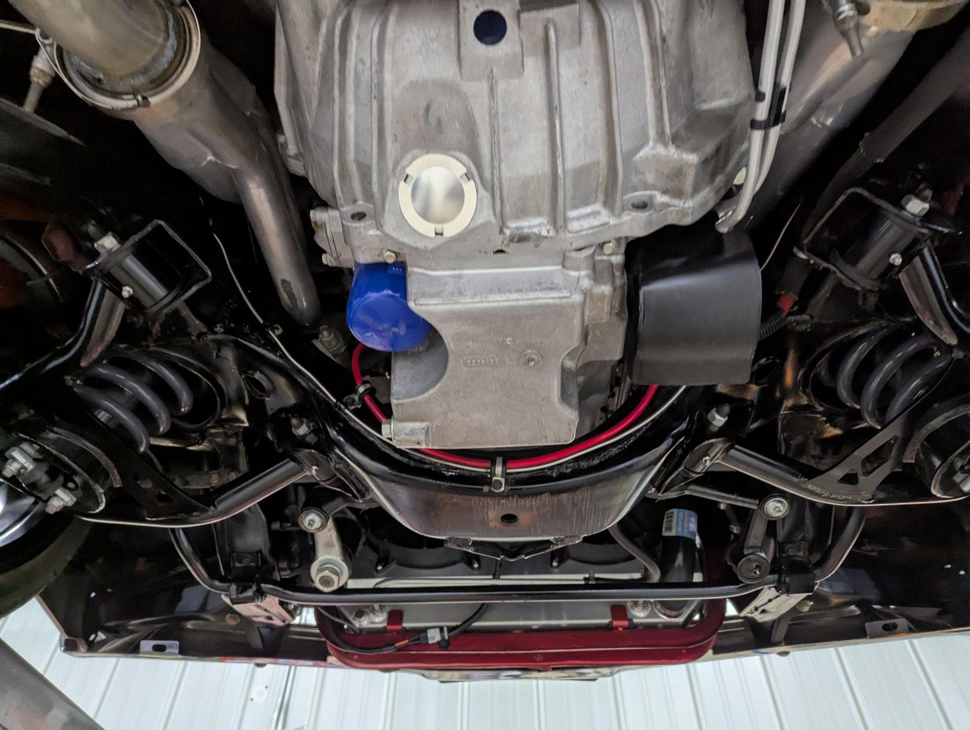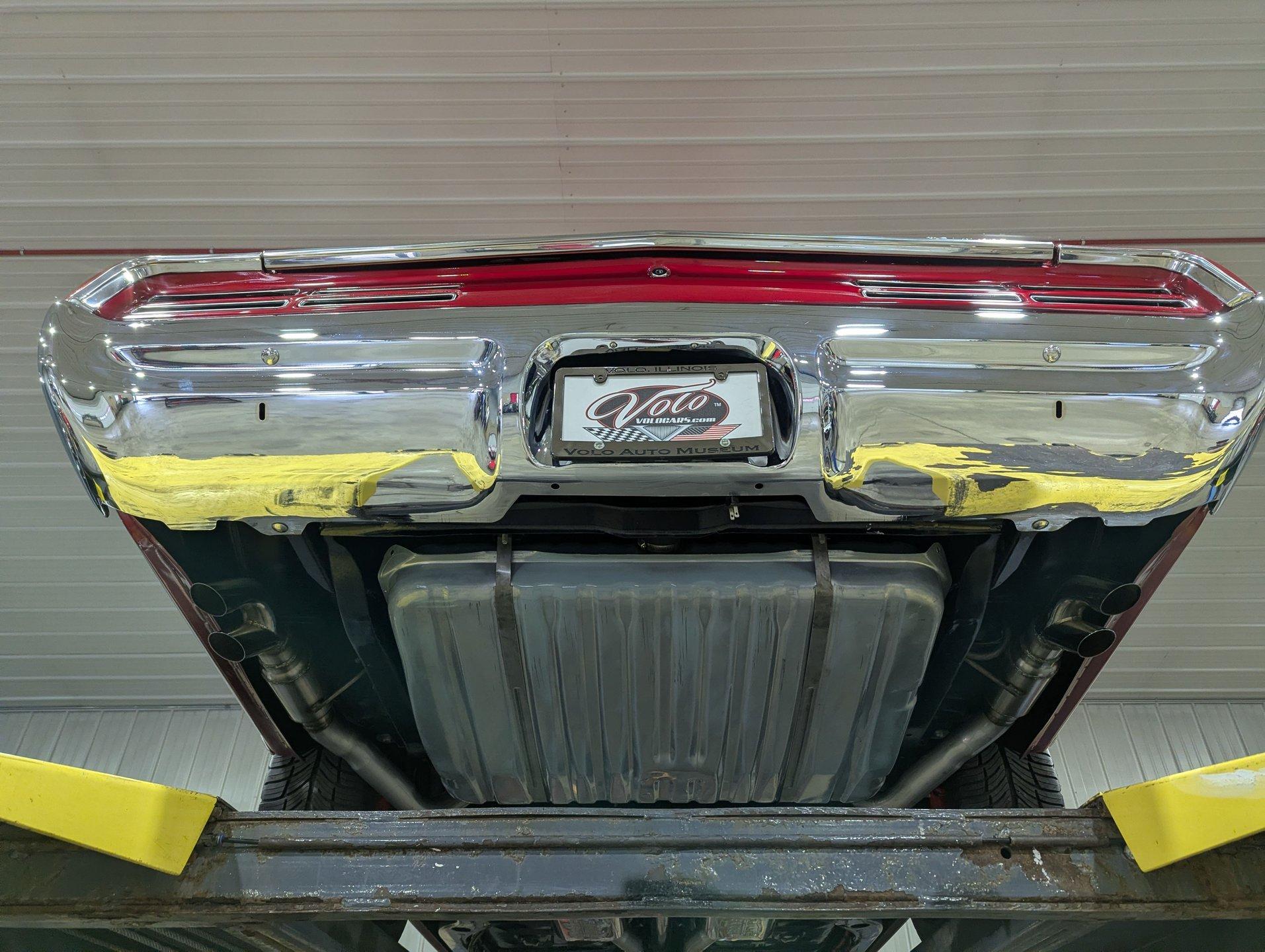 UNDERSIDE: The body was removed from the frame and placed on a rotisserie, allowing the underside to be upgraded, restored and detailed. The floors are pristine metal, finished in a smooth gloss black finish. The frame has been boxed, prepped, and powder coated for added strength and durability. All of the steering and suspension components are new. Up front, it's upgraded with UMI tubular control arms, QA1 lowering springs, and QA1 gas shocks. In the rear, it features QA1 control arms, lowering springs, gas shocks, and a swaybar for improved stability and handling. Stopping power comes from a Wilwood brake system with disc brakes at all four wheels and stainless steel lines for a clean, reliable setup. The custom dual exhaust system is equally impressive, equipped with QTP stainless electric cutouts, polished stainless Borla S-Type mufflers, resonators, and the popular GTO splitter tips-delivering an aggressive tone when you want it and a refined note when you don't. The fuel system is completely new and upgraded to support the fuel-injected engine. Looking up at the motor, you'll see aluminum components and a high-torque starter. A 4L65E overdrive automatic transmission sends power through a rebuilt driveshaft to a 12-bolt rear end featuring a Moser Muscle Pack with 3.73 posi gears. The entire underside reflects the same level of quality and attention to detail as the top side-clean, purposeful, and built to perform.