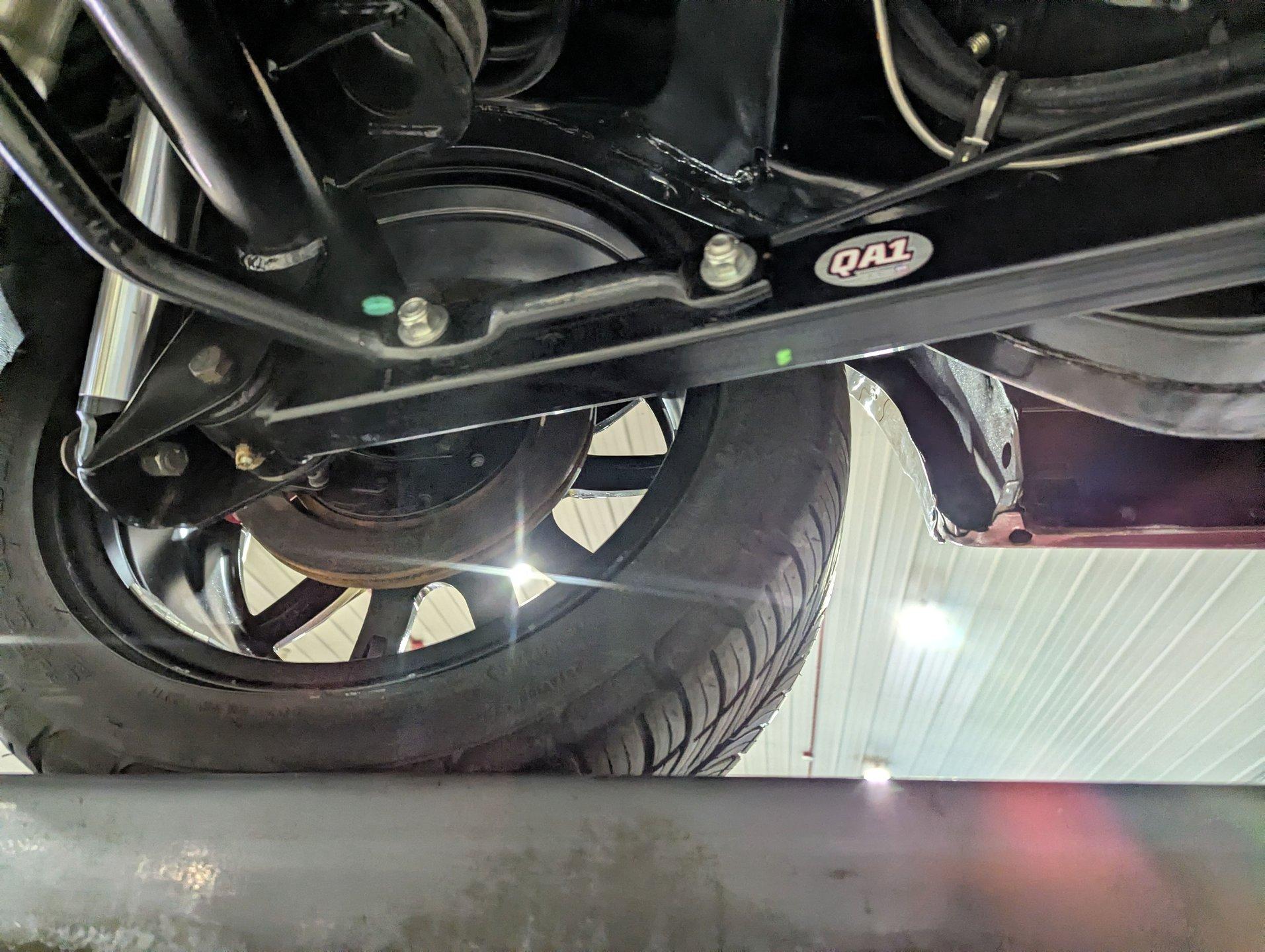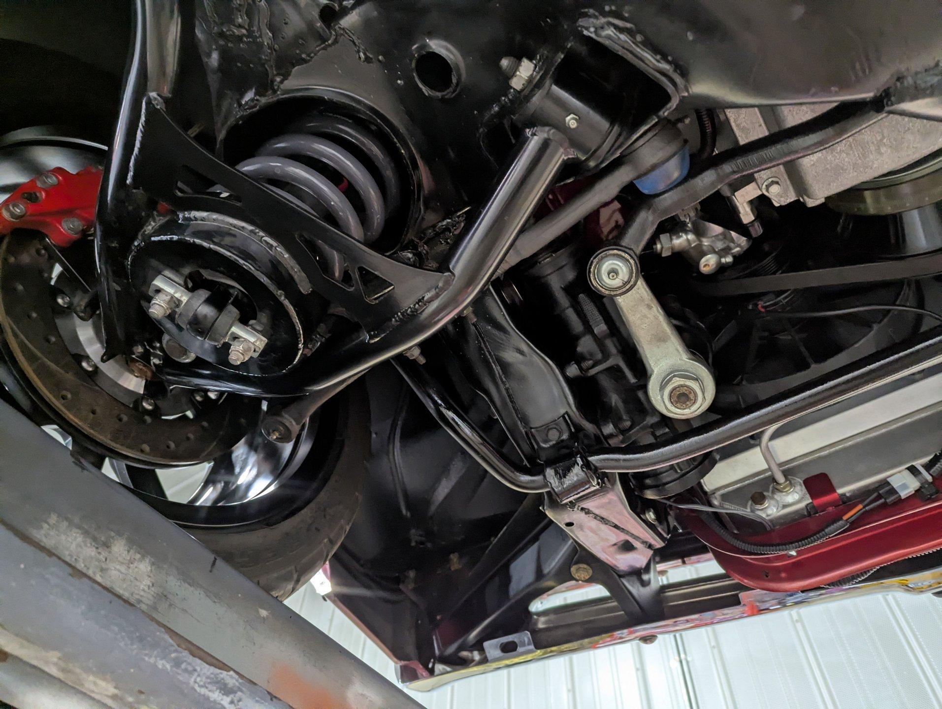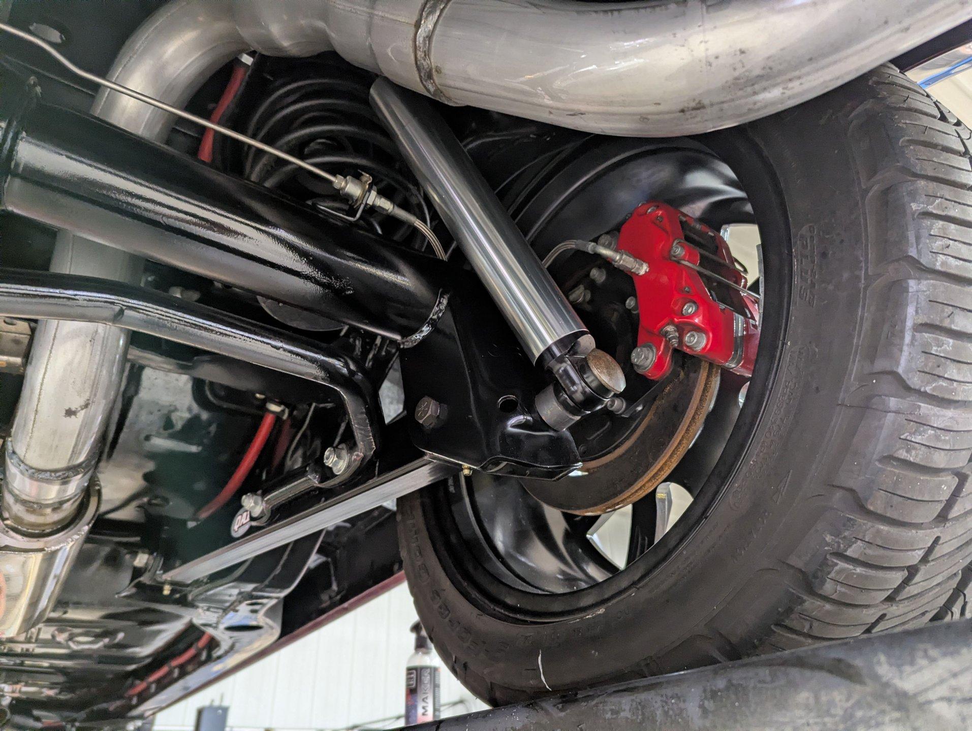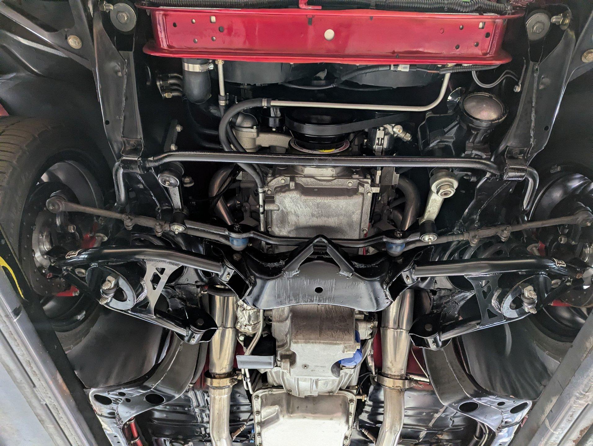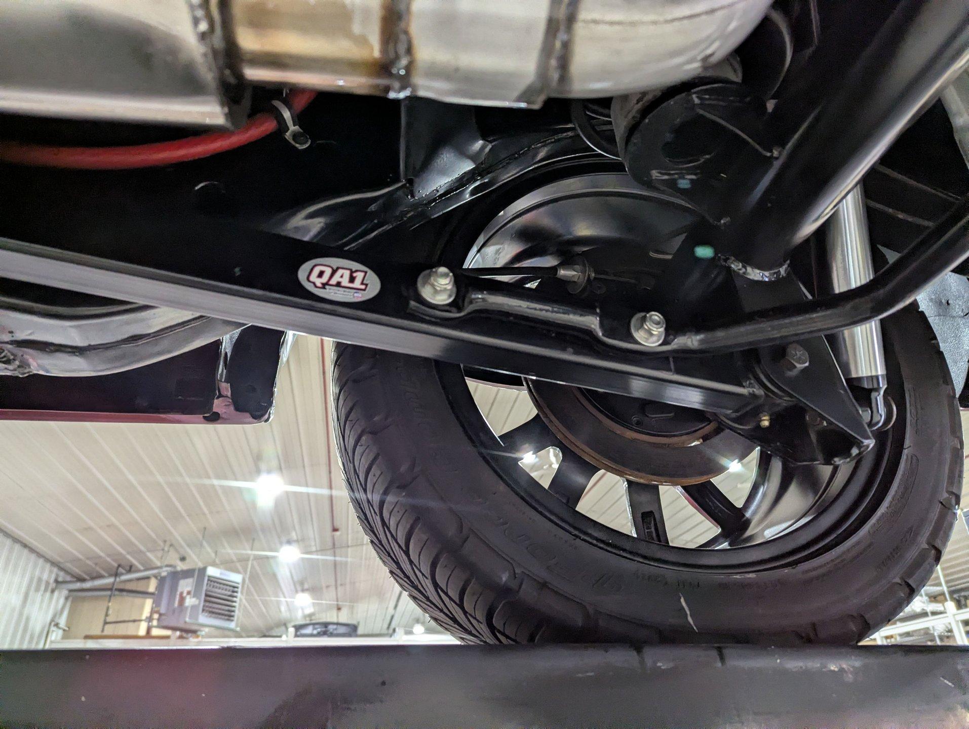 UNDERSIDE: The body was removed from the frame and placed on a rotisserie, allowing the underside to be upgraded, restored and detailed. The floors are pristine metal, finished in a smooth gloss black finish. The frame has been boxed, prepped, and powder coated for added strength and durability. All of the steering and suspension components are new. Up front, it's upgraded with UMI tubular control arms, QA1 lowering springs, and QA1 gas shocks. In the rear, it features QA1 control arms, lowering springs, gas shocks, and a swaybar for improved stability and handling. Stopping power comes from a Wilwood brake system with disc brakes at all four wheels and stainless steel lines for a clean, reliable setup. The custom dual exhaust system is equally impressive, equipped with QTP stainless electric cutouts, polished stainless Borla S-Type mufflers, resonators, and the popular GTO splitter tips-delivering an aggressive tone when you want it and a refined note when you don't. The fuel system is completely new and upgraded to support the fuel-injected engine. Looking up at the motor, you'll see aluminum components and a high-torque starter. A 4L65E overdrive automatic transmission sends power through a rebuilt driveshaft to a 12-bolt rear end featuring a Moser Muscle Pack with 3.73 posi gears. The entire underside reflects the same level of quality and attention to detail as the top side-clean, purposeful, and built to perform.