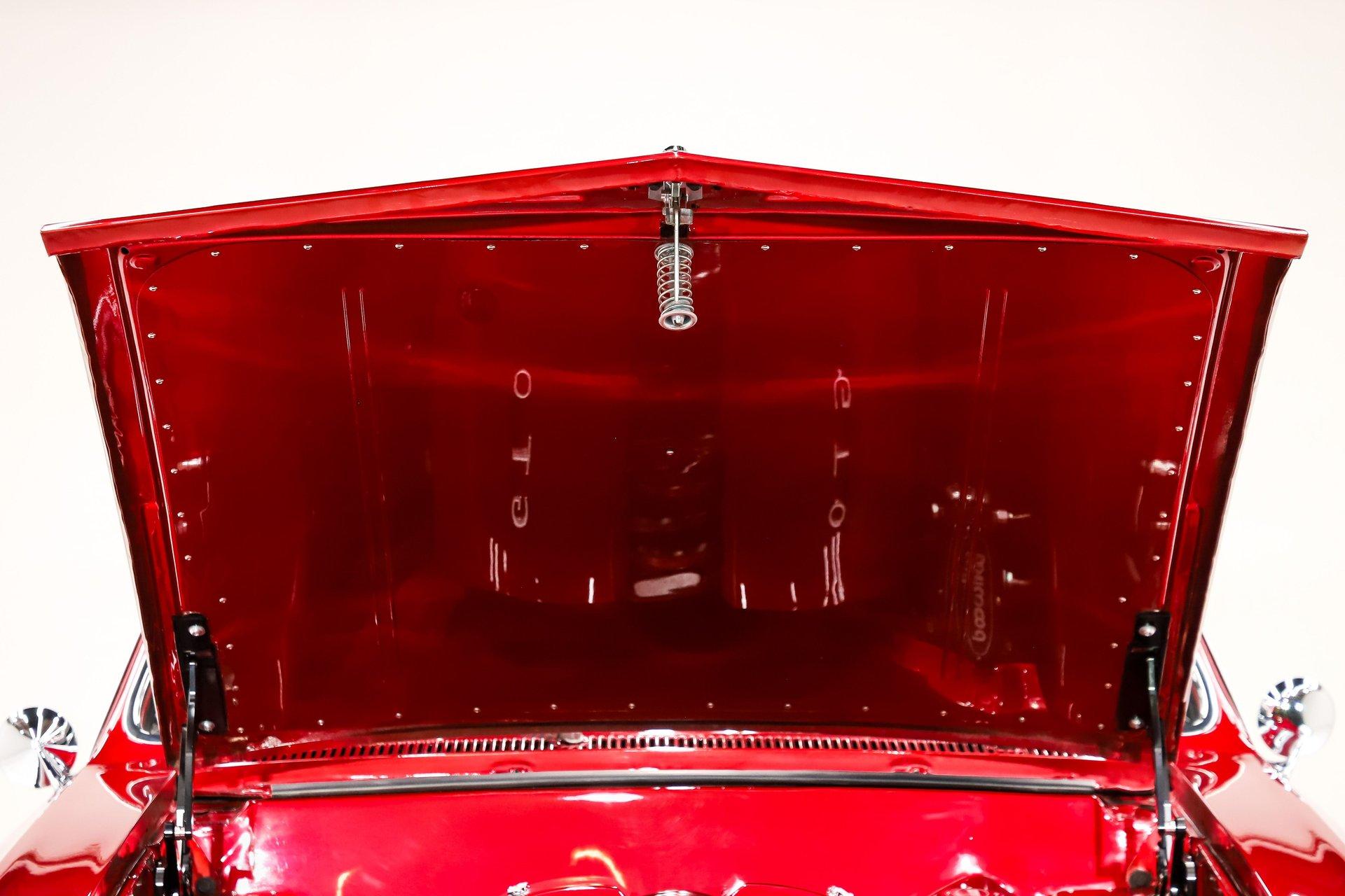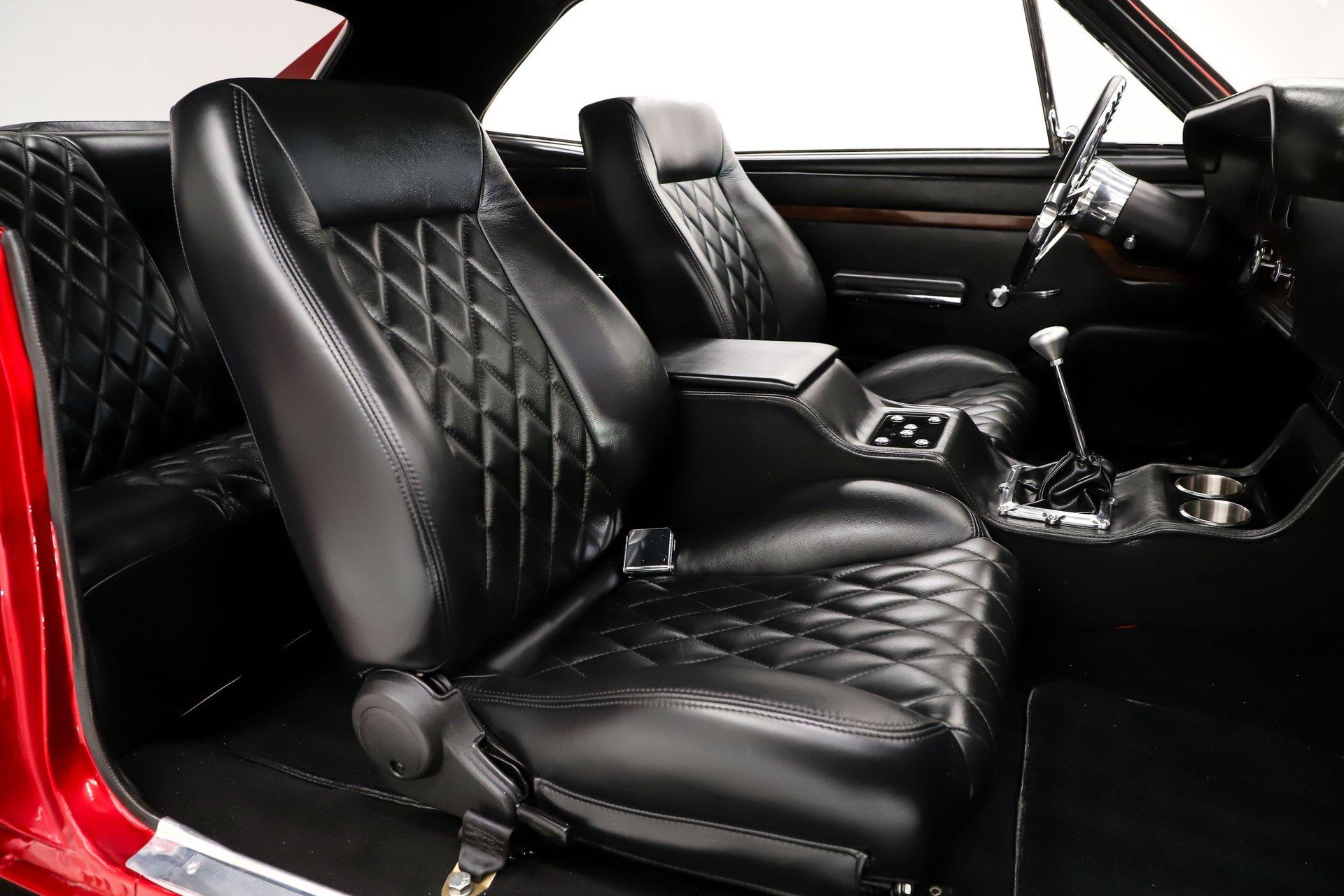 EXTERIOR: It is gorgeous! The body was completely chemical stripped and is rust free from top to bottom. It's finished in a stunning burgundy metallic base coat topped with a mid pearl coat and Diamond premium clear, giving it incredible depth and gloss. All of the glass has been replaced with new smoked glass. Lighting has been upgraded with LED headlights and very cool digital sequential LED taillights. The stance is finished off with Riddler satin black wheels with brushed aluminum accents, wrapped in 17-inch BFGoodrich G-Force tires.