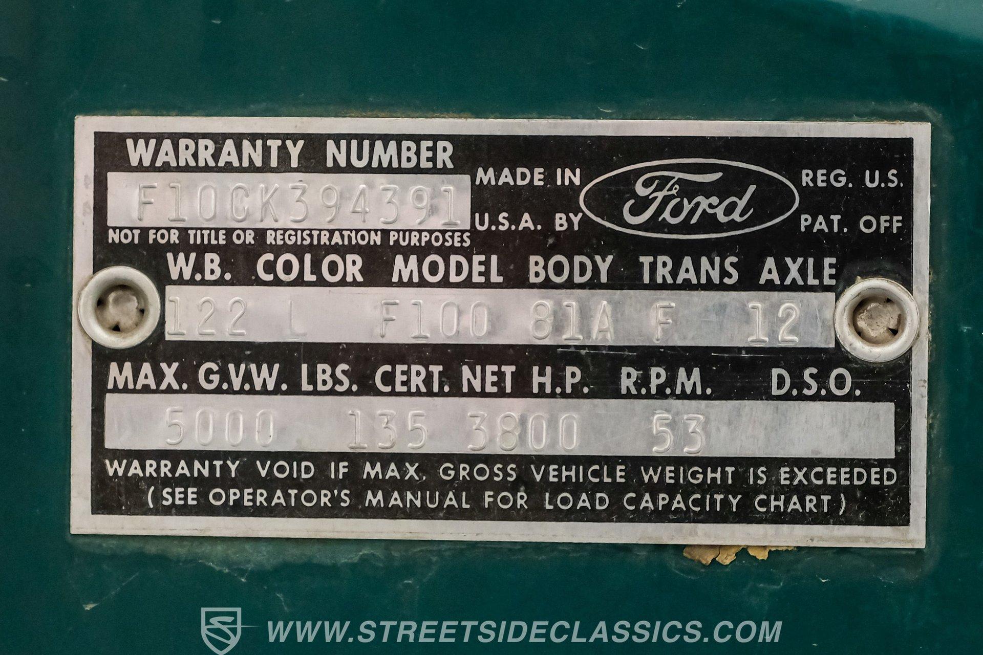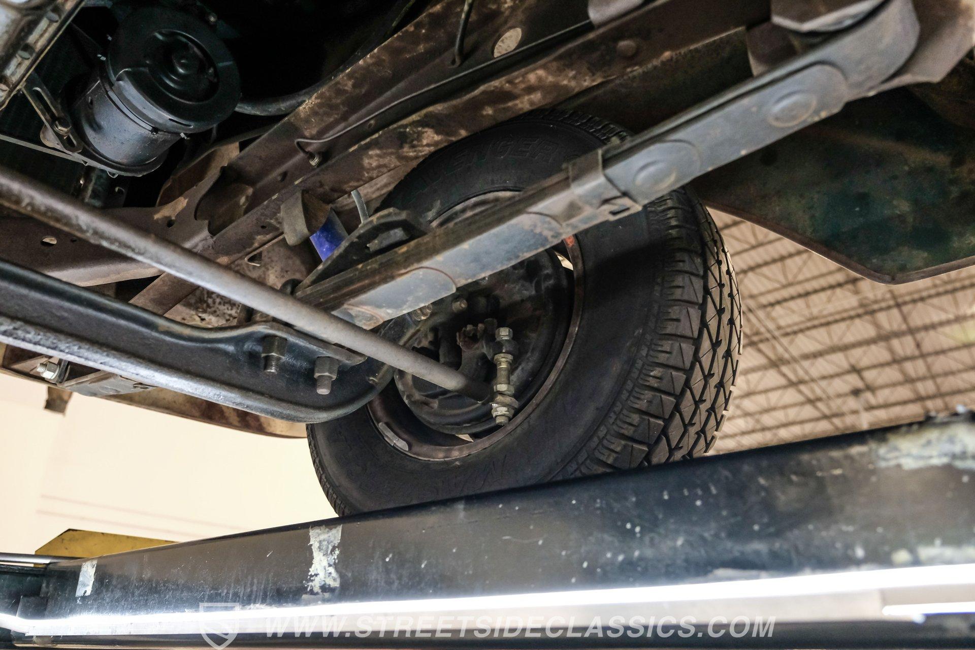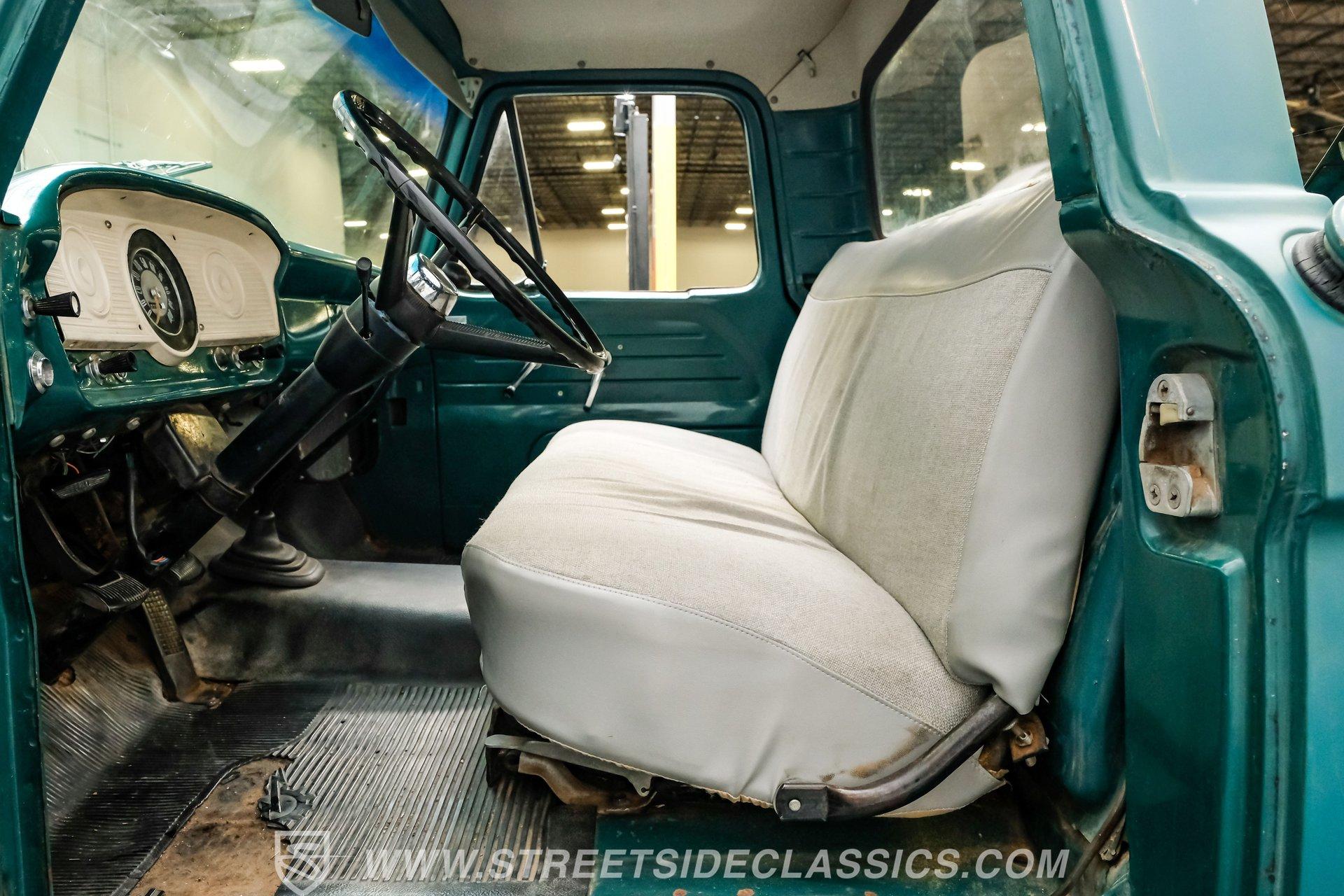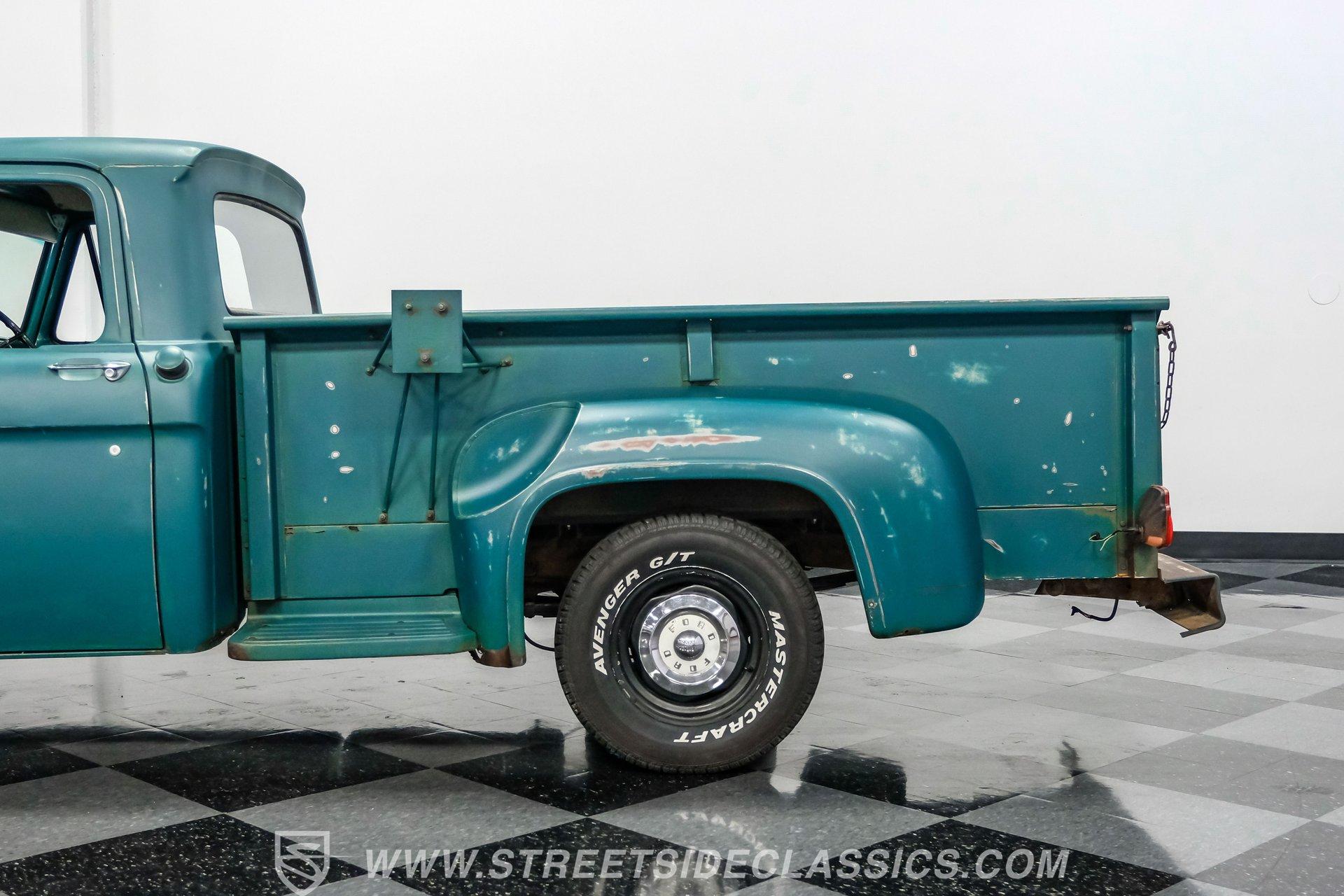 Power comes from a 292 cubic-inch Y-block V8 paired with a 3-speed manual transmission that sends power to a 9-inch rear end with a 3.98 gear ratio. The drivetrain is believed to be original. Factory-style suspension remains in place, front and rear, along with manual drum brakes at all four corners. Stock appearing 15-inch wheels with Ford hub caps wrapped in Mastercraft tires-255/60R15 in the front and 235/70R15 in the rear are fairly new. Exhaust flows through stock-style manifolds into a single system finished with a Glasspack-style muffler.
