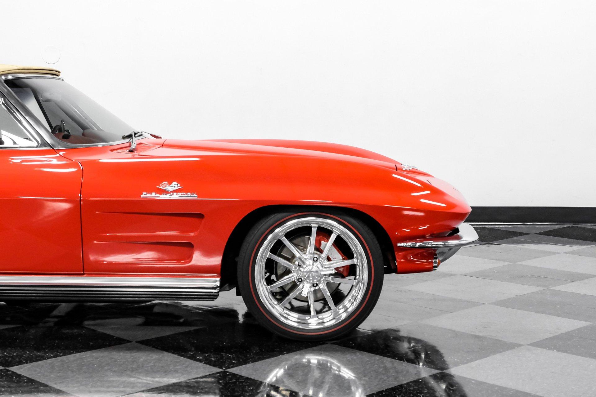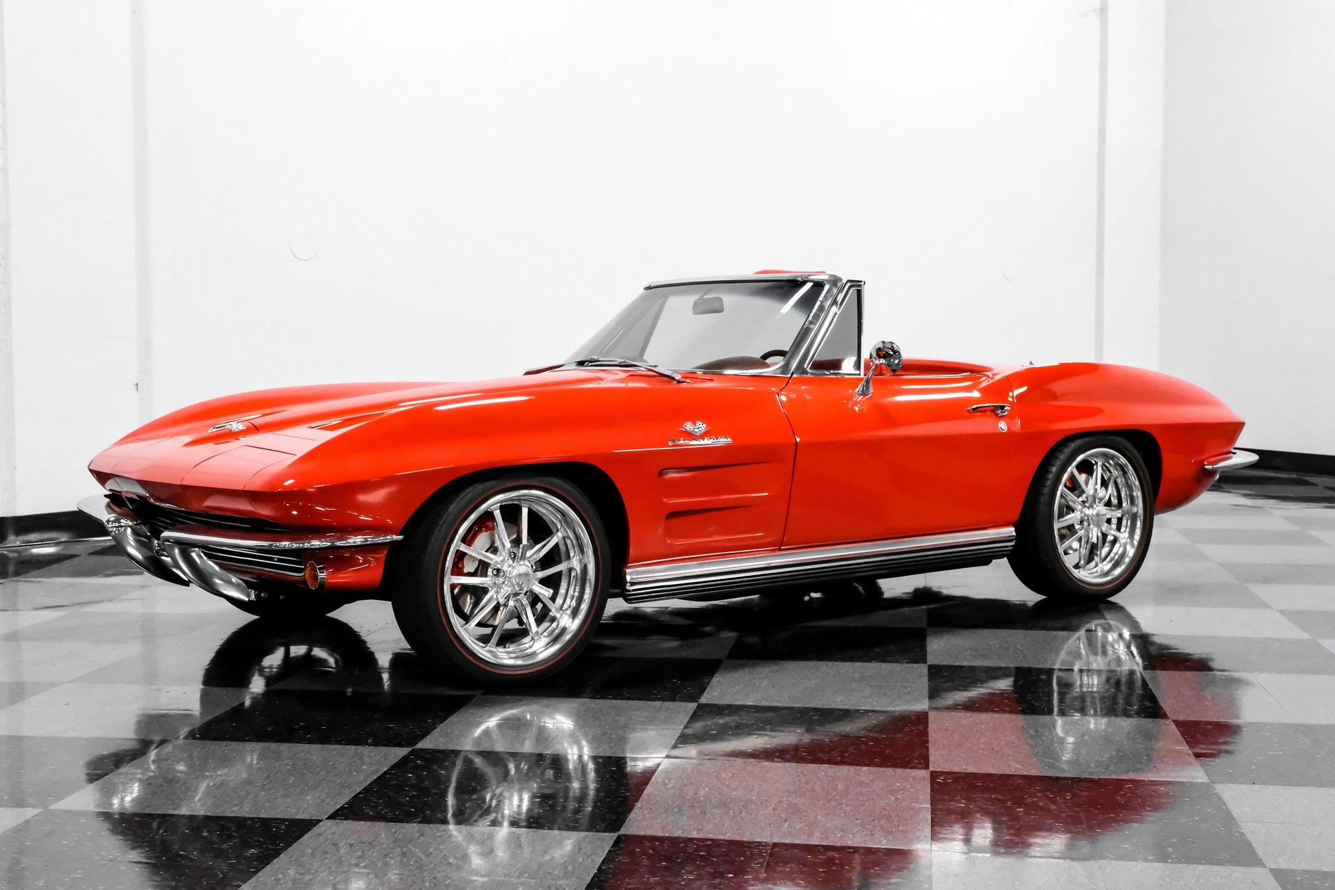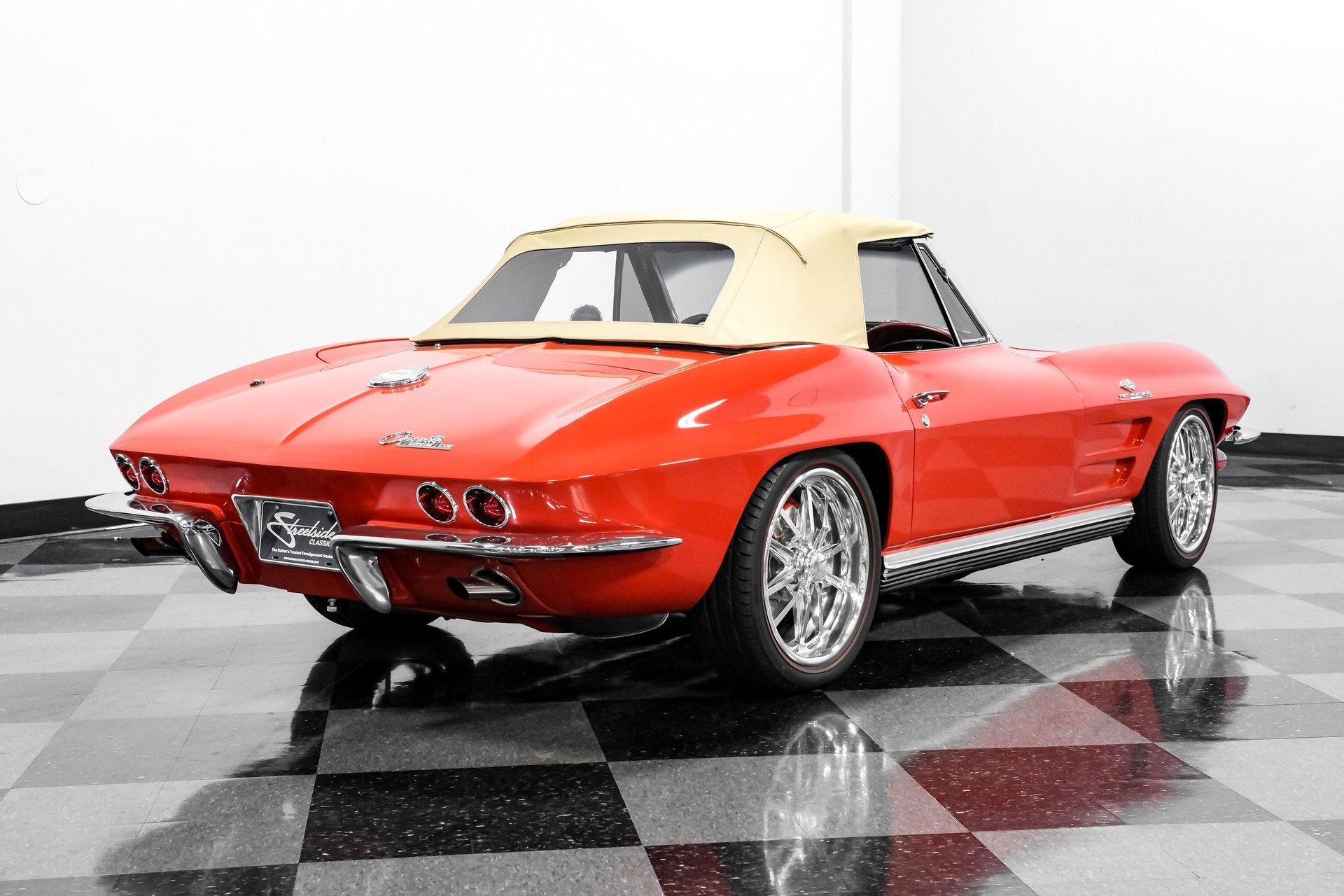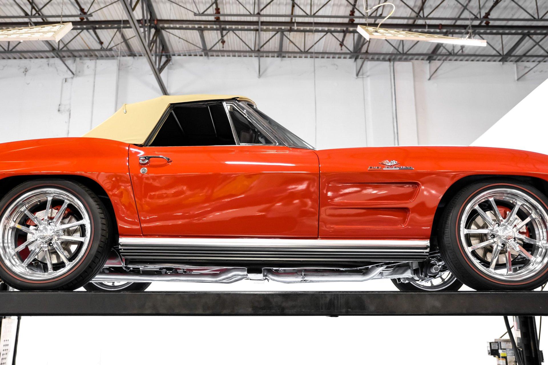 This 1964 Chevrolet Corvette Convertible LS1 Restomod rides on an aftermarket Vansteel's Street and Slalom suspension package. Up front sit lightweight tubular upper and lower control arms, two-inch drop spindles, a 1-1/8th sway bar, and QA1 adjustable coilovers, while a 360-pound fiberglass mono spring, Bilstein shocks, coil springs, Smart Strut brackets, and a 3/4-inch sway bar complete the rear setup. SSBC power disc brakes sit at all four corners, while those 18-inch Budnik wheels are shod in Z-rated Black Diamond Classic redline tires. With its head-turning good looks, hi-po LS1 V-8 engine, and a suspension ready for the road or track, all packaged in a smile-inducing drop-top configuration, the only problem you're going to have is deciding how much you want to drive it. But don't wait long, well-done restomod classics like this don't come around often, so call today!
