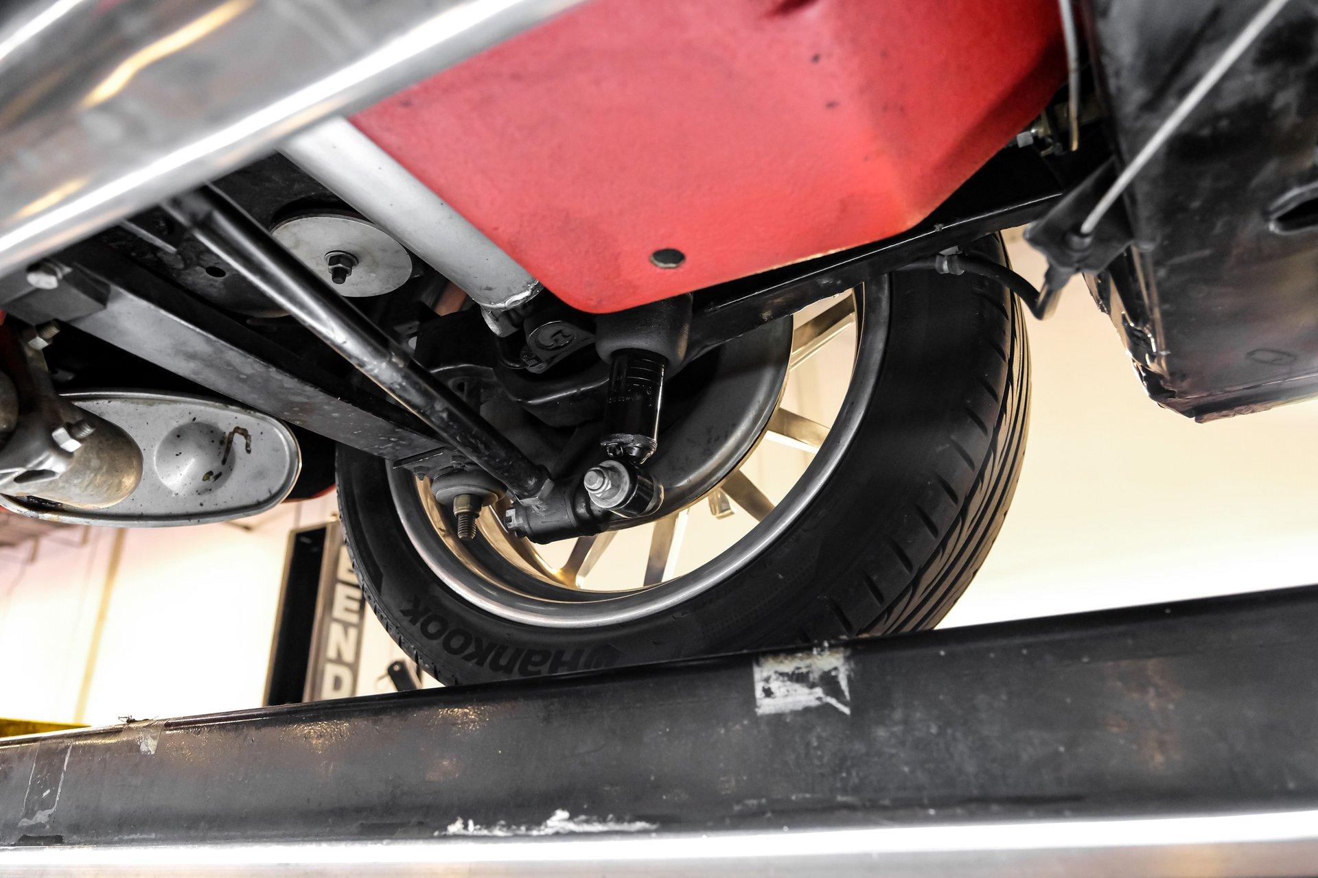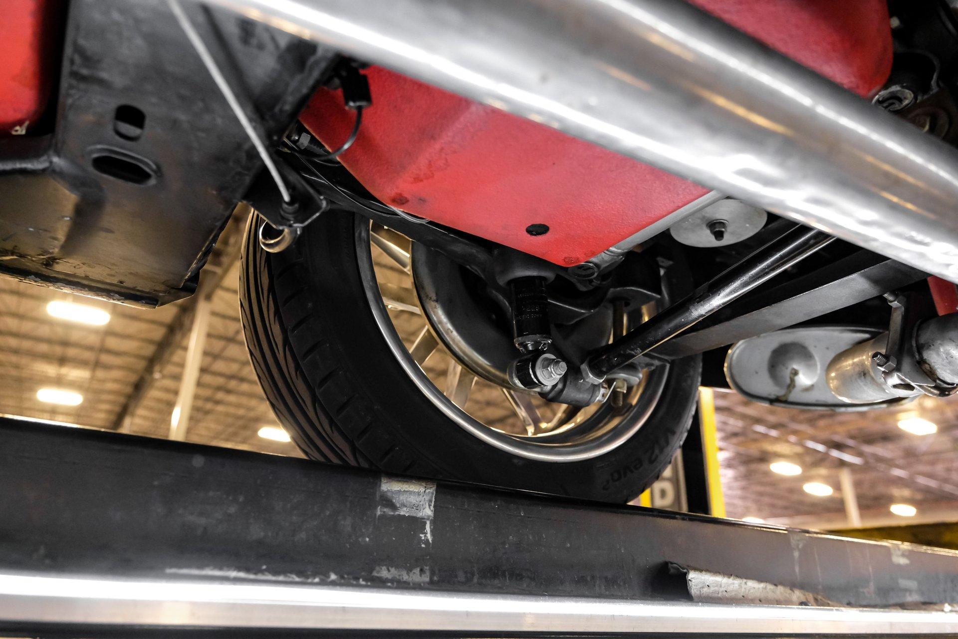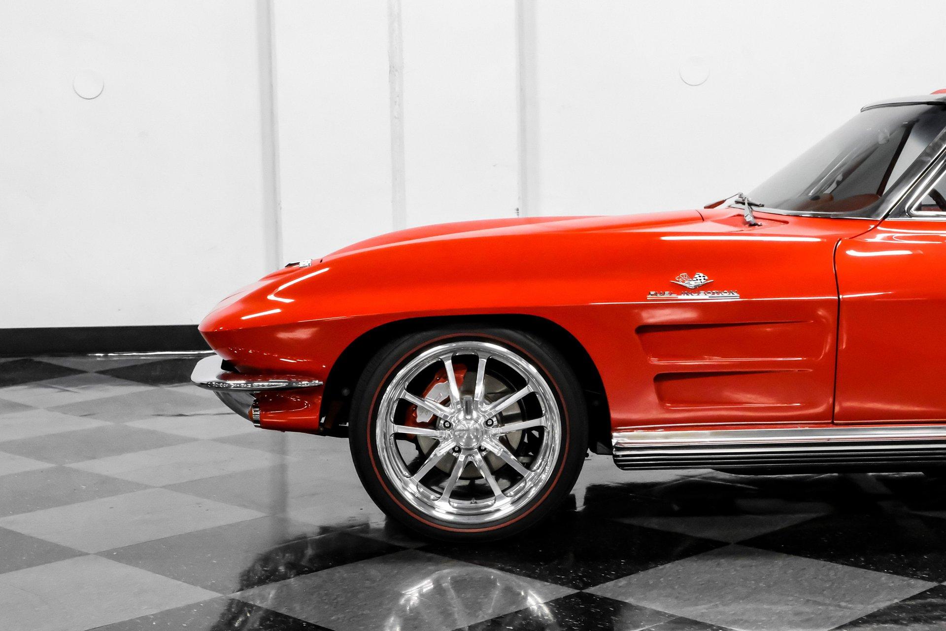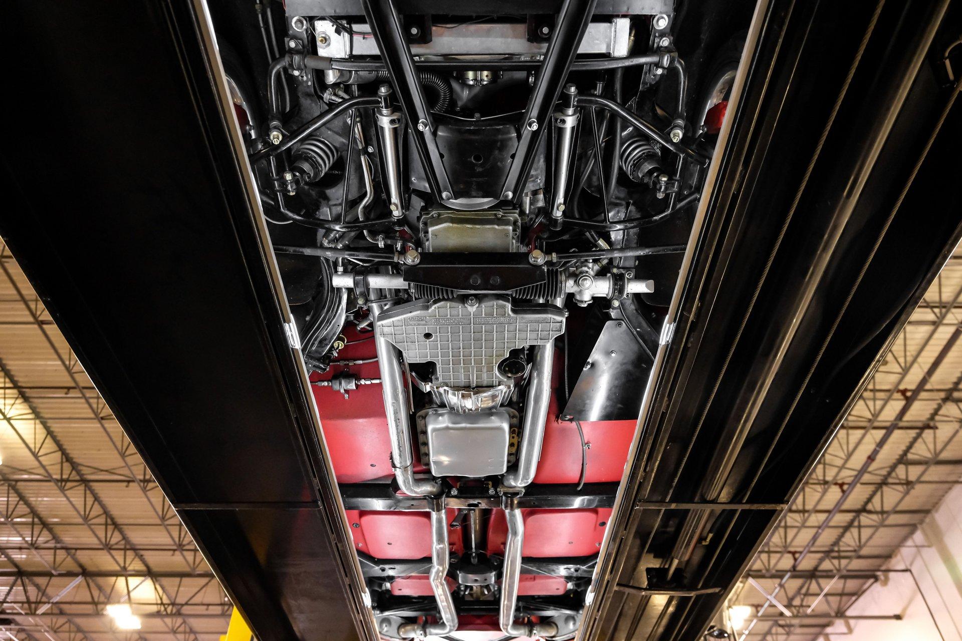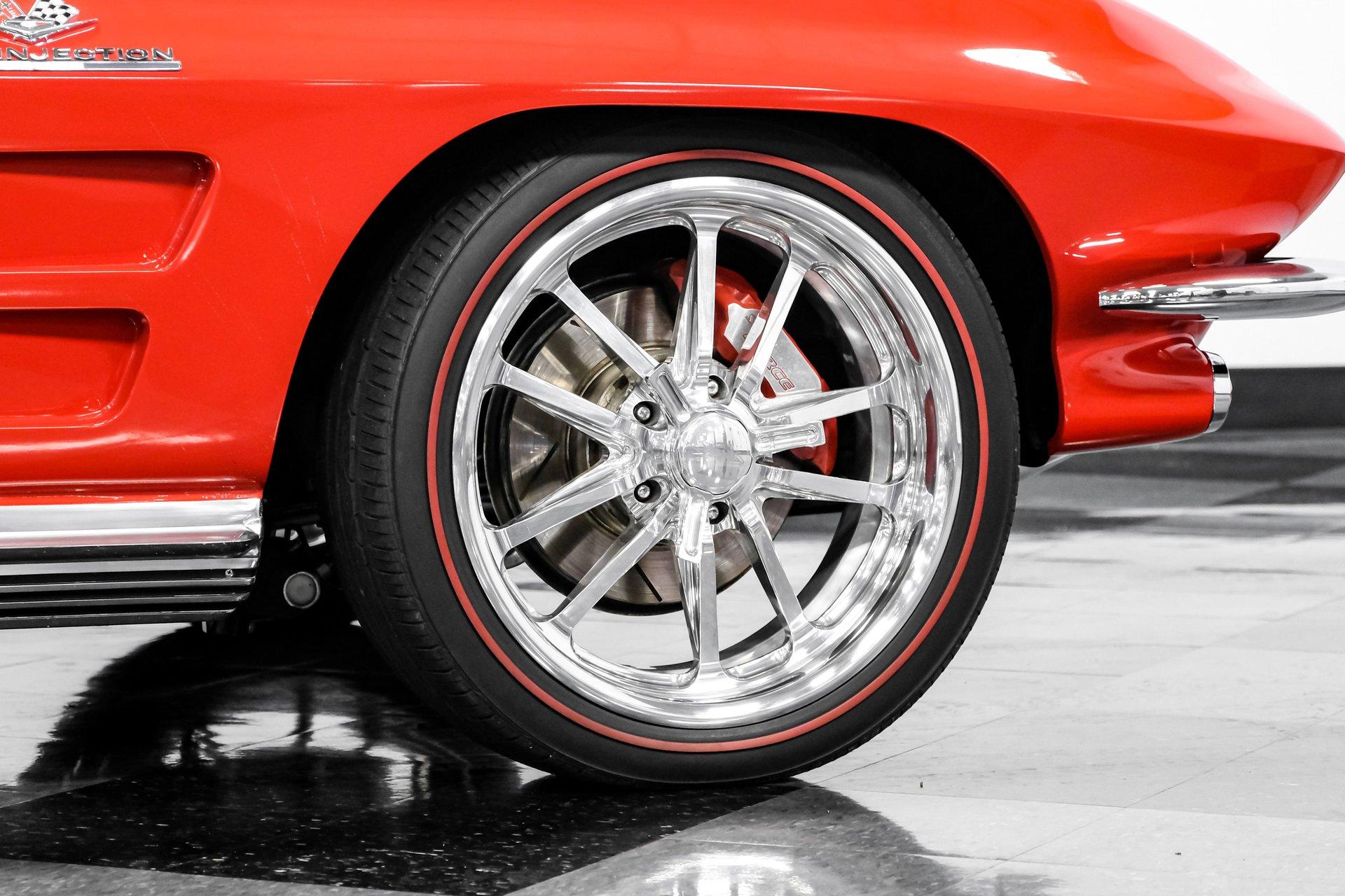 Under that signature front-hinged hood sits a clean engine bay featuring a beautifully packaged 5.7-liter LS1 V-8. Decked out with body-color red valve covers embossed with the Stingray logo, a silver-colored composite intake manifold, performance cam, and shorty headers, this modern small block looks perfectly at home in this C2. That power is routed through a 4L60E four-speed automatic transmission equipped with a 2,800-rpm stall converter before reaching the rear wheels, which are ready to test your self-control at every traffic light.