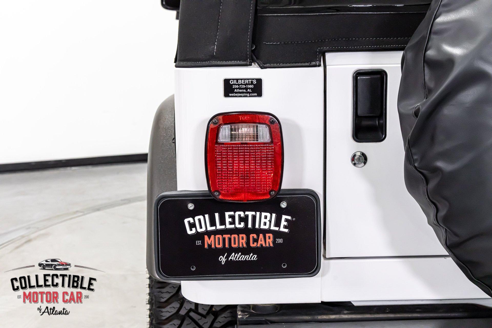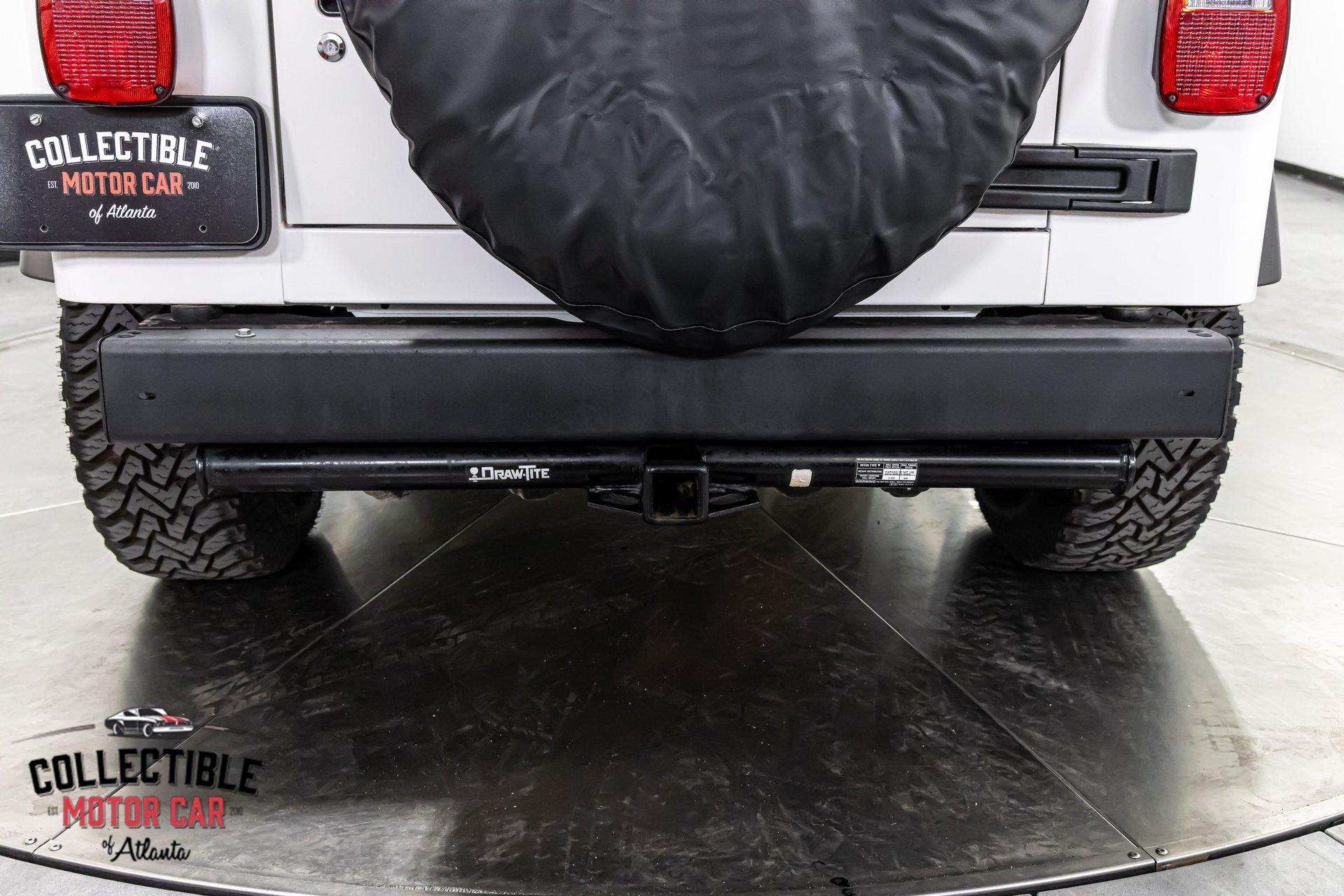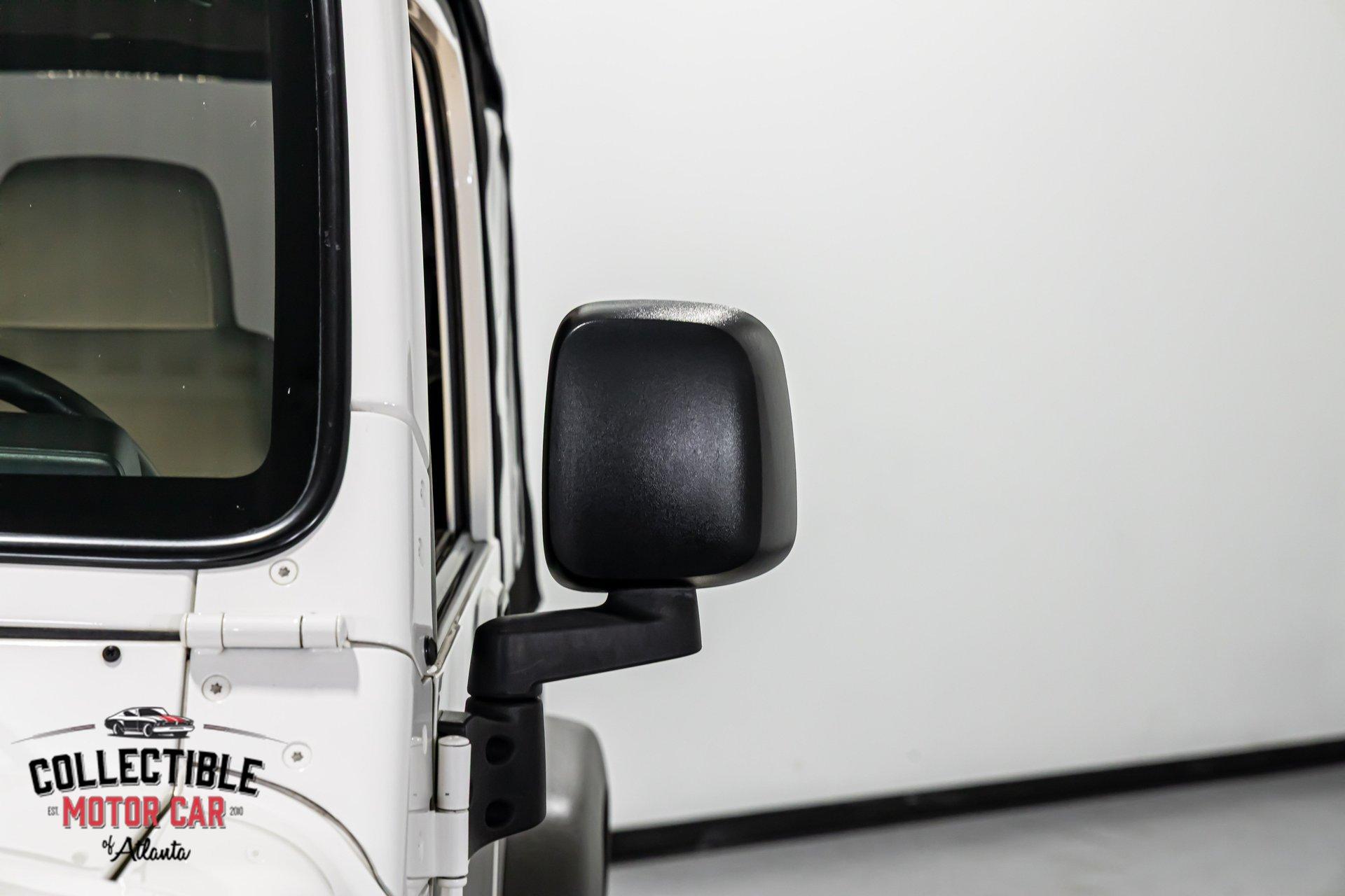 This Wrangler presents exactly how you want one to-simple, clean, honest, and ready to enjoy. The white paint is paired with factory-style gray fender flares, black mirrors, black bumpers, and a black soft top, giving it the iconic Jeep look that never goes out of style. It has a very clean overall appearance, sits right, and retains the rugged stance these are known for. The Jeep is also fitted with side steps and a rear-mounted spare tire with matching cover, adding to both the look and functionality.