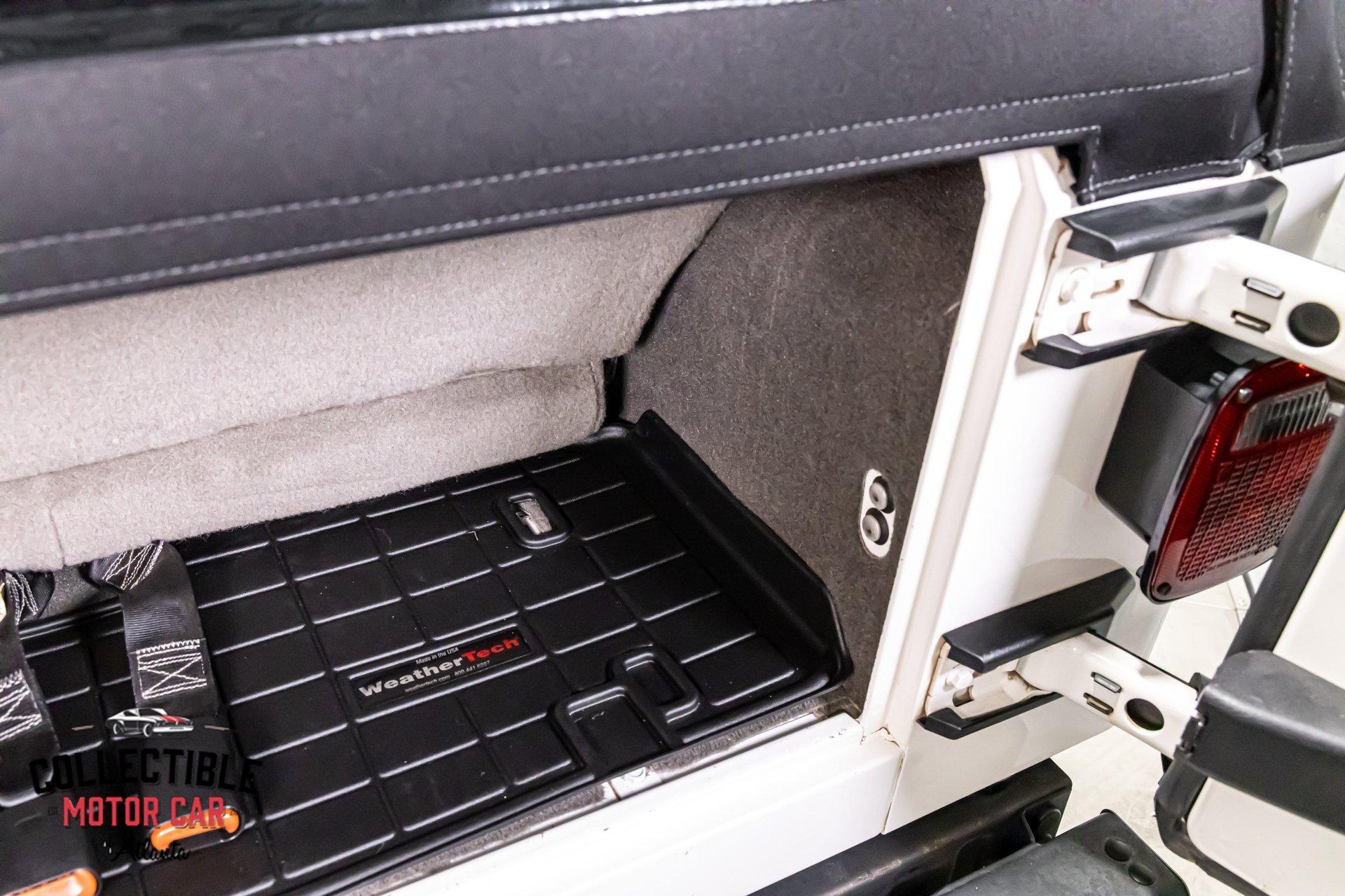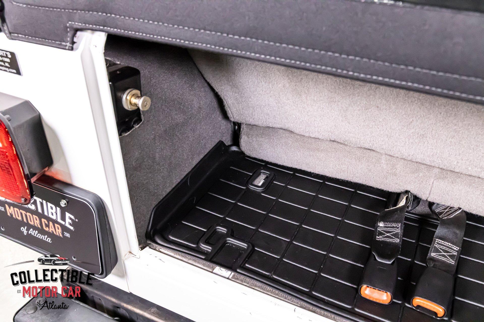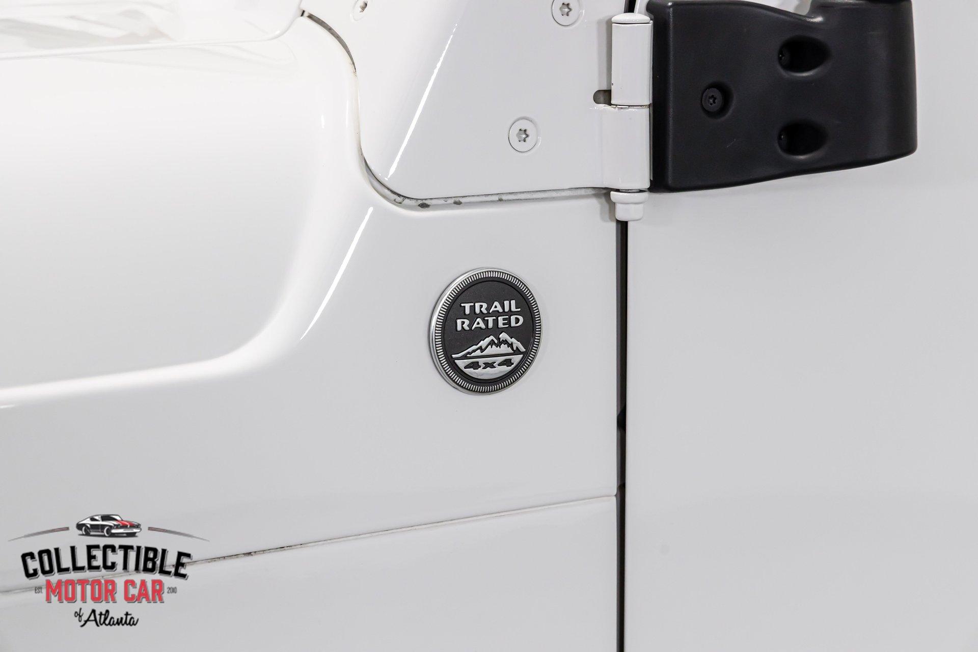 This Wrangler presents exactly how you want one to-simple, clean, honest, and ready to enjoy. The white paint is paired with factory-style gray fender flares, black mirrors, black bumpers, and a black soft top, giving it the iconic Jeep look that never goes out of style. It has a very clean overall appearance, sits right, and retains the rugged stance these are known for. The Jeep is also fitted with side steps and a rear-mounted spare tire with matching cover, adding to both the look and functionality.