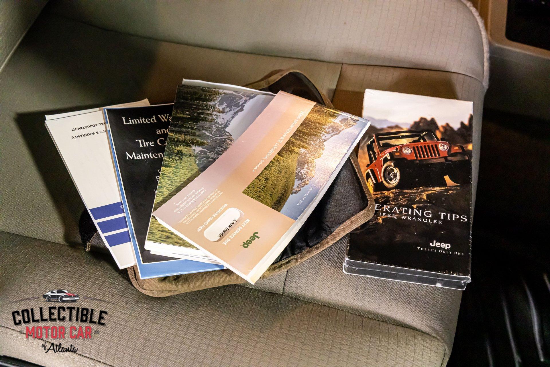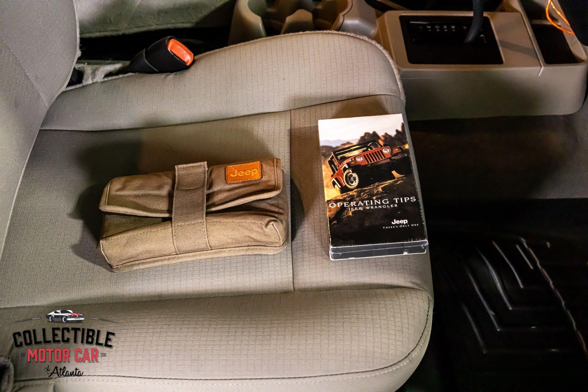 Another big plus is the documentation and accessories shown in the photos. This Wrangler comes with what appears to be its factory books/manuals, literature, and Jeep tool pouch, which is always a great sign on a vehicle like this and adds to its collector appeal.