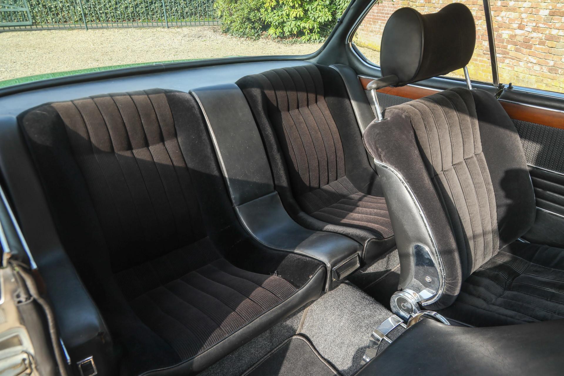 The body has been completely reduced to bare metal and repaired where necessary. The car was then completely repainted in its original colour. The work was carried out very well at the time and the general condition of the car can therefore only be described as very good. The body still looks beautiful with nice thin sheet metal and neat fits. The chrome work and the wheels are also in good condition.