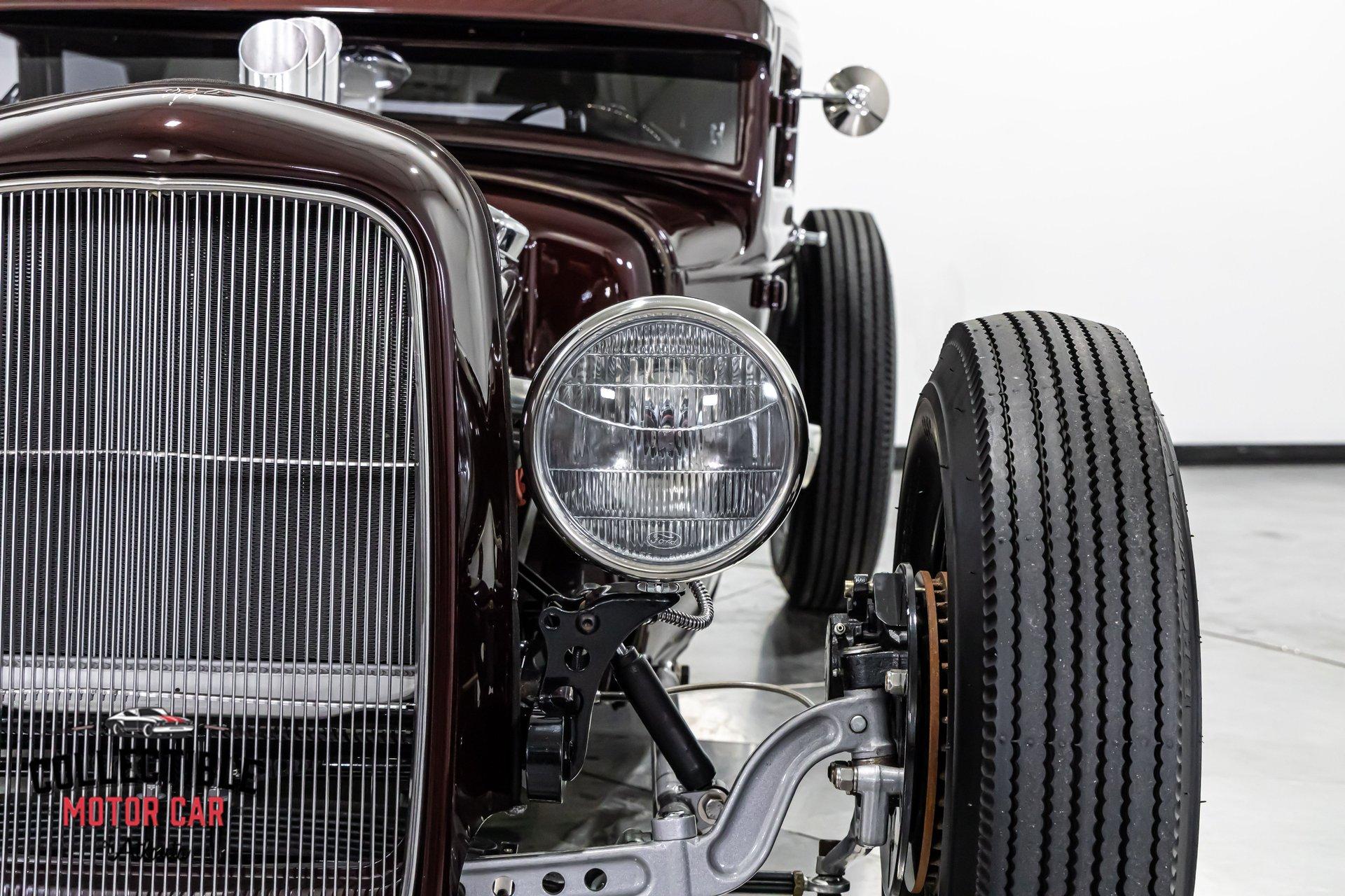 The overall stance and proportions on this coupe are exactly right. It has the compact, aggressive shape that made the early Ford coupes legends in the hot rod world. The body has been kept clean and simple, with a black roof insert, narrow rear glass, and a smooth rear panel treatment that keeps the car looking uncluttered. The small round taillights and subtle striping details finish it off perfectly.
