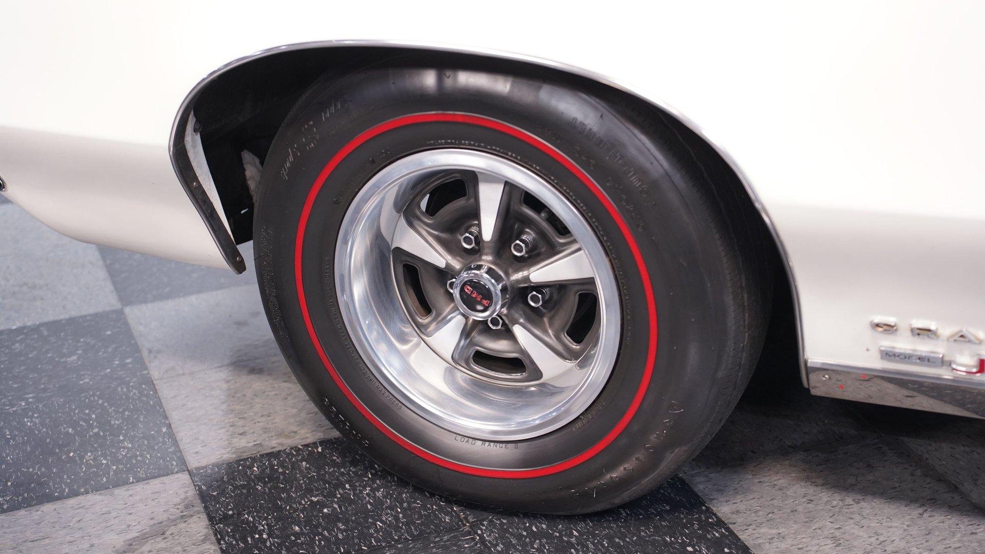 Cruising in this 1969 Pontiac Grand Prix Model J is all about relaxed, laid-back driving. Finished in Cameo Ivory, this Grand Prix carries the look of a classic personal luxury coupe built for effortless road miles. The front and rear chrome bumpers are in good condition, while the remaining brightwork and trim shine nicely throughout. The vinyl top is also in good condition and contrasts well against the paint. OEM 14-inch Pontiac Rally wheels wrapped in period-correct GR70-13 red stripe tires complete the vintage look. All glass and light lenses are clean and clear, and the badges appear correct and properly placed.