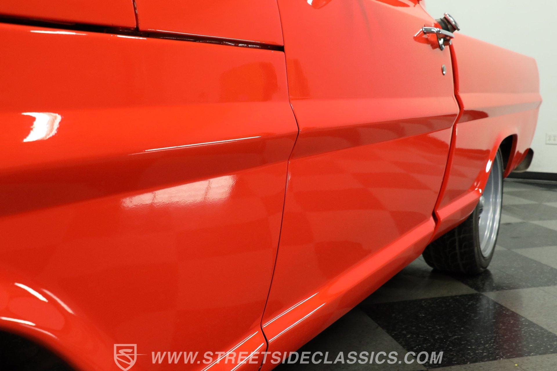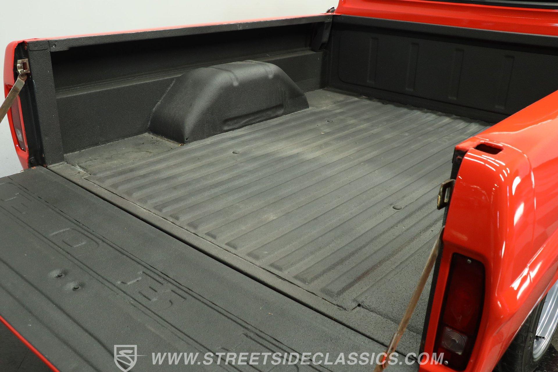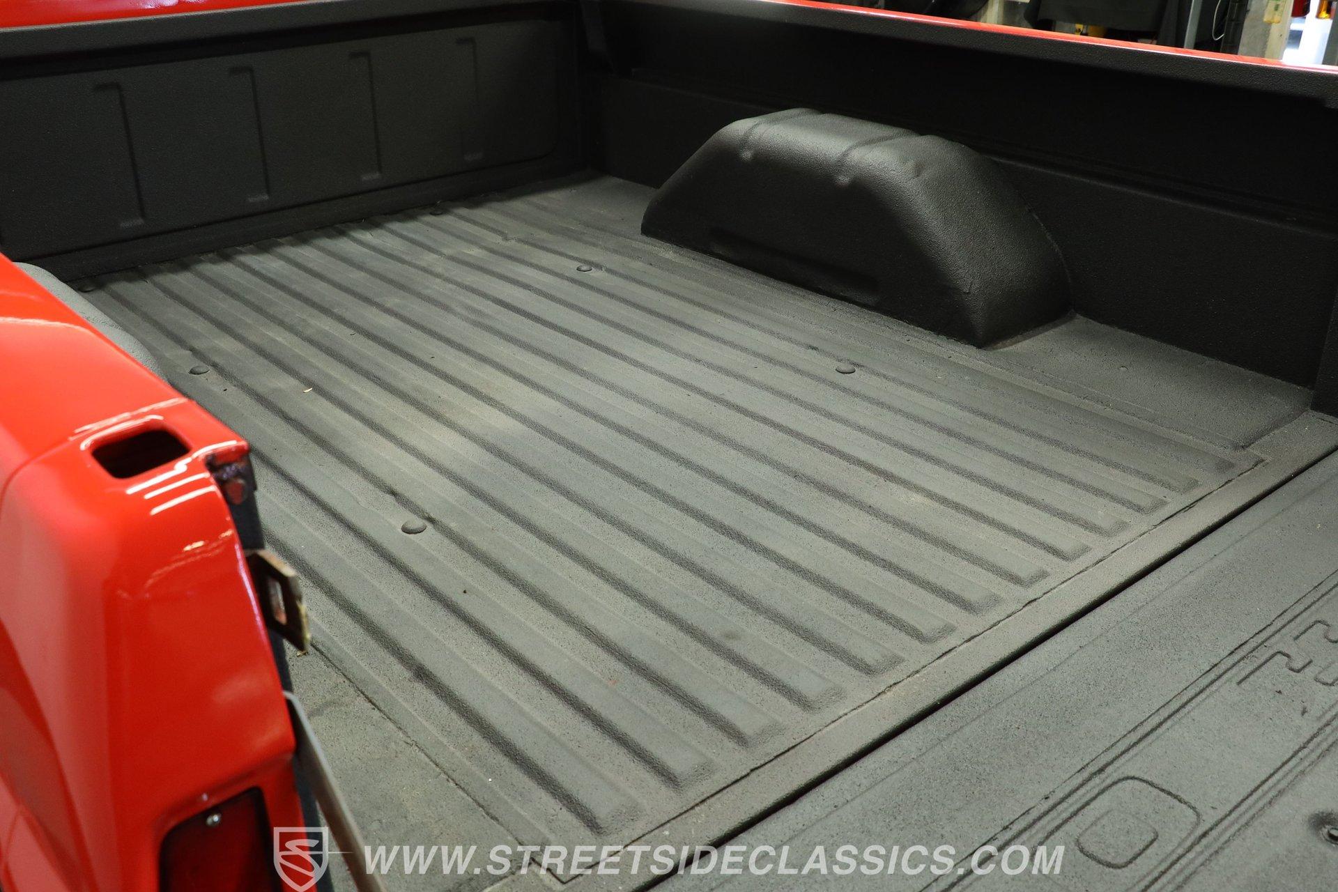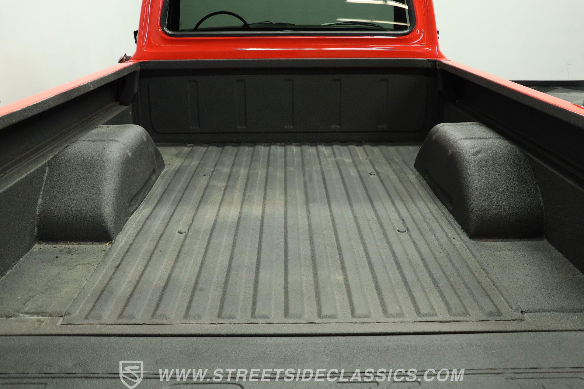 The interior remains largely in factory configuration and really presents well. The steel surrounding the doors and on the dash has been color-matched to the exterior and the red vinyl bench seat is still in full possession of its padding to offer plenty of comfort, even for longer journeys. Up front, the dash hosts an assembly of easily readable gauges in the instrument cluster that are joined by a secondary trio mounted directly below. The added AM/FM stereo has an auxiliary port, so you aren't likely to run out of audio options while you're behind the wheel.