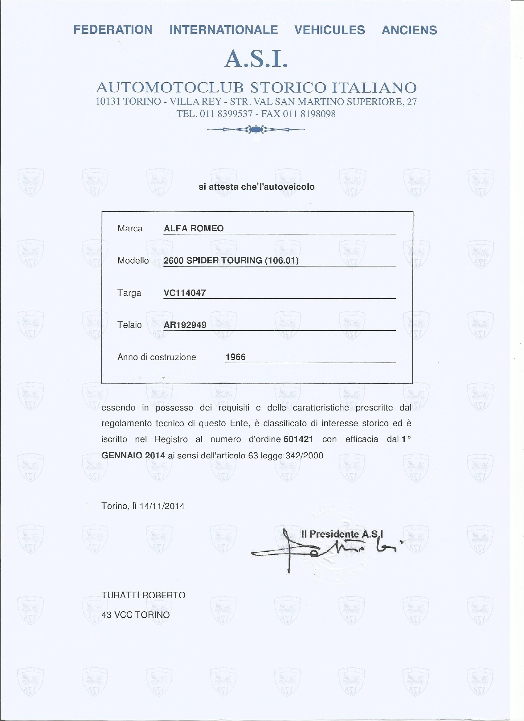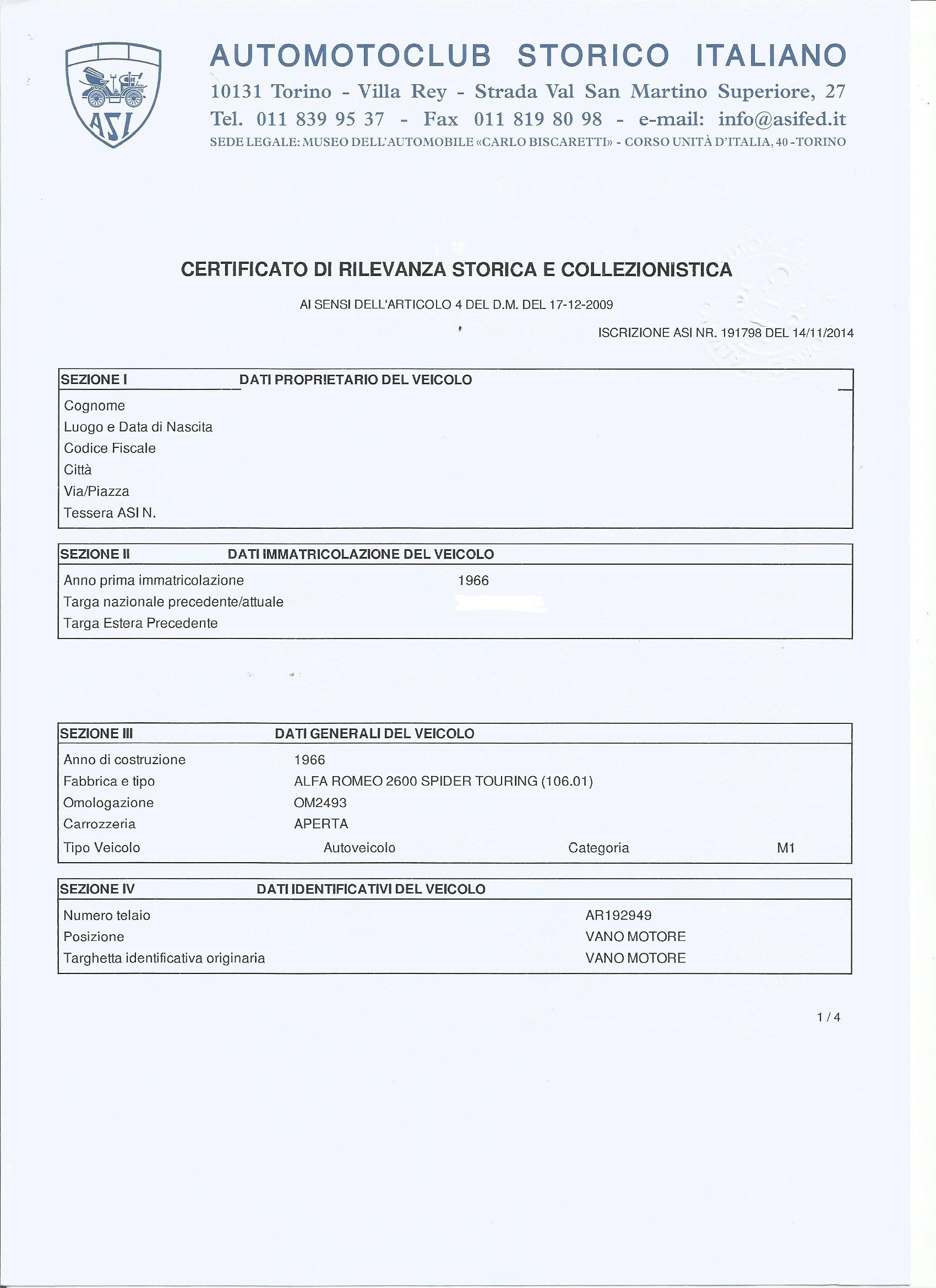 OMOLOGAZIONE ASI TARGA ORO- CRS