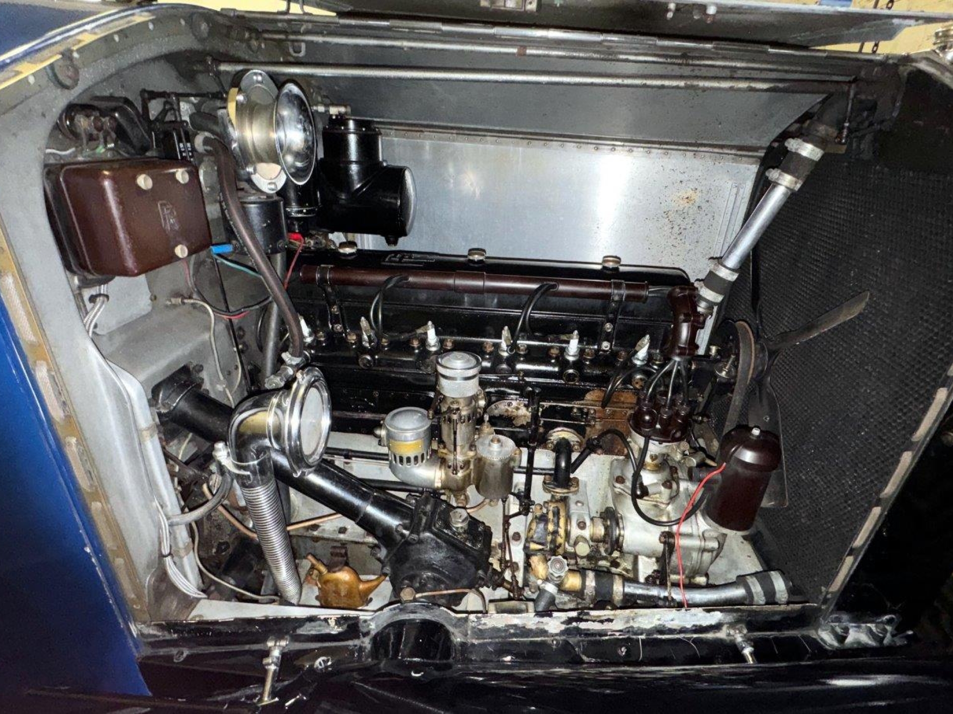 An early, vintage example, stylish and in fine condition. The car was originally exhibited at the London Olympia Motor Show, finished in Ulster Blue, with blue grey cloth to the rear, silver plated fittings and blue leather to the front. Some of this, including silver plated door furniture, remains to this day, and blue is still the theme. Appealing features include Barker Dipping headlights, still working nicely, a large Brooks trunk mounted on the rear, double ‘Diver’s helmet’ rear lights, a triangular stop light and a silver-plated speedometer in the rear of the car, for the benefit of the passengers! We have a copy of Country Life magazine, dated October 1930, which is the Motor Exhibition Number, showing a photo of what is almost certainly GSR40 on the Barker stand at the show. All in all, a handsome car, sound and smart, solidly built, running nicely, and something to be proud to own. Offered serviced and prepared, driving well.