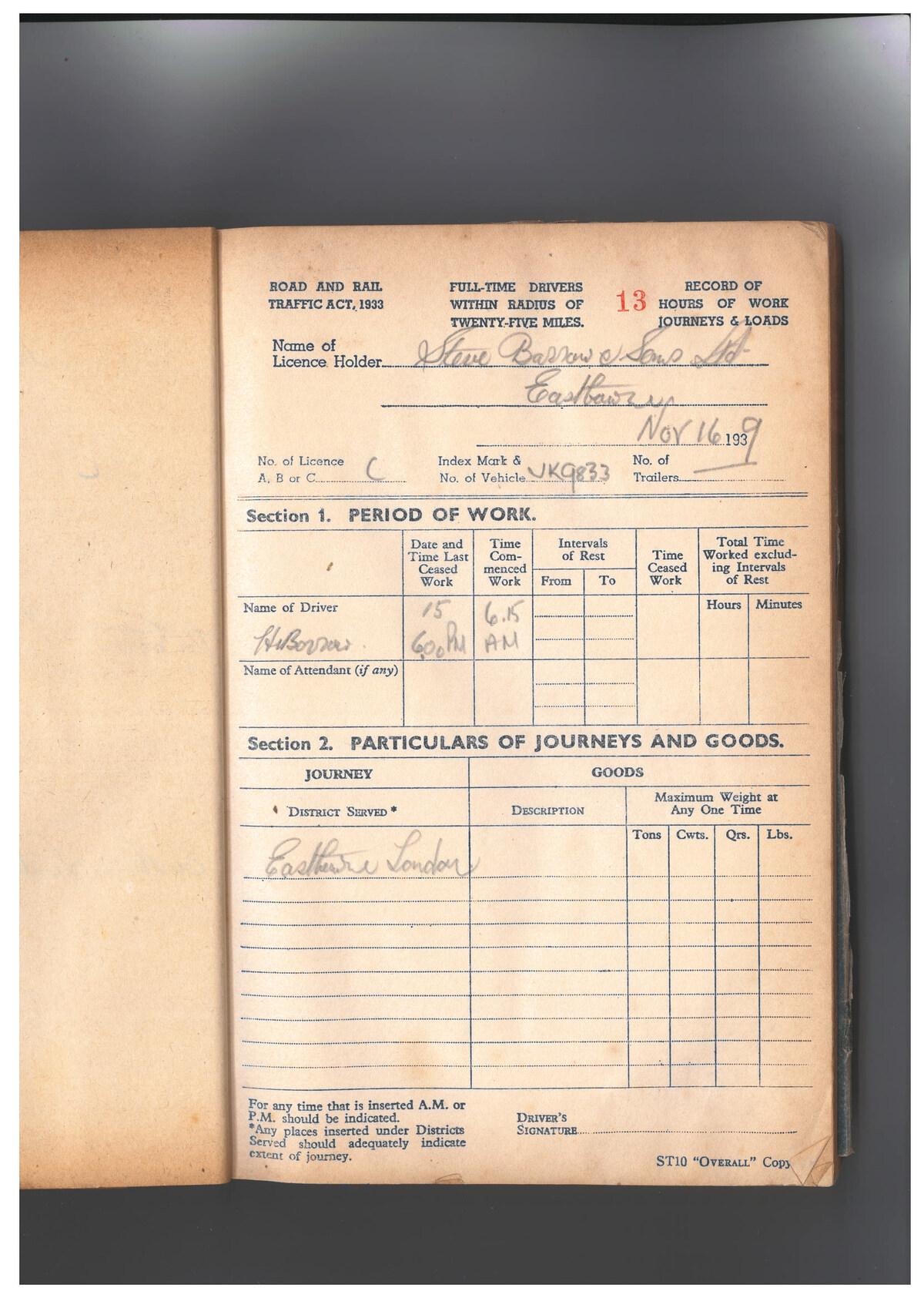 We have been supplied with the original record books of work journeys and loads dating back to 1949, showing the Bedford delivering to London.