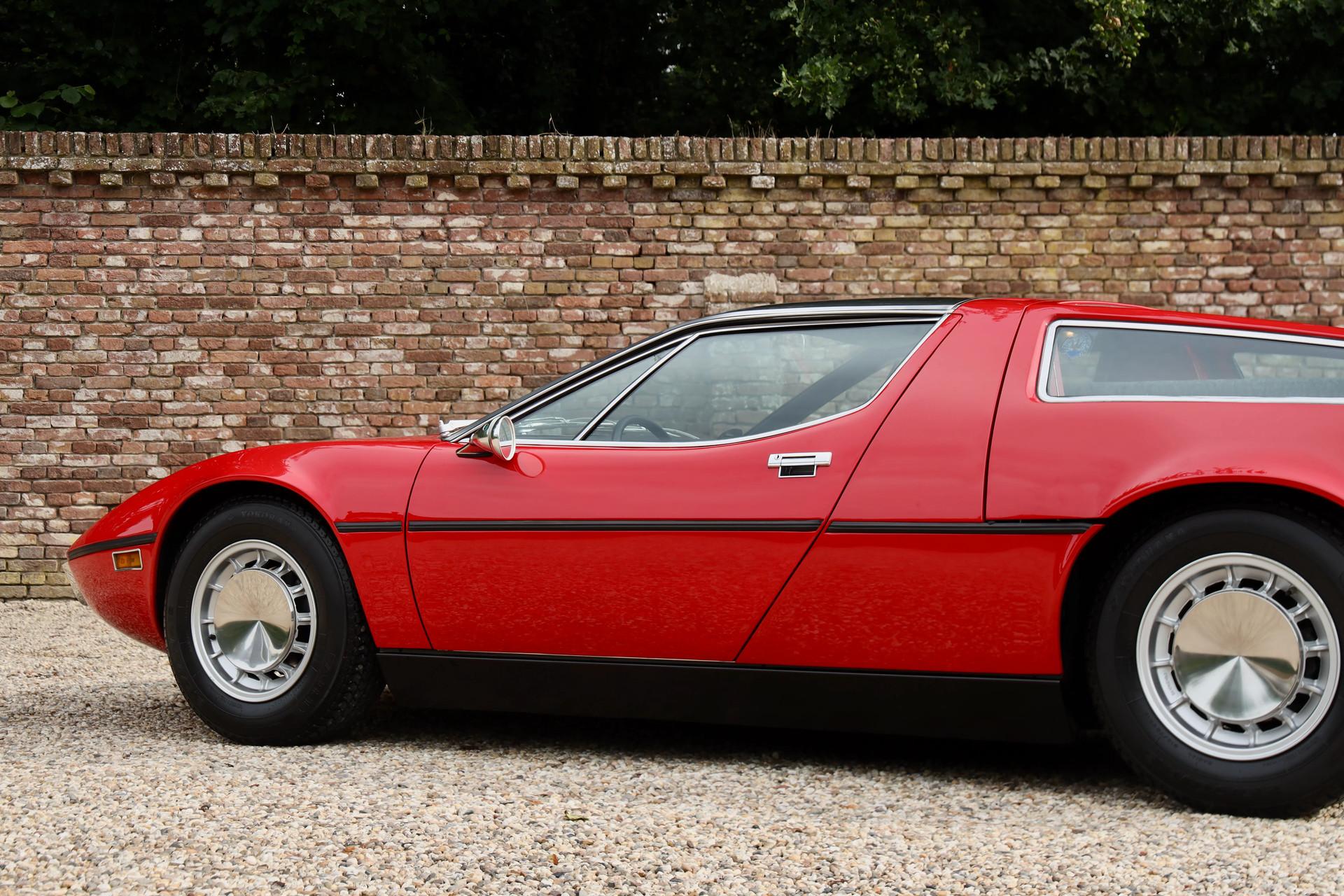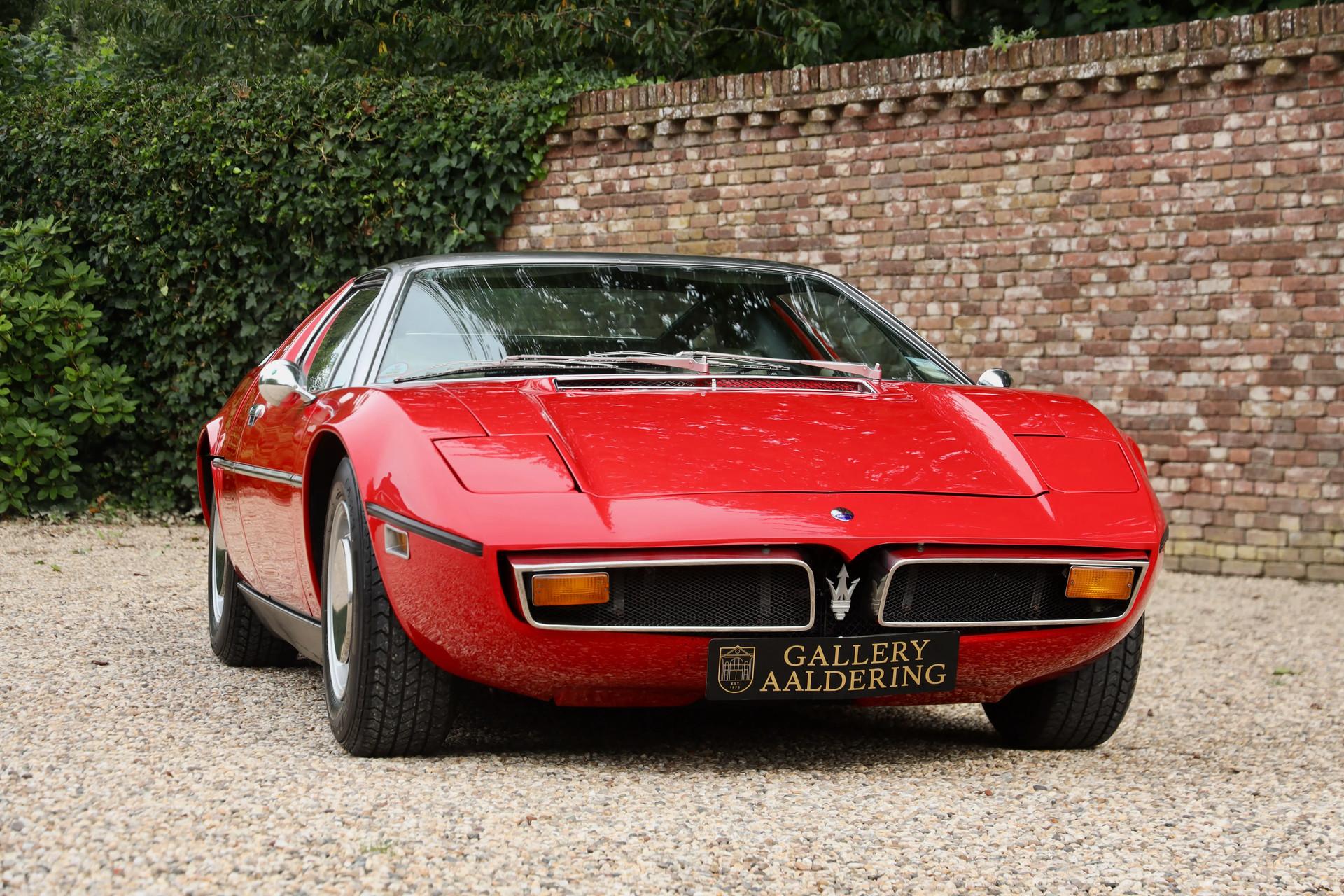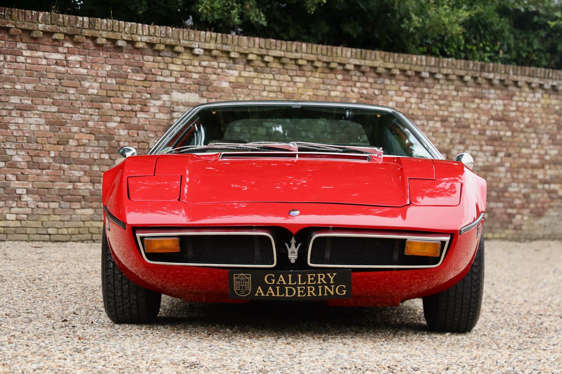 It comes from a private Belgian collection, fully restored, mechanically overhauled and accompanied by a thick binder of documentation, including official Maserati Classiche build sheets and certificates.