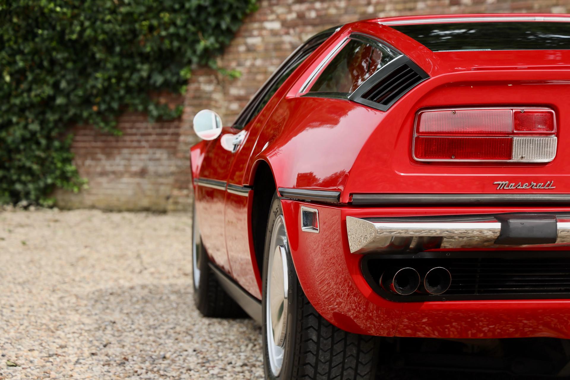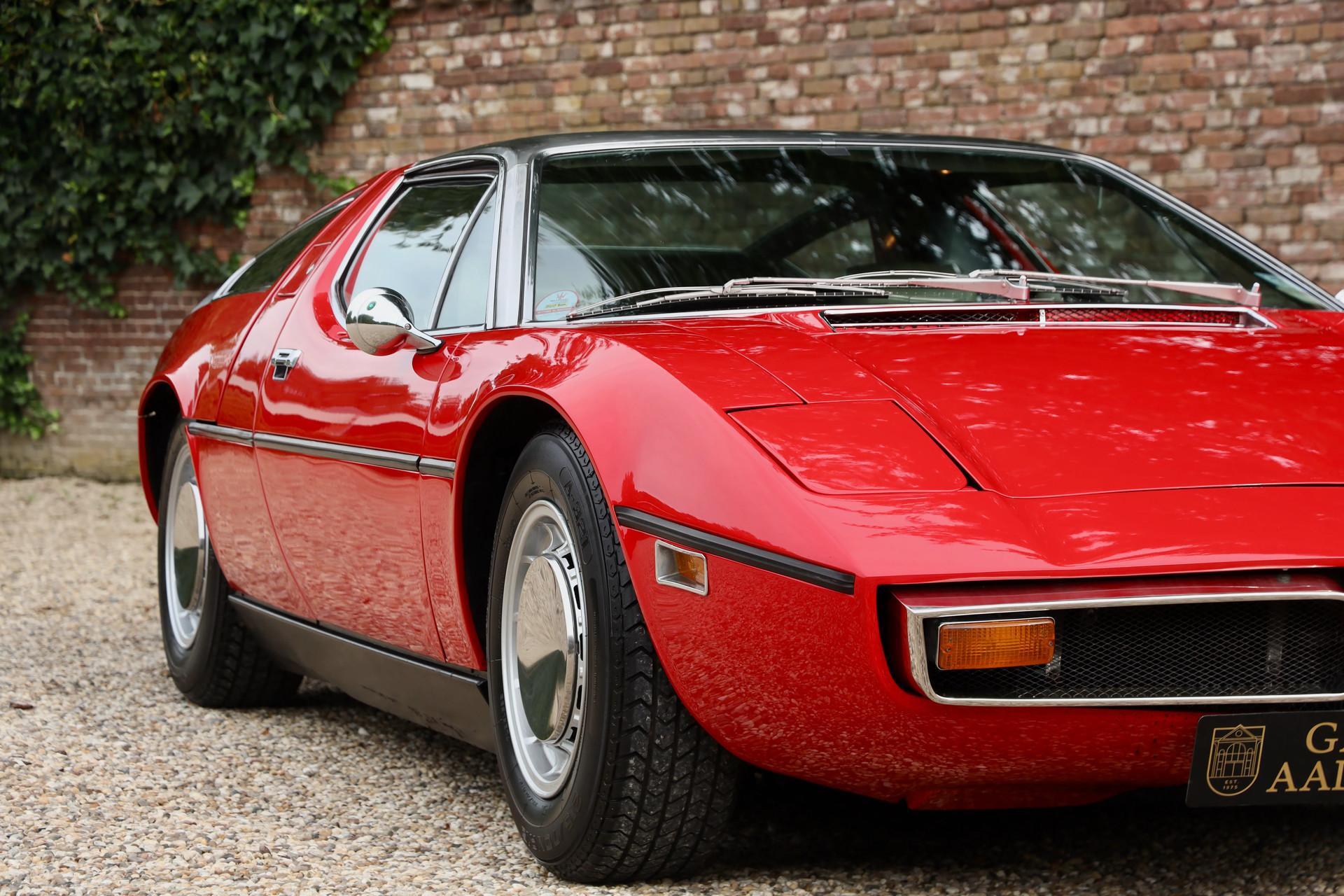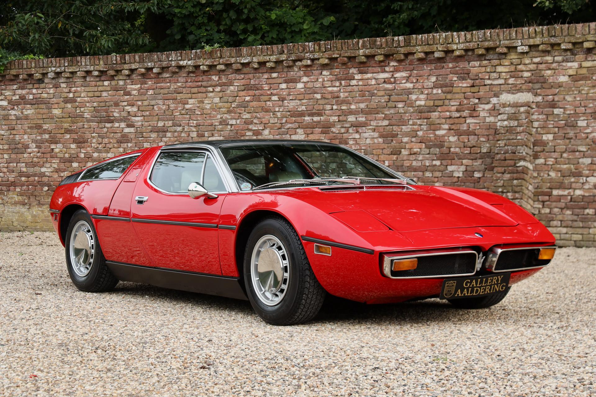 It comes from a private Belgian collection, fully restored, mechanically overhauled and accompanied by a thick binder of documentation, including official Maserati Classiche build sheets and certificates.