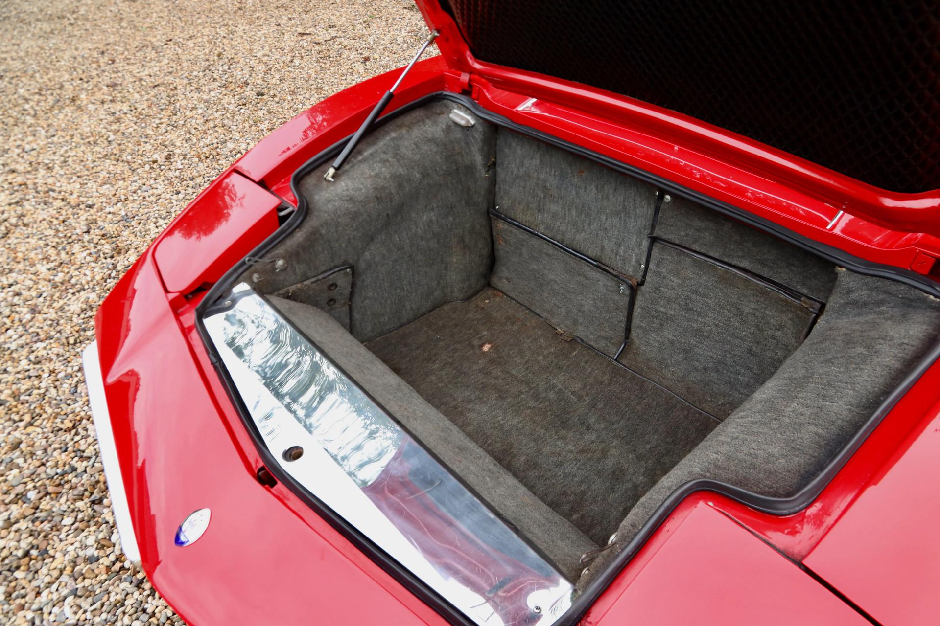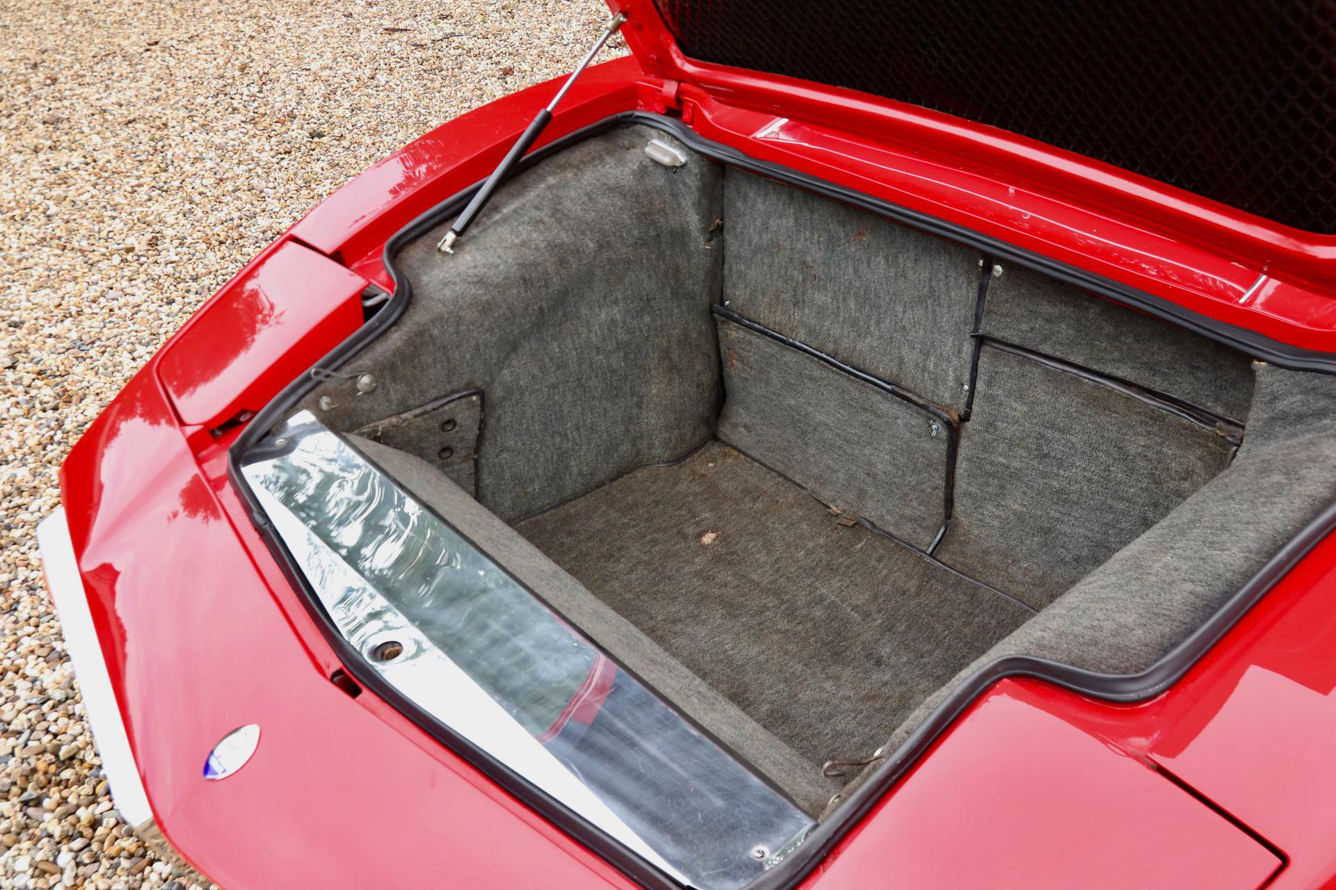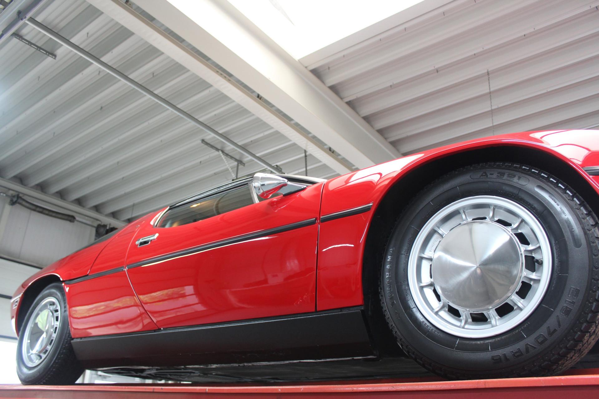 The body is finished in the striking Rosso Fuoco, a deep, fiery red that gleams in the light. Everything is in harmony here: precise panel fitment, clean lines, and smooth metalwork. The original wheels complete the authentic 1970s aesthetic.