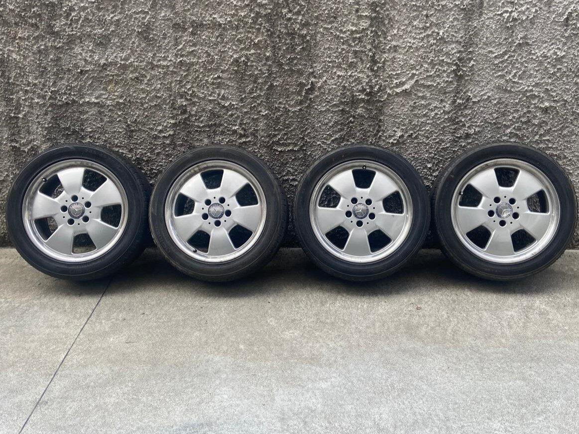 Currently equipped with aftermarket alloy wheels, though the original rims with winter tires are also included.