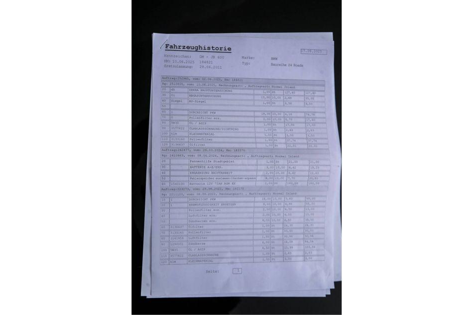 This BMW Z4 Roadster sDrive23i Executive Automatic in Black Sapphire Metallic is exactly what a roadster should be: stylish, sporty and pure driving pleasure. The deep, glossy black beautifully accentuates the Z4’s lines and gives the car a timeless, luxurious look. Inside, it’s all about comfort and the driving experience, featuring a heated steering wheel and heated seats, ensuring that even crisp spring and autumn drives remain wonderfully pleasant. Cruise control ensures a relaxed journey on the motorway, whilst the smooth automatic transmission makes driving effortless and comfortable. With its powerful six-cylinder engine and chic colour scheme, this is a Z4 for the enthusiast seeking quality, style and driving pleasure all in one package.B AccessoriesB * Front side airbag(s) * Driver airbag * Passenger airbag * Automatic air conditioning * Grade 3 alarm * Anti-lock Braking System * Traction Control * Tyre pressure monitoring system * Bi-xenon headlights * On-board computer * Electrically adjustable and heated wing mirrors * Central locking with remote control * Cruise control * Cruise control * Cruise control * Electrically operated bonnet * Electric front windows * Electronic Brake Force Distribution * Electronic Stability Programme * Headlight washers * Leather upholstery * 17" alloy wheels * 18" alloy wheels * Metallic paint * Front and rear parking sensors * Radio/CD/MP3 player * Heated windscreen washers/wiper blades * Power steering * Leather steering wheel * Multifunction steering wheel * Heated steering wheel * Heated steering wheel * Heated front seats * Windscreen