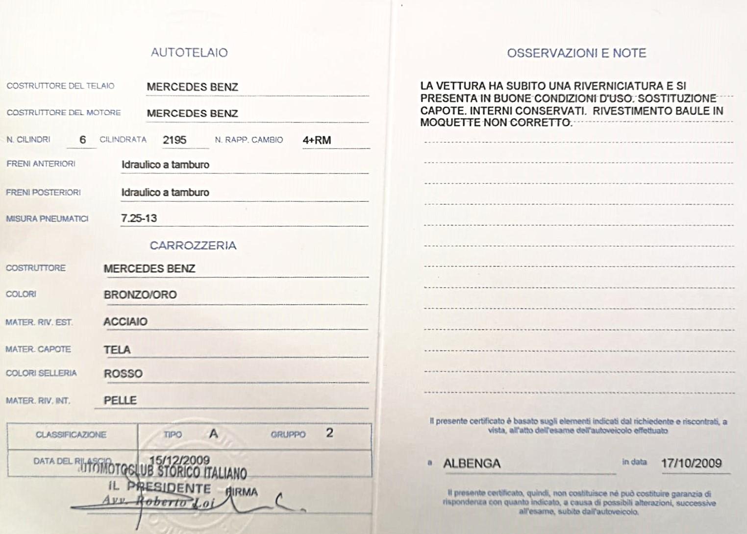 Over the next twenty years, it changed hands among some collectors, including a member of the International Mercedes-Benz Registry, who registered it in the Italian section and obtained official badge no. 695, still displayed on the front grille.