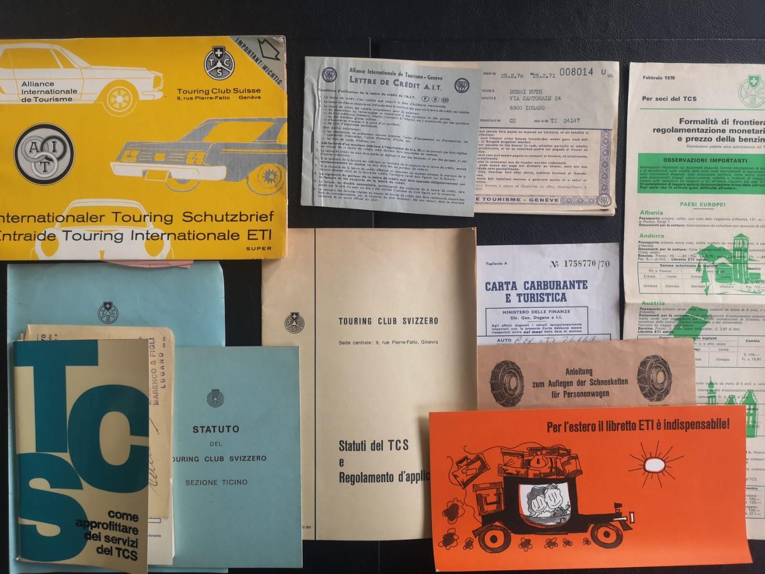 A unique feature is the original Swiss Touring Club envelope, containing regulations, benefits, fuel cards, and the club's statute, along with its badge on the front grille—all in perfect condition. This outstanding documentation adds significant historical and collectible value to the car.