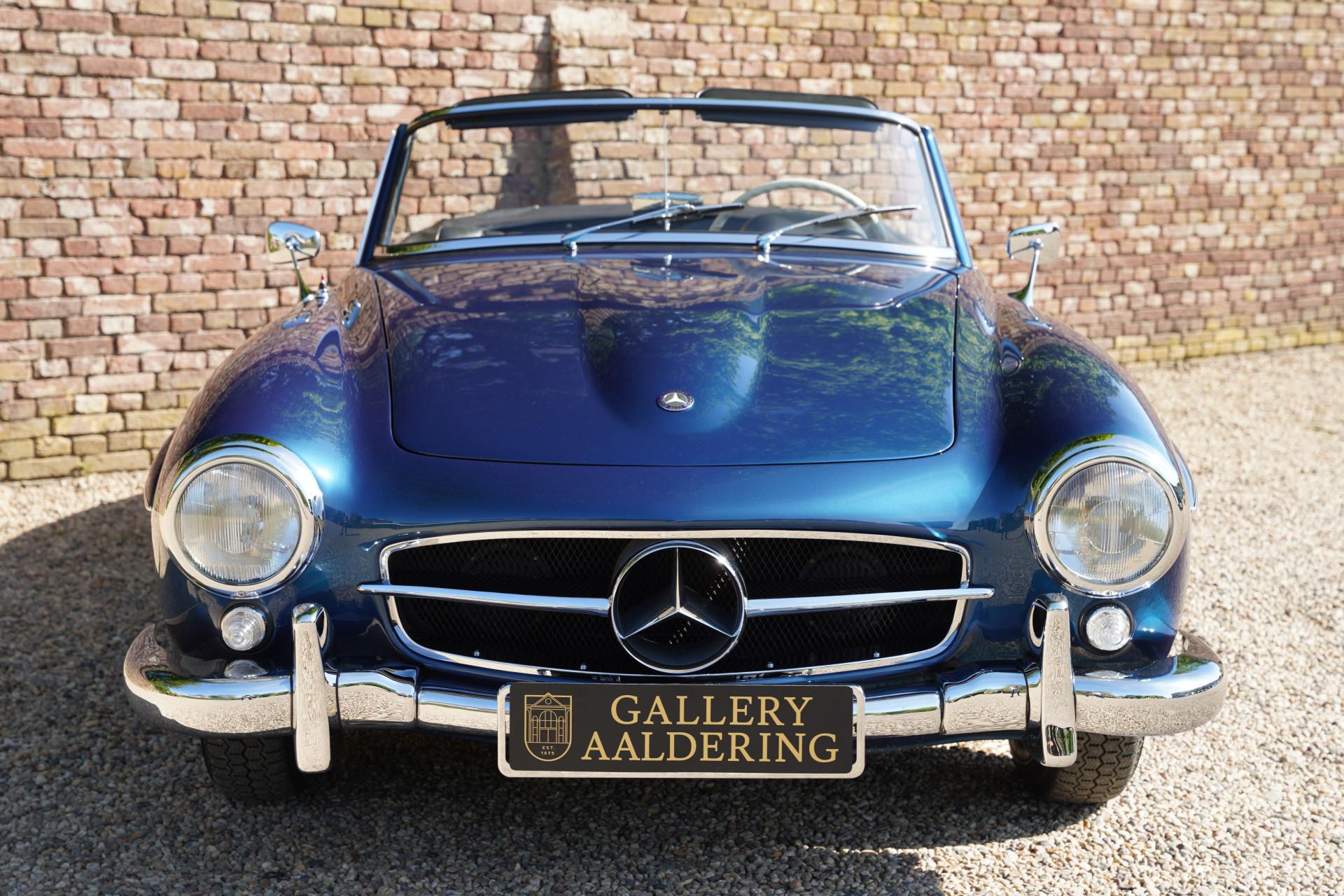 At Gallery Aaldering, we've seen a wide variety of automobiles come through our doors. Yet the Mercedes 190 SL remains one of the most versatile classics out there, embodying the core values of Mercedes-Benz with remarkable clarity. But make no mistake, this isn't just any 190 SL. This is a car that's been restored from bare metal up. A full, uncompromising restoration. The Magnetite Blue paint has a deep, luxurious shine. The leather interior still has that showroom scent, and the chrome sparkles with pride.