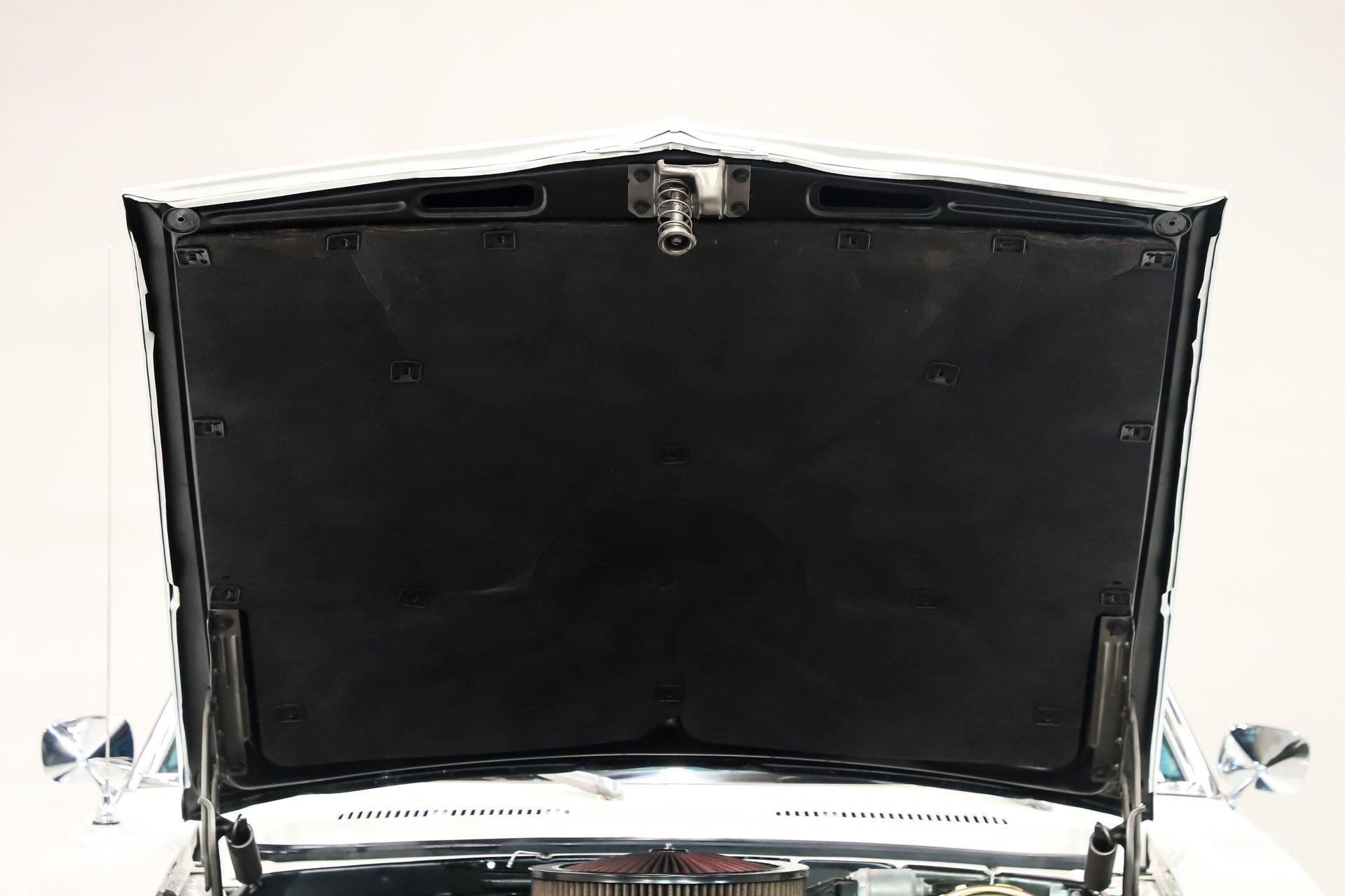 ENGINE COMPARTMENT: It is a crate ZZ6 from GM Performance making 405hp and 406lbs of torque. These feature a heavy duty block with 4 bolt mains, forged steel crankshaft, high silicon pistons, roller cam, fast burn aluminum heads, aluminum intake, HEI ignition and good looking cast aluminum valve covers. It has been upgraded with a Fast fuel injection. The front runner system includes serpentine pulleys, Vintage Air, modern alternator and power steering. Other upgrades include a fuel regulator, Optima battery, modern wiper motor and an aluminum radiator with electric fan. It is complete with hood insulation, cadmium plated power brake booster, horns and rebuilt vacuum system for the hideaway headlights.