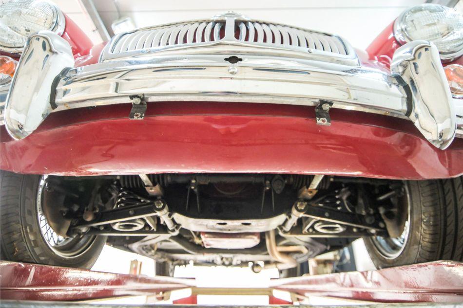 The MGA 1600, introduced in 1959, was a further development of the MGA 1500. With its timeless, low-slung body line and flowing curves, the MGA is often regarded as one of the most beautiful MGs ever built. The model combines classic British sports car charm with practical driving characteristics and a robust technical foundation. The MGA 1600 is distinguished by its low, aerodynamic profile, elegant mudguards and classic chrome grille. A distinctive feature of this model is the larger rear lights compared to the 1500. The interior is simple and functional, with leather seats, a metal dashboard featuring round Smiths instruments and a sporty, thin-spoke steering wheel. The car is fitted with spoke wheels and whitewall tyres. The exhaust is made of stainless steel and is maintenance-free.