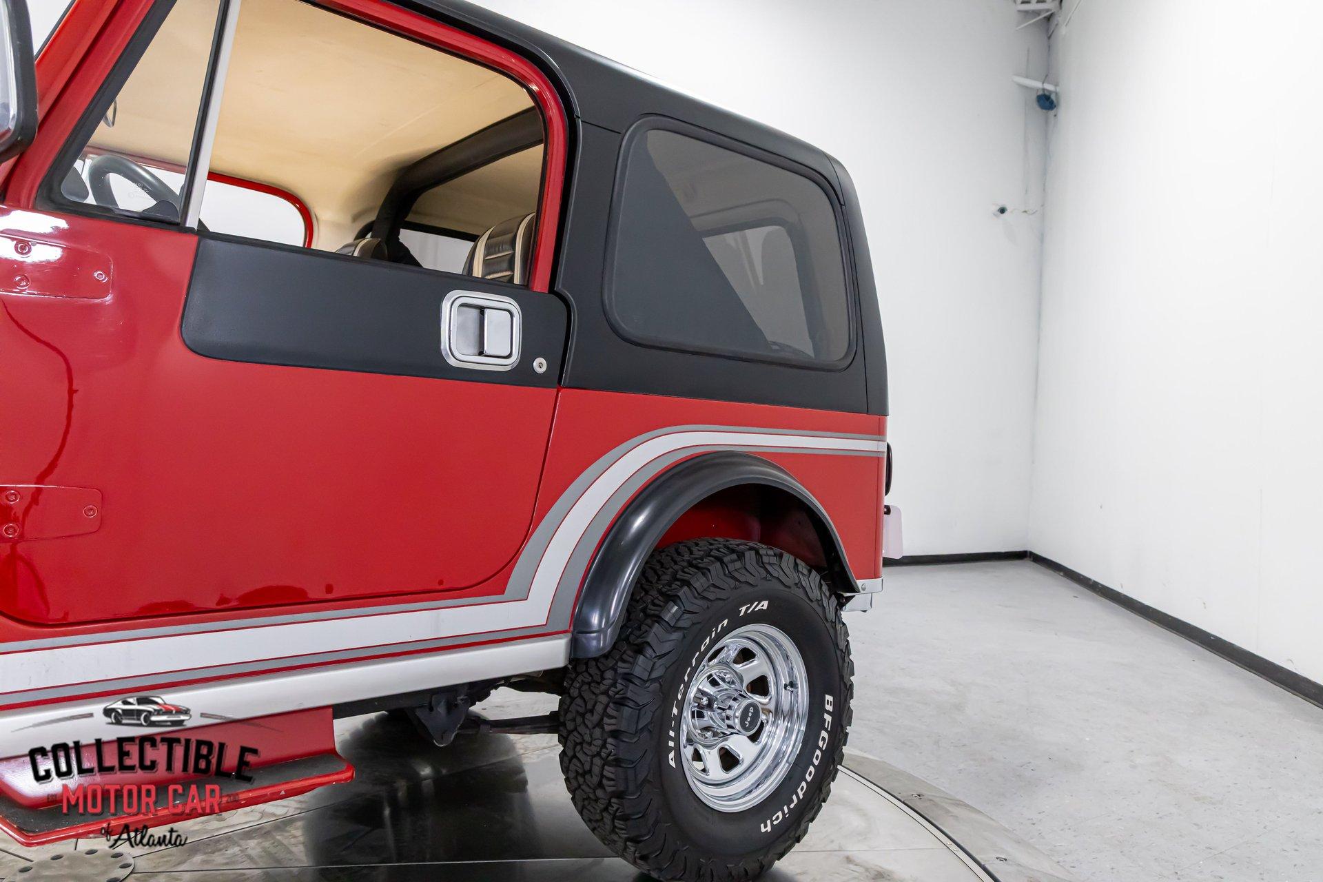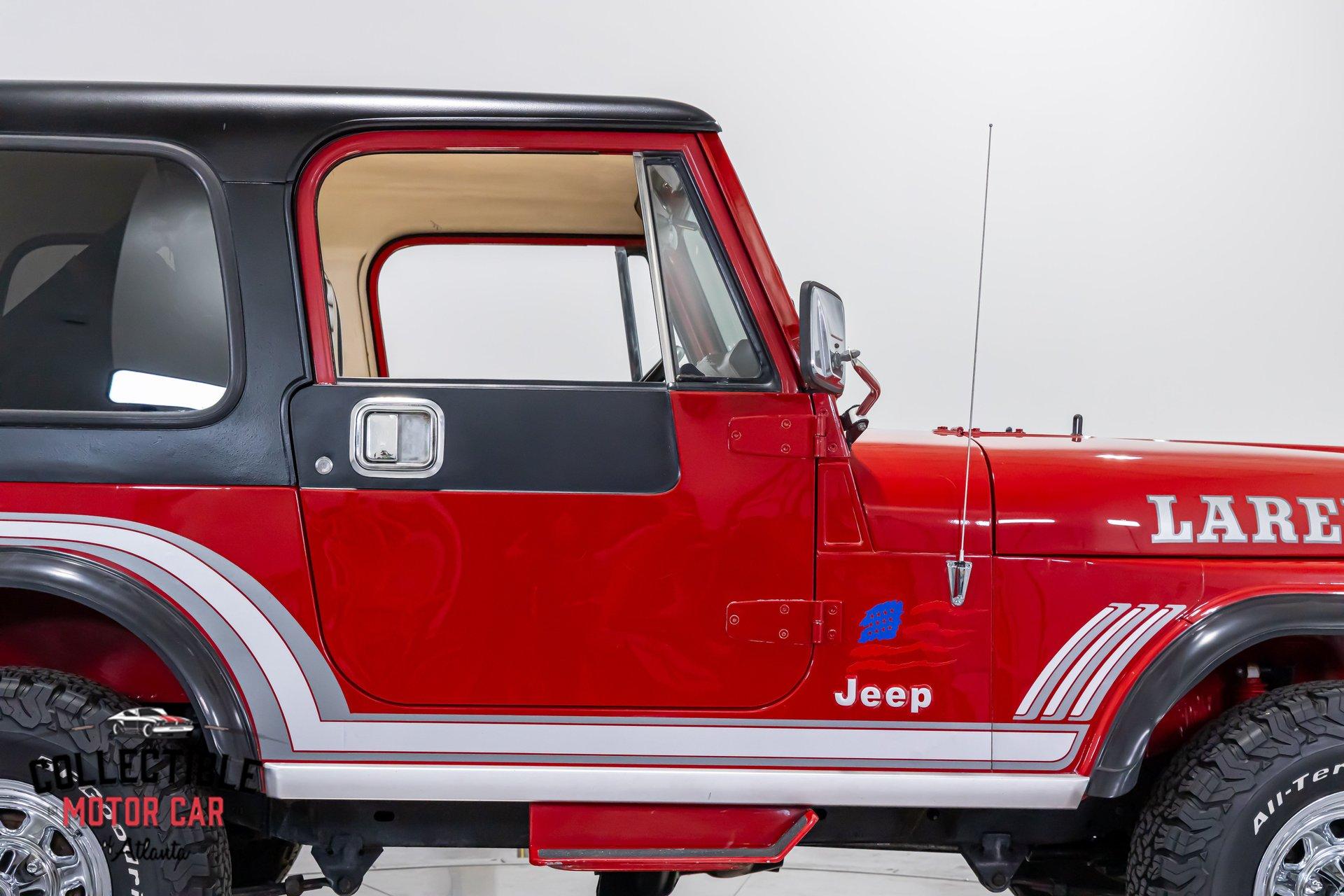 This 1986 Jeep CJ7 Laredo is exactly the kind of Jeep enthusiasts hope to find - honest, highly original in all the right ways, and loaded with the classic features that made the final-year CJ7 such an icon. Finished in Red with Laredo graphics over a Black interior, this Jeep retains its rugged factory charm while offering desirable upgrades and accessories that make it even more enjoyable to own and drive.