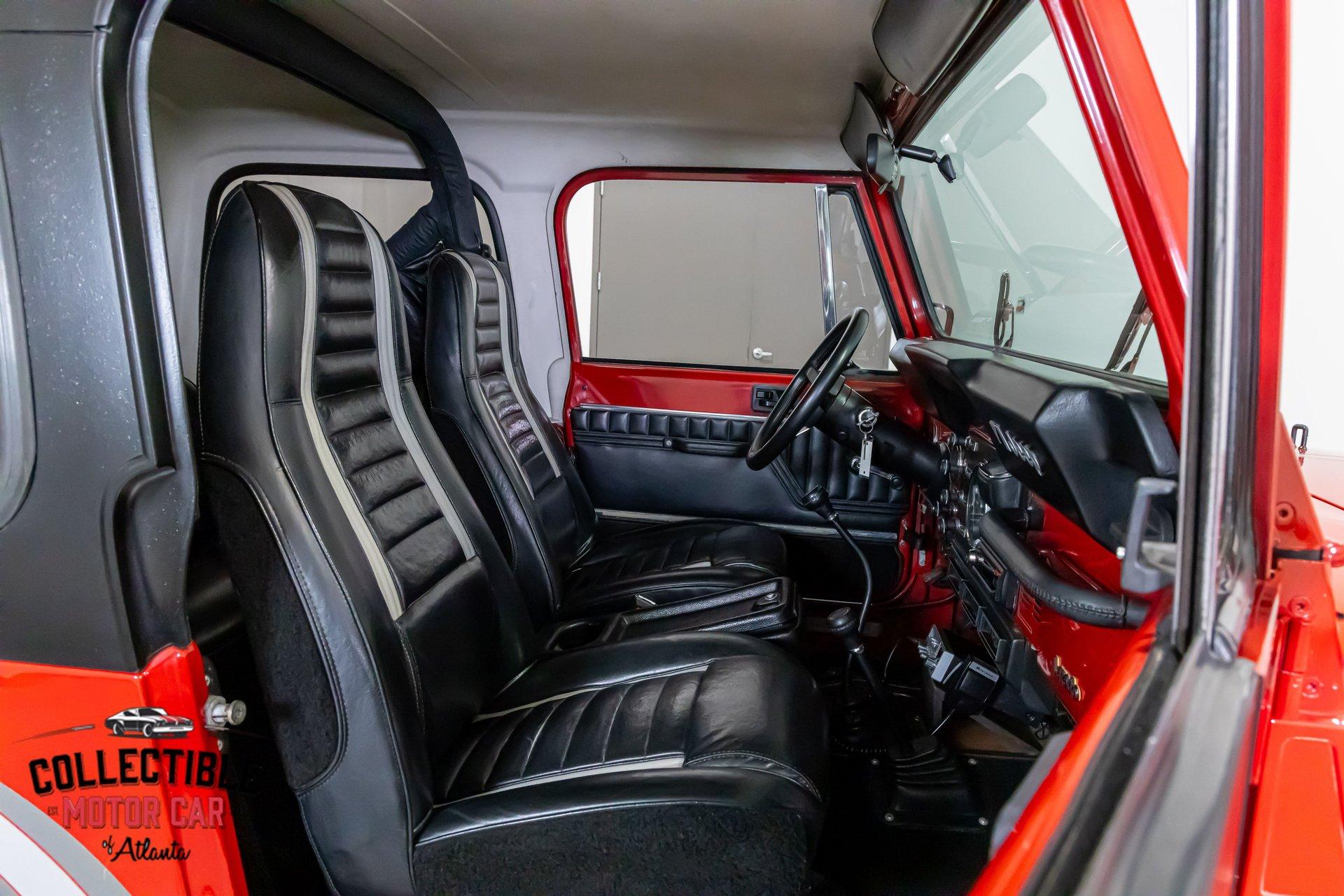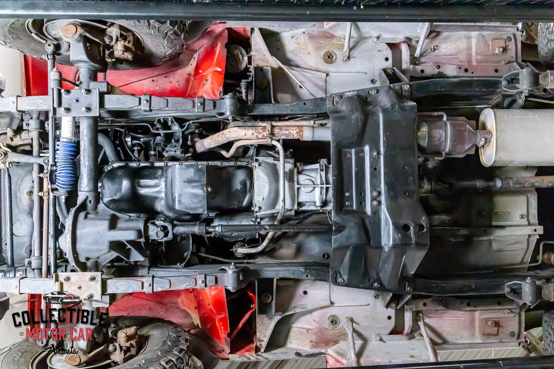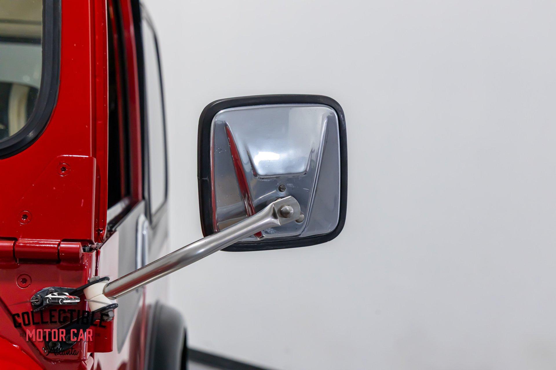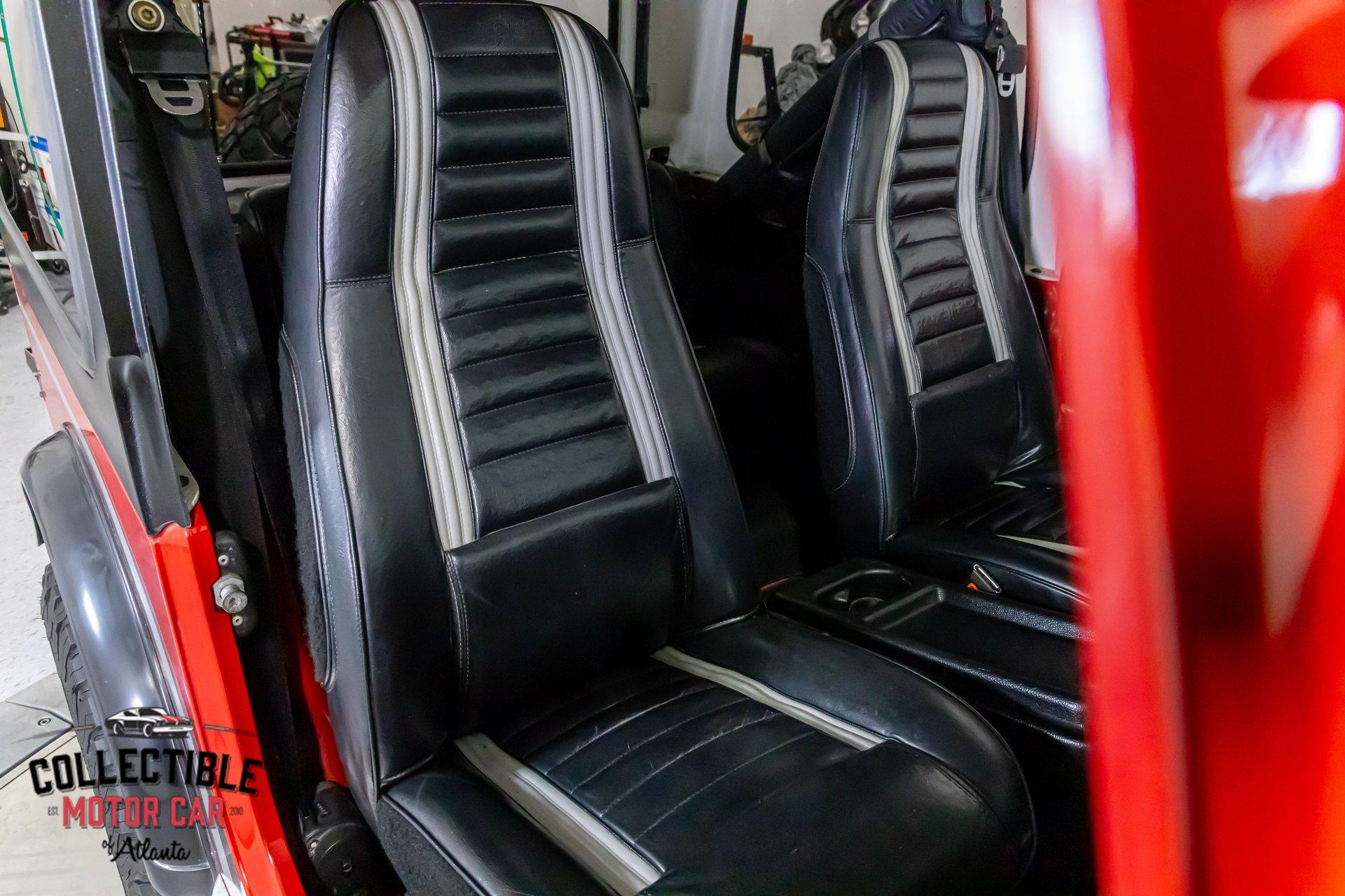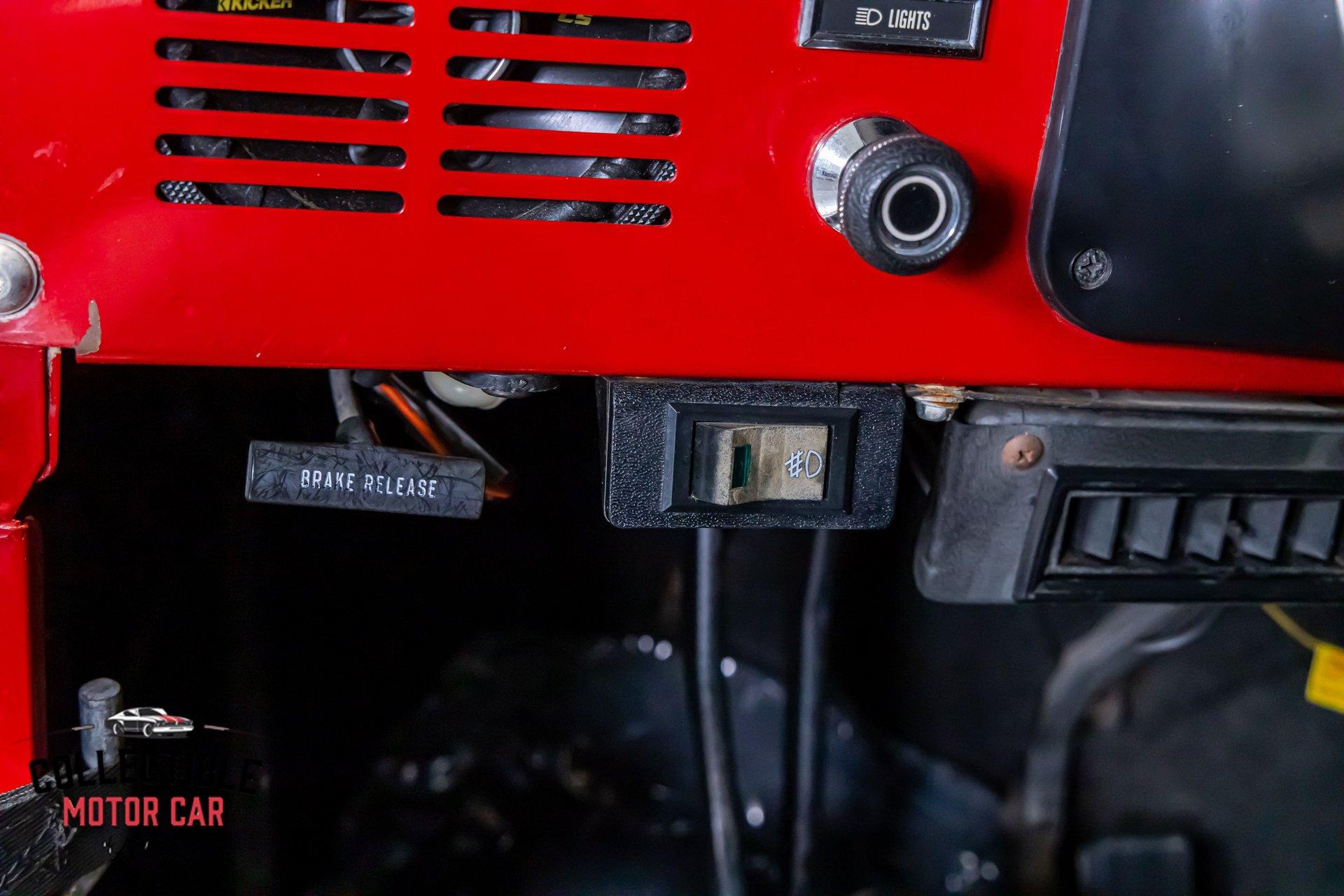 The photos show the Jeep fitted with a black hard top, which pairs perfectly with the red body and black trim. It gives the Jeep a sharp, finished look while also adding year-round usability. This one also includes the open-air accessories that CJ buyers love to see: a black bikini top, black rear tonneau cover, and black wind jammer, giving the next owner multiple ways to enjoy the vehicle depending on weather and preference.