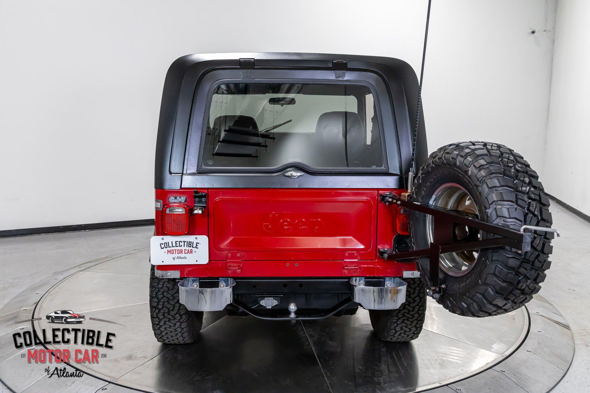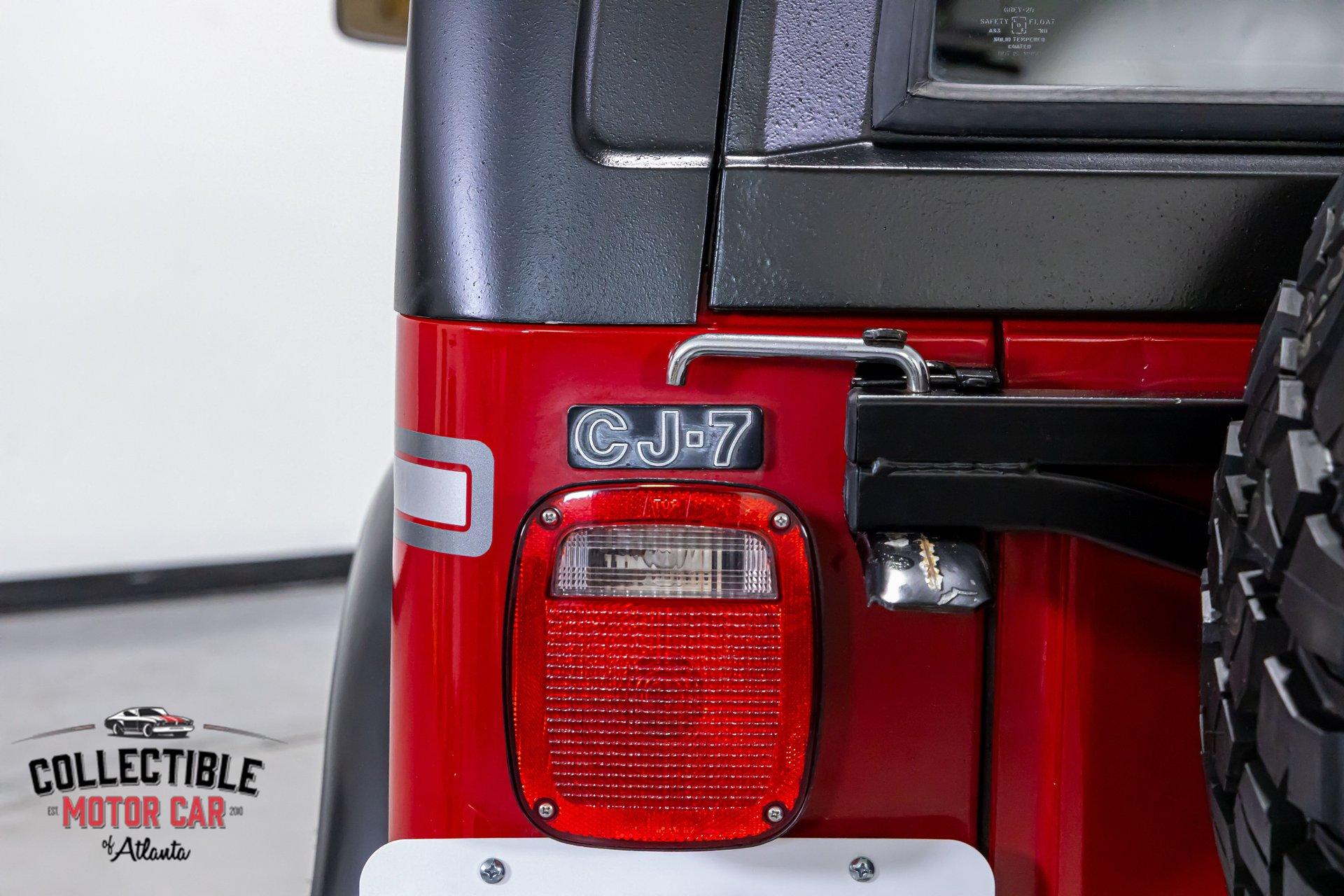 That tire and wheel combination gives it an ideal stance - aggressive enough to look the part, but still very usable and true to the CJ7's classic proportions. A full-size spare is mounted out back, matching the setup and completing the look.