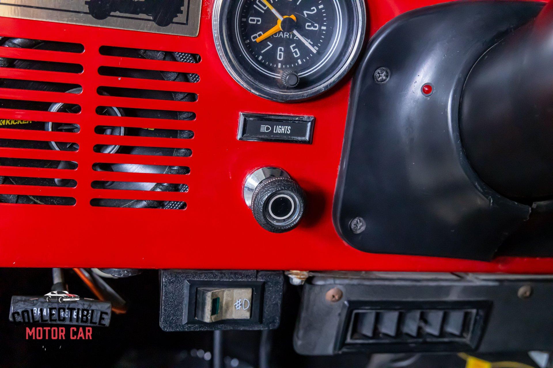 A very nice feature here is the Bluetooth radio box, which adds a welcome touch of modern usability without compromising the vintage look of the Jeep. It's a smart upgrade for someone who wants to enjoy music on the road or trail while keeping the cabin visually true to the era.