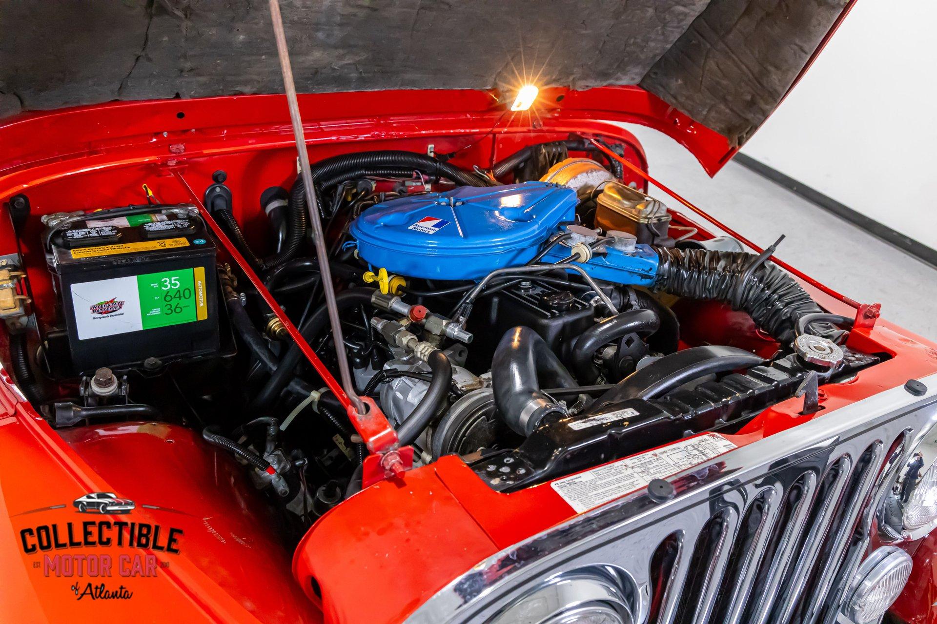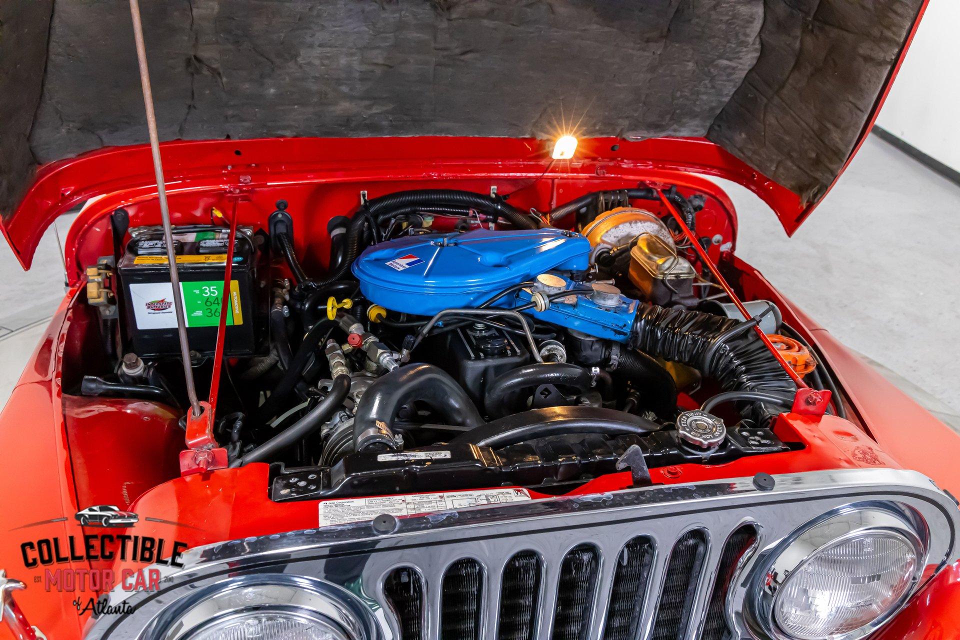 Under the hood is Jeep's proven 4.2-liter inline-6, one of the most well-known and respected engines ever fitted to a CJ. These engines are loved for their torque, reliability, and simple serviceability, making them a perfect match for a classic Jeep like this one.