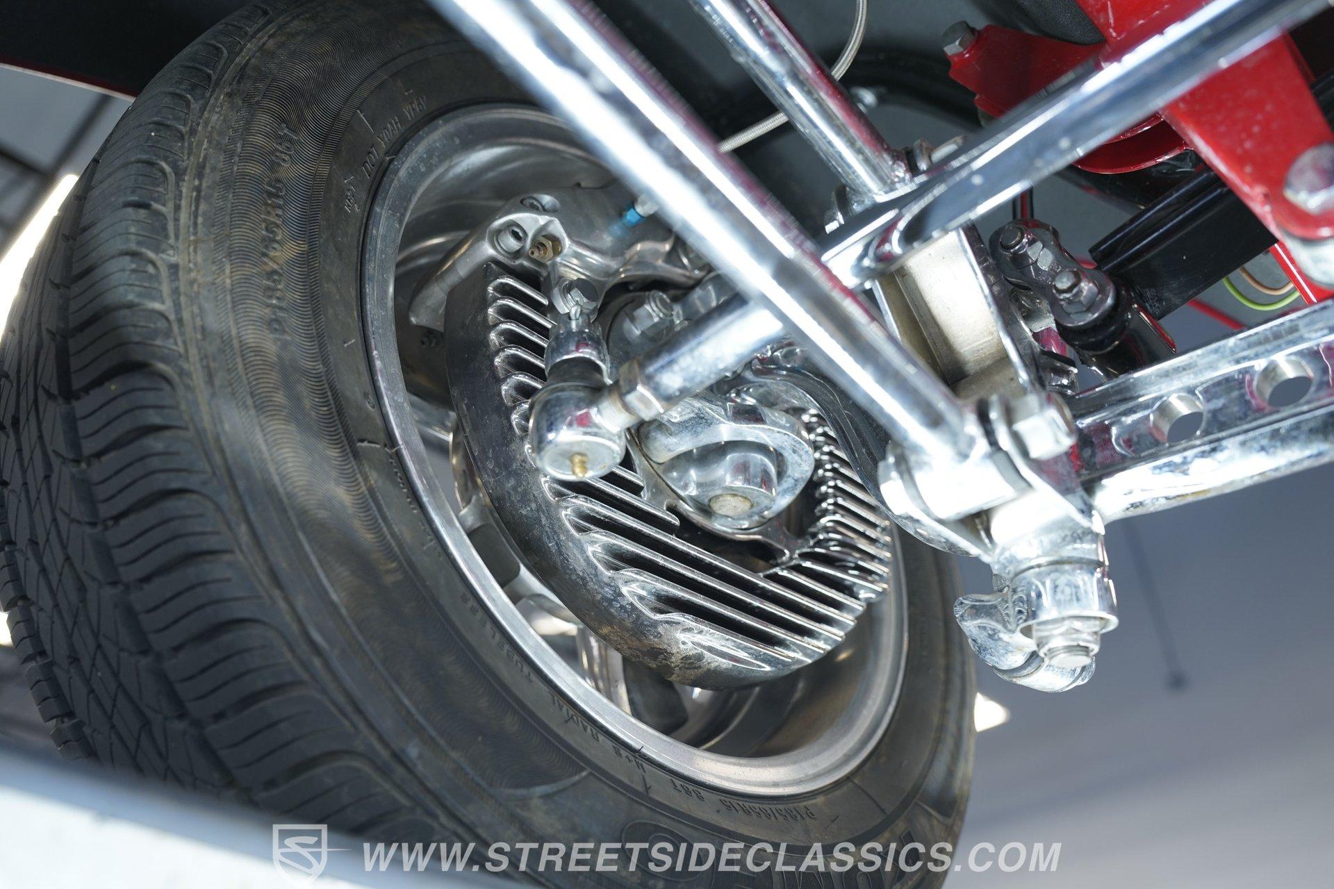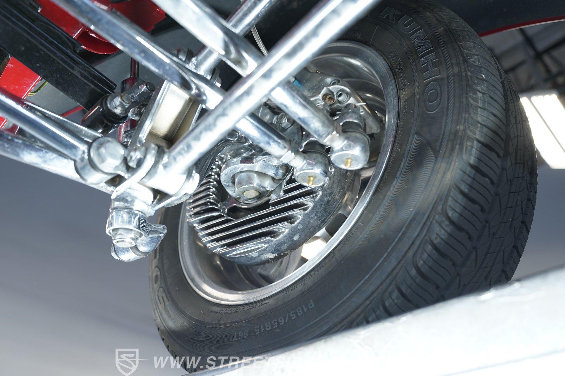 Under the hood, a robust 305 V8 engine roars to life, delivering a potent performance that matches the coupe's striking looks. This GM 5.0L engine features polished headers, chrome valve covers, and a high-ram tuned port injection intake that enhances breathing and power. The 700R4 four-speed automatic transmission ensures smooth shifts, while the dual exhaust with shorty manifolds adds a deep, commanding rumble. The custom suspension with coil overs, solid drop axle front, and 9-inch rear axle provide confident handling, making every drive an exhilarating journey.