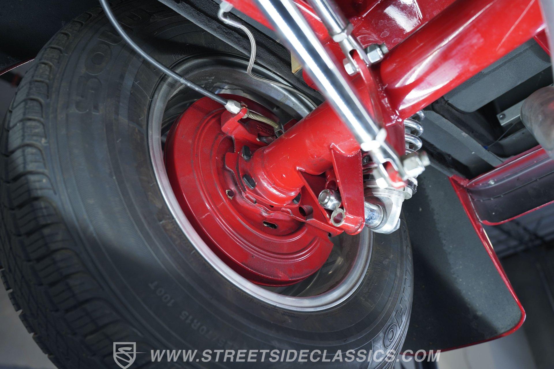 Step inside to a thoughtfully upgraded interior that balances classic charm with comfort. The brown vinyl bench seat, though showing character from use, invites you to sink in and enjoy the drive. Polished controls, an aftermarket Race Tech Performance dash panel, and chrome accents blend tactile appeal with refined style. The chrome tilt steering column and polished rearview mirror add a touch of sophistication, while the aftermarket AC vents promise comfort on warmer days.